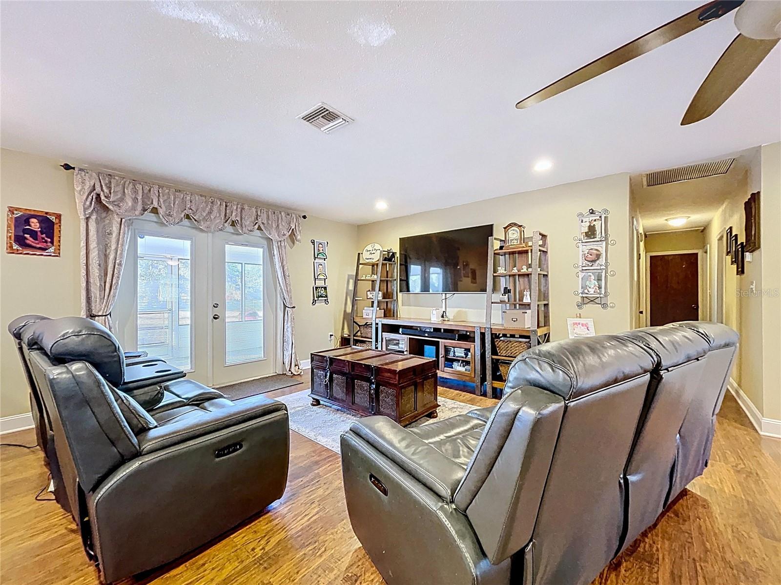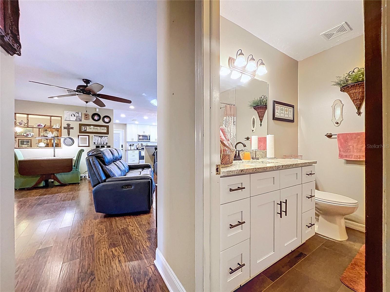 Perfectly updated 3/2/2 on almost an acre. No HOA or CDD! Park your boat or RV. Location is eligible for zero down USDA Loan. In the country but close to shopping. Beautifully renovated kitchen with white shaker cabinets, black stone countertops, luxury vinyl plank flooring, and spacious kitchen island bar. Plenty of storage with several pantry options including floor to ceiling cabinet pantry. Look out the kitchen sink window to the huge back yard with screened back porch, BBQ deck, and storage shed. Country covered front porch. Open large living room area for entertaining. Master suite with 2 closets, one being a walk-in. No carpet anywhere in this home. Garage has both a storage space area and laundry room area. Metal roof and newer A/C, electrical panel, and water heater. Better hurry before this one's gone.