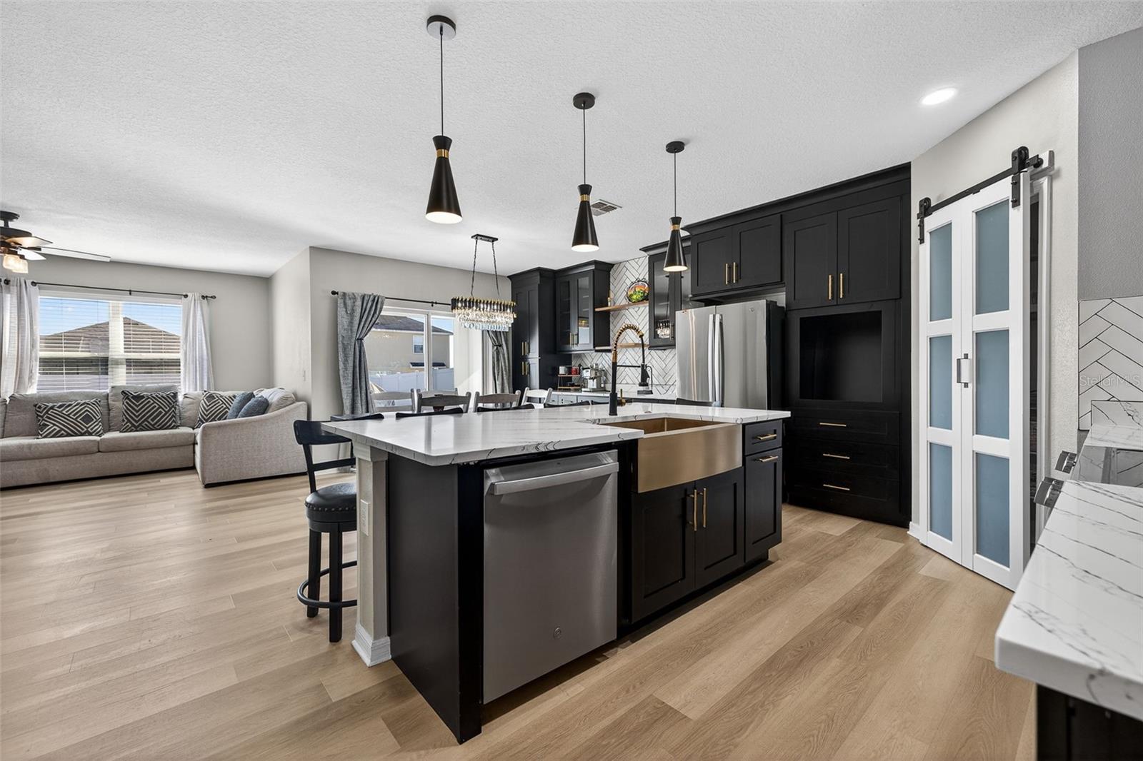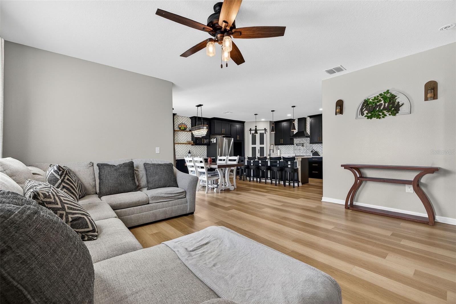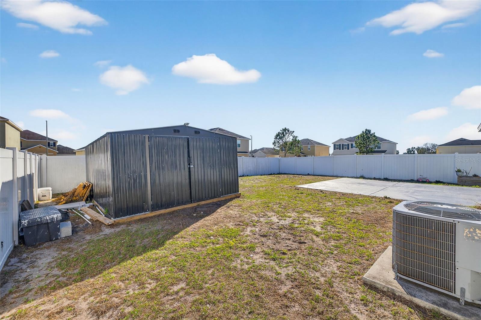 Meticulously maintained, like-new home built in 2017, nestled in the charming Alterra community in Plant City! This upgraded 4-bedroom, 3-bathroom, 2-car garage residence is a true gem. The attention to detail is evident from the moment you set eyes on the professionally landscaped yard, complete with an irrigation system and white vinyl privacy fenced backyard. The spacious entryway boasts not one, but two closets, offering ample storage space for your convenience. The thoughtfully designed split bedroom floorplan situates all secondary bedrooms towards the front of the home, each boasting generously sized closets. The secondary bathroom features a single sink vanity and a tub/shower combination. Towards the back of the home the open great room awaits. The kitchen is a chef's dream, equipped with solid surface countertops, a decorative glass back splash, a convenient island with a breakfast bar, walk-in pantry, and top-of-the-line appliances. Adjacent to the kitchen, the dining room offers slider access to the covered lanai and extended patio, perfect for outdoor entertaining. Tucked in the back of the home, just off the Living room is the primary bedroom, providing a serene retreat. The primary bedroom is complemented by an en-suite bathroom, featuring a dual-sink vanity, a shower stall, a water closet, and a spacious walk-in closet. Oversized storage shed perfect for all your toys and hobbies! Alterra community is perfectly located in Plant City, a town known for its quaint charm and its convenient proximity to lively metropolitan hubs like Tampa, Lakeland and Orlando. Its strategic positioning provides effortless access to major routes including I-75 and I-4, ensuring convenient commuting for residents.