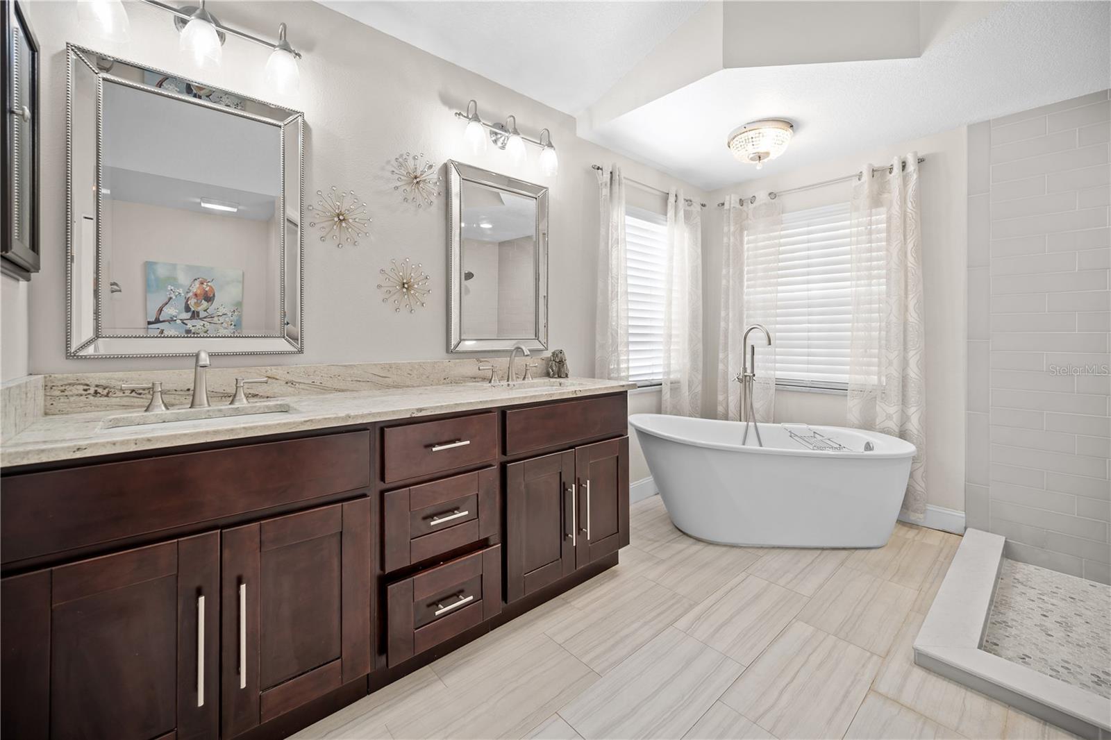 Welcome to your new sanctuary in the heart of Walden Lake! From the moment you step inside, you’re greeted by a stunning, sun-drenched open floor plan that feels both expansive and intimate. The entire home has been thoughtfully remodeled, featuring gorgeous new LVP flooring that flows seamlessly from room to room. The heart of the home is undoubtedly the custom-built kitchen—a chef’s dream come true. Imagine prepping Sunday brunch on sleek quartz countertops, framed by a matching quartz backsplash and crisp white shaker cabinets. With brand-new stainless steel appliances, it’s as functional as it is beautiful. When it’s time to unwind, the primary suite offers a true retreat. It’s spacious enough to be your private haven, complete with a spa-like bathroom featuring dual vanities, a walk-in open shower, and a deep garden tub made for long, relaxing soaks. Love to entertain? Step out onto your screened-in lanai, the perfect spot for your morning coffee or an evening glass of wine. Beyond the screen lies a massive, fully fenced-in backyard on a generous corner lot. Whether you’re hosting a summer BBQ on the dedicated concrete grilling pad or letting the pups run wild, this outdoor space is a rare find. One of the best parts? You get all of this with NO CDD fees and a very low HOA, giving you more freedom to enjoy the life you’re building. Location-wise, you’re right in the center of it all. Whether you’re commuting via I-4 or I-75, heading to Tampa International Airport, or visiting the world-class Moffitt Cancer Center, your drive is a breeze. You’re surrounded by the area’s best shopping and dining, and when you’re craving a little magic, Disney World is just a short 45-minute hop away. This isn’t just a house; it’s the backdrop for your next chapter. Come see why life is better in Walden Lake!