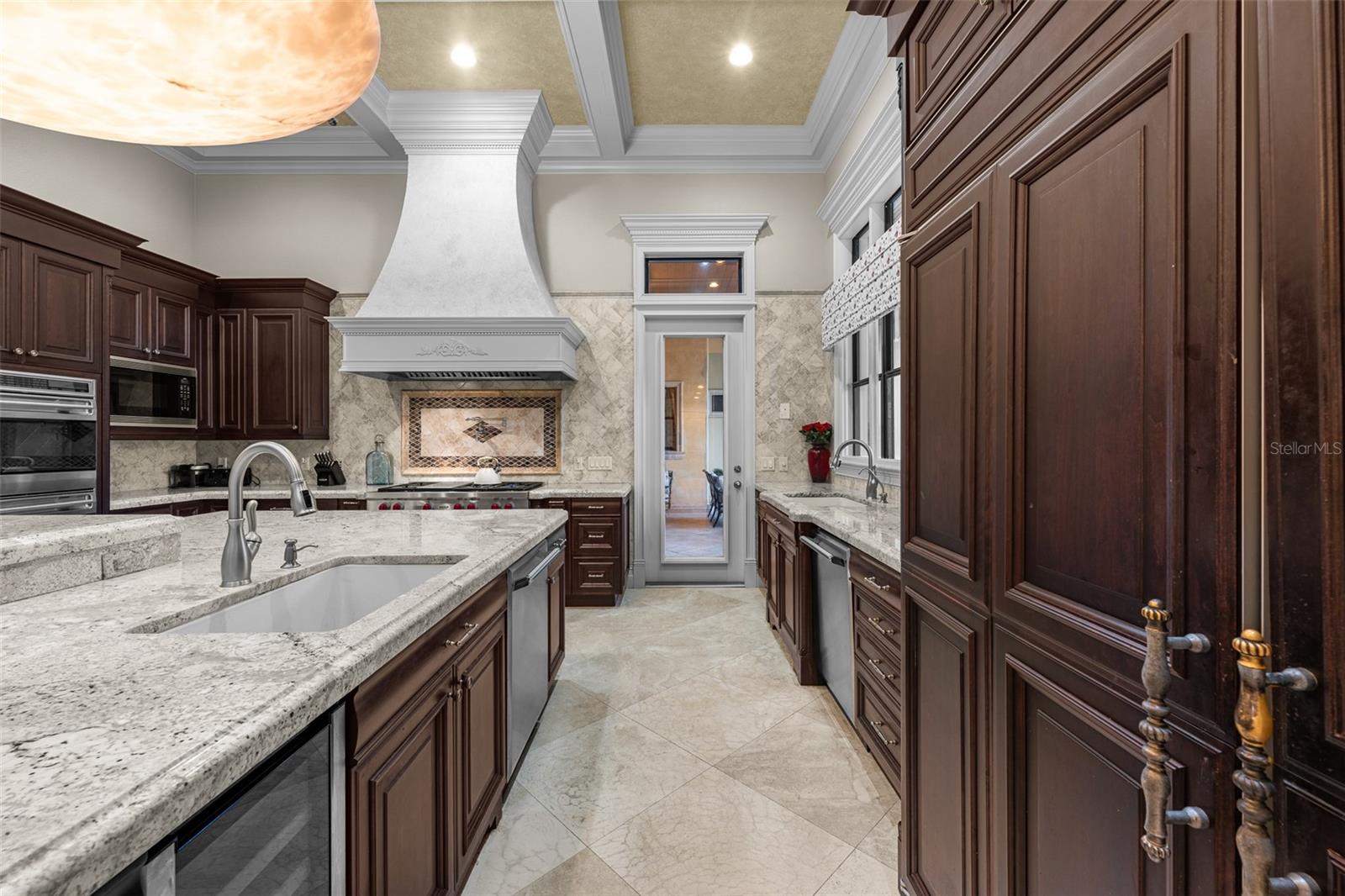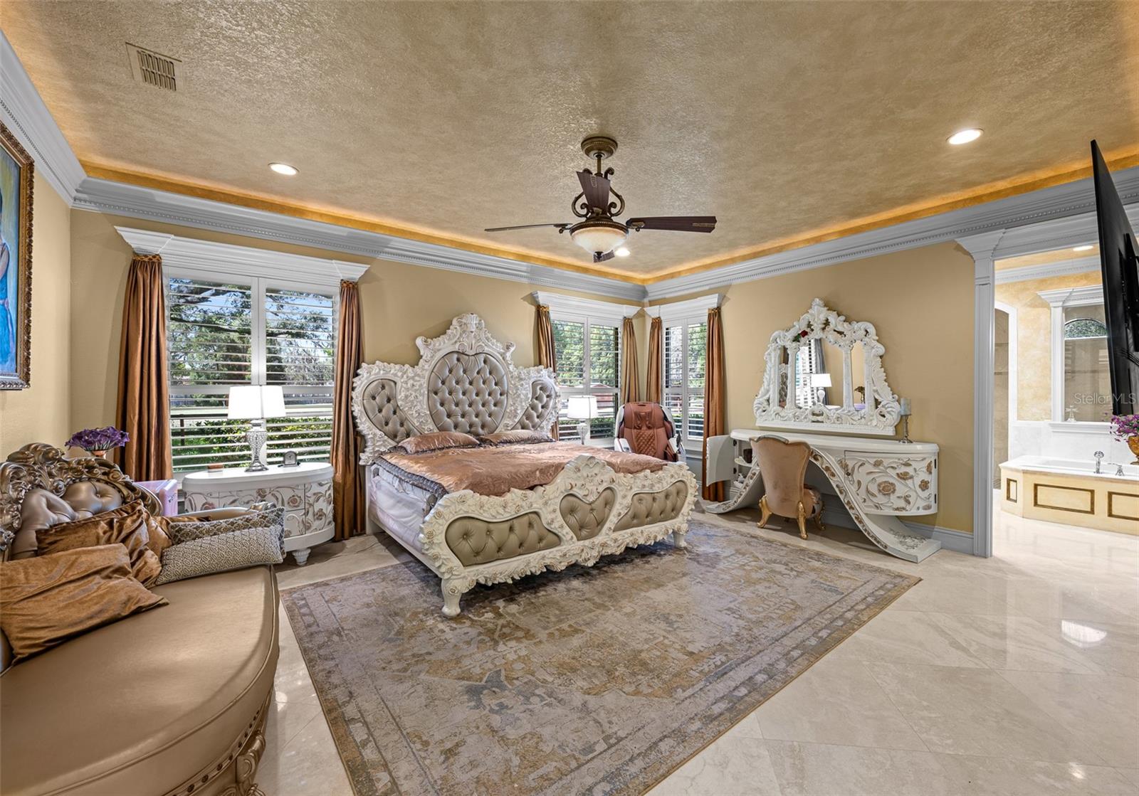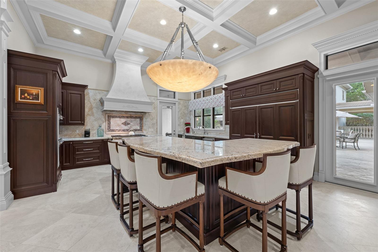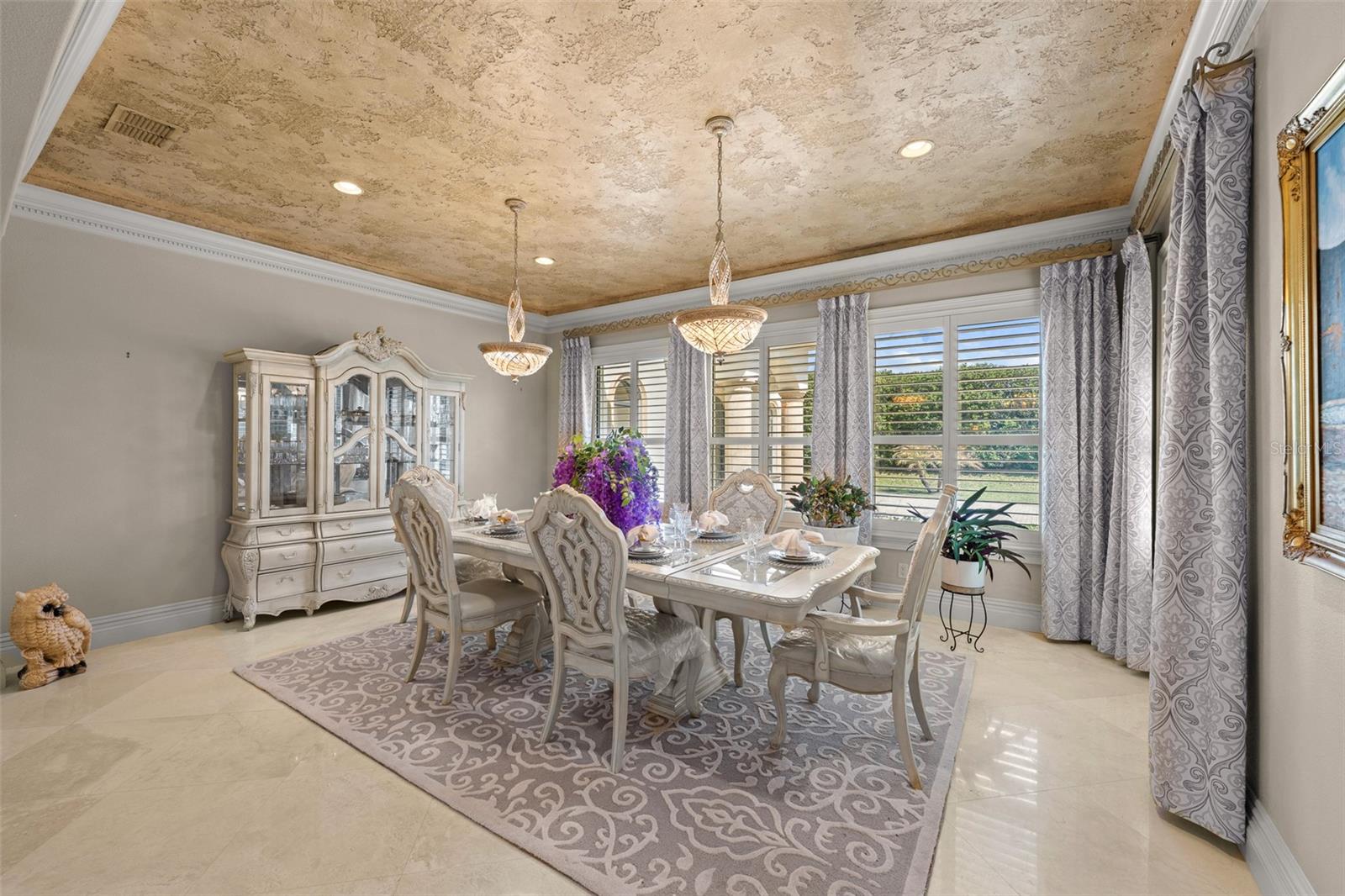 Extraordinary luxury residence situated over 1.4 beautiful acres, offering privacy and discretion, and positioned on a scenic pond. This one-of-one, Mediterranean masterpiece, greets you with a gated, circular driveway centered around a magnificent fountain while offering an astounding floor plan that features a detached guest house, and can be available fully furnished. The interior radiates sophistication, beginning in the grand double door entrance, soaring coffered ceilings throughout the living area, complemented by architectural excellence around every corner, a stunning cast stone double-sided fireplace and endless detailed millwork throughout. A key focal point of this estate is a chef’s culinary dream, featuring a considerable center island anchored by a striking light fixture. This high-end kitchen is equipped for grand-scale entertaining with a 48” Wolf cooktop, a 6-foot GE Monogram hidden panel refrigerator, dual built-in ovens, two dishwashers and a separate pantry room, with glass cabinets and a huge island. The living spaces flow seamlessly, offering multiple gathering and conversation areas, accented by a chic grand piano, formal dining room and a hidden powder bath. Retreat to ultimate privacy with five spacious bedrooms, including two first-level, primary suites both with oversized walk-in showers, deep soaking tubs and multiple built out closets. A grand staircase or elevator will guide the path to the upstairs entertainment area featuring the media room, fitness area/game room flex space, and two additional bedrooms. A separate guest house apartment with private access offers a full kitchen, living room, bedroom, bath and balcony over the courtyard as a secluded haven for visitors. For the automotive enthusiast, an oversized four-car garage gives ample space along with a dedicated storage room within the garage. The estate transforms into a personal resort within the travertine courtyard, featuring a heated pool, spillover spa, and multiple areas for gathering and entertaining. This outdoor space is unmatched, boasting a covered summer kitchen with bistro seating, alongside a separate bar countertop, and two covered areas offering an outdoor fireplace or tv viewing and lots of storage. This scenic space is adjacent to the spacious grass backyard, all of which is fenced and ideal for yard games or pets to play freely. Between Tampa and Lakeland, this residence combines the charm of historic Plant City with the privacy and luxury details of an outstanding estate.