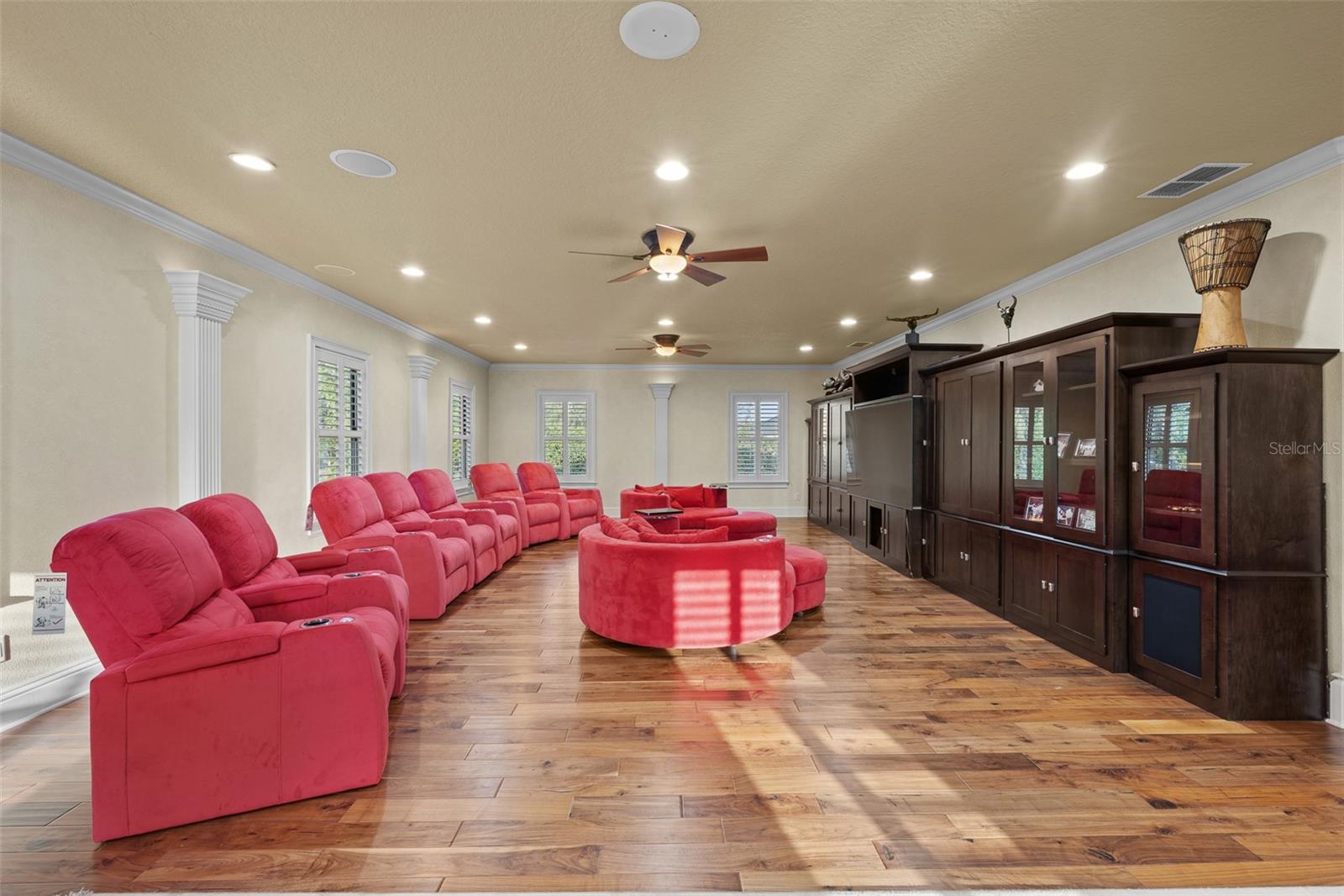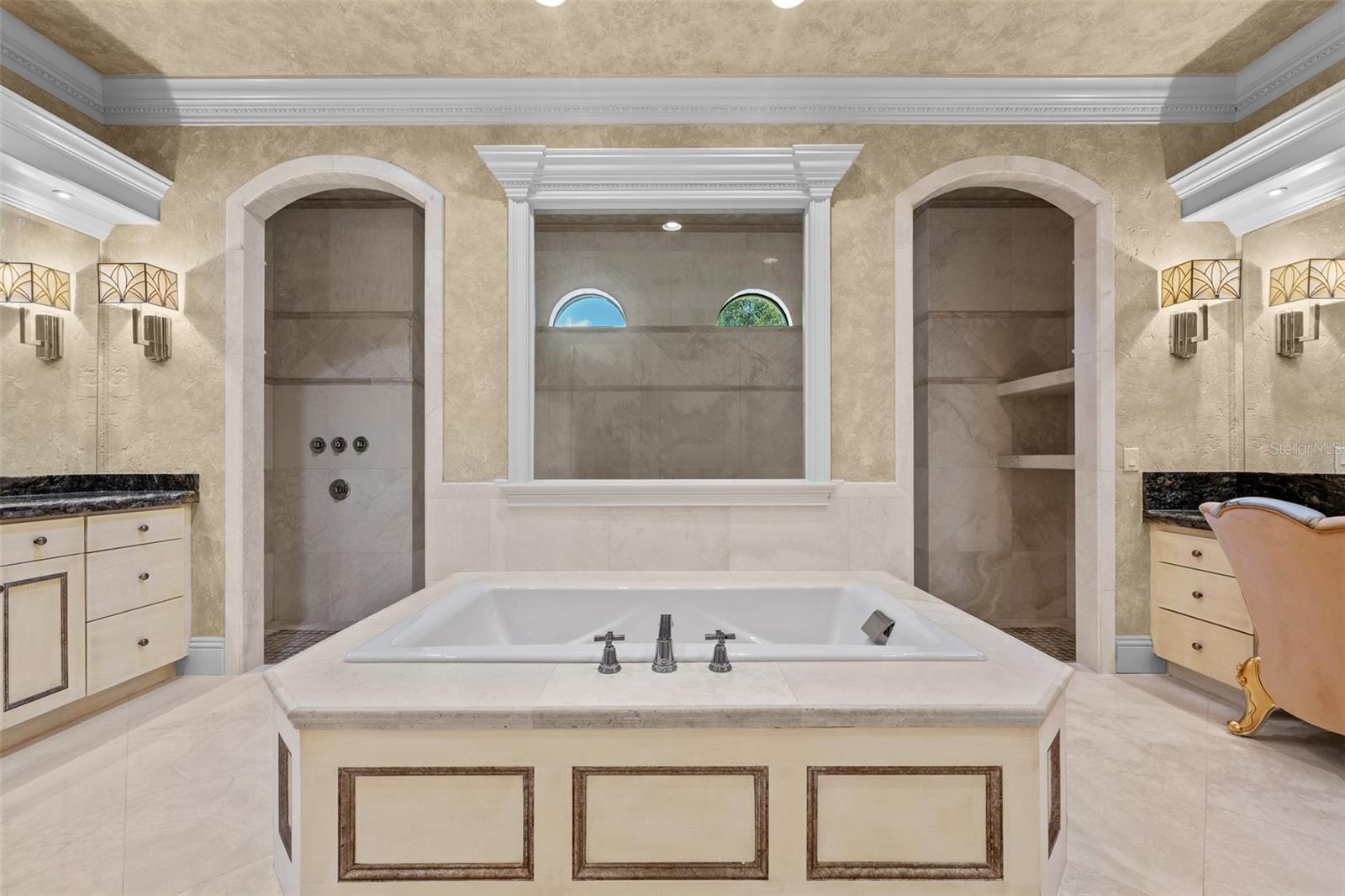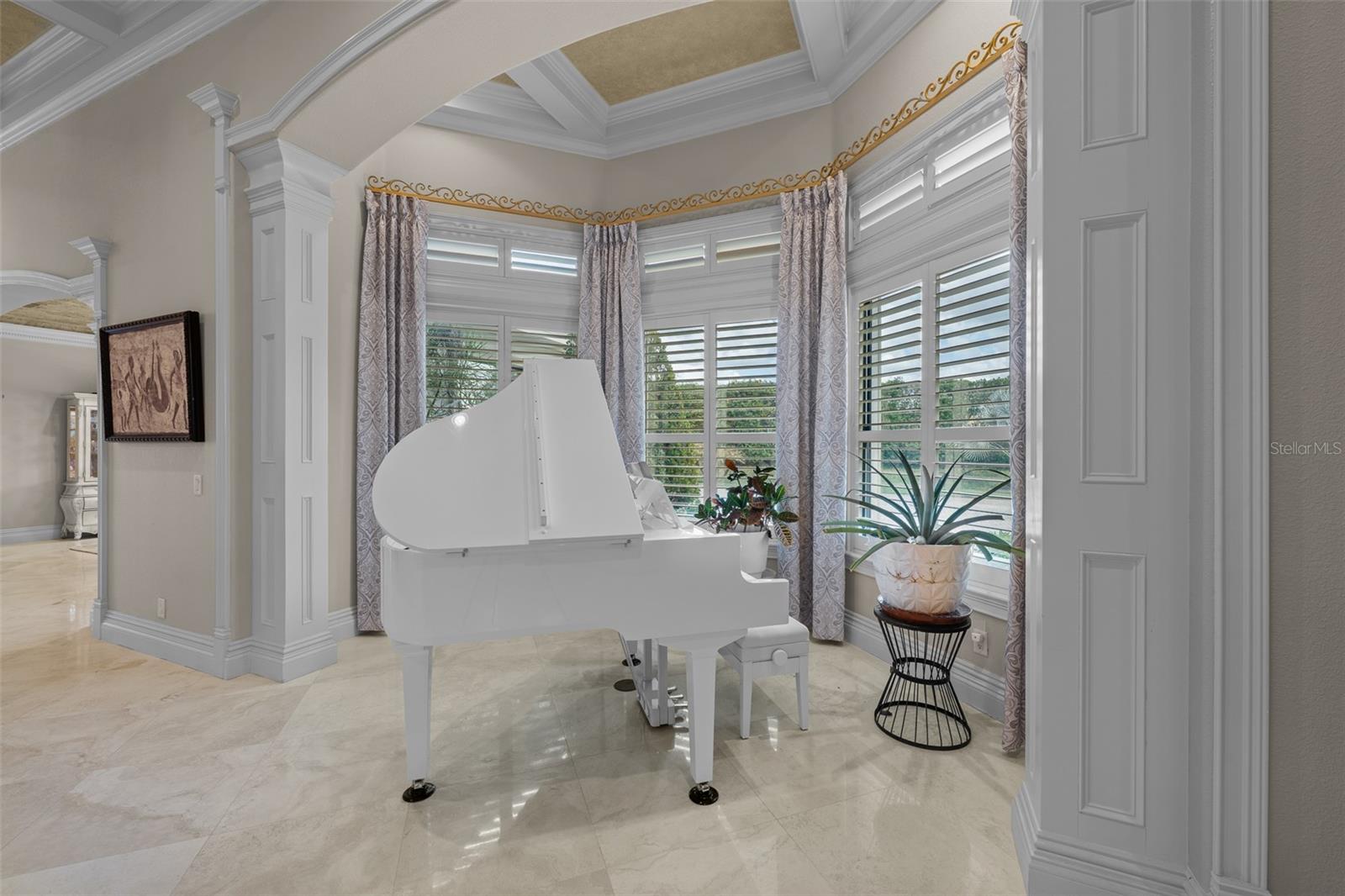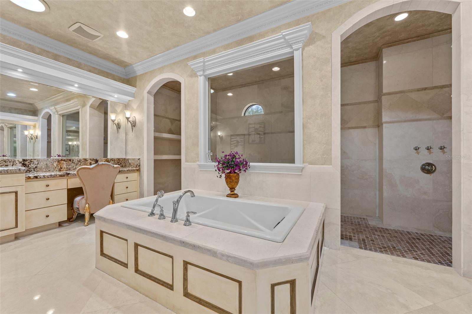 Extraordinary luxury residence situated over 1.4 beautiful acres, offering privacy and discretion, and positioned on a scenic pond. This one-of-one, Mediterranean masterpiece, greets you with a gated, circular driveway centered around a magnificent fountain while offering an astounding floor plan that features a detached guest house, and can be available fully furnished. The interior radiates sophistication, beginning in the grand double door entrance, soaring coffered ceilings throughout the living area, complemented by architectural excellence around every corner, a stunning cast stone double-sided fireplace and endless detailed millwork throughout. A key focal point of this estate is a chef’s culinary dream, featuring a considerable center island anchored by a striking light fixture. This high-end kitchen is equipped for grand-scale entertaining with a 48” Wolf cooktop, a 6-foot GE Monogram hidden panel refrigerator, dual built-in ovens, two dishwashers and a separate pantry room, with glass cabinets and a huge island. The living spaces flow seamlessly, offering multiple gathering and conversation areas, accented by a chic grand piano, formal dining room and a hidden powder bath. Retreat to ultimate privacy with five spacious bedrooms, including two first-level, primary suites both with oversized walk-in showers, deep soaking tubs and multiple built out closets. A grand staircase or elevator will guide the path to the upstairs entertainment area featuring the media room, fitness area/game room flex space, and two additional bedrooms. A separate guest house apartment with private access offers a full kitchen, living room, bedroom, bath and balcony over the courtyard as a secluded haven for visitors. For the automotive enthusiast, an oversized four-car garage gives ample space along with a dedicated storage room within the garage. The estate transforms into a personal resort within the travertine courtyard, featuring a heated pool, spillover spa, and multiple areas for gathering and entertaining. This outdoor space is unmatched, boasting a covered summer kitchen with bistro seating, alongside a separate bar countertop, and two covered areas offering an outdoor fireplace or tv viewing and lots of storage. This scenic space is adjacent to the spacious grass backyard, all of which is fenced and ideal for yard games or pets to play freely. Between Tampa and Lakeland, this residence combines the charm of historic Plant City with the privacy and luxury details of an outstanding estate.