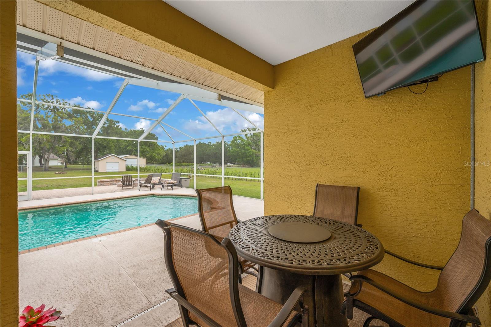 Welcome to your own slice of country paradise—where wide-open space, peaceful surroundings, and modern comfort come together on just over an acre with no HOA or CDD. Tucked beneath open skies and surrounded by room to roam, this one-of-a-kind custom-built home invites you to slow down and enjoy the lifestyle you’ve been dreaming of. A welcoming front porch sets the tone, perfect for morning coffee while taking in the quiet countryside. Inside, the home opens to a spacious great room filled with natural light, soaring 10–12 ft ceilings, and a cozy wood-burning fireplace—ideal for gathering with family or unwinding after a long day. The layout offers both comfort and flexibility, with three bedrooms and two bathrooms on the main floor, plus a large upstairs bonus room or loft—perfect for a game room, home office, or guest retreat. The open-concept kitchen is designed for both comfort and connection, featuring a spacious breakfast bar, stainless steel appliances, and a seamless flow into the dining and living areas—perfect for everything from casual mornings to holiday gatherings. Highlights include tall cabinetry, a wine refrigerator, additional bar seating, a deep walk-in pantry and a double-basin sink. The generously sized primary suite serves as a private retreat, featuring a spa-like bathroom with a jetted garden tub, separate shower, and a spacious walk-in closet. The two secondary bedrooms are located in a separate wing of the home, offering privacy and comfort—one even includes a deep walk-in closet for extra storage. The backyard is designed for enjoying the Florida outdoors, featuring a screened pool with color-changing lighting, expansive decking, and a newly added paver patio with a firepit—perfect for evenings under the stars. The fully fenced yard is perfect for pets to roam and enjoy and a privacy hedge was just planted. Step outside and embrace true country living with plenty of room for all your toys, hobbies, and gatherings. In addition to the attached side-entry 2-car garage—spacious enough for a full-size truck—this property features an incredible 1,500 sq ft detached garage/workshop. Complete with two roll-up doors, a separate single-door entry, epoxy flooring, its own electrical panel, and a utility sink with running water, this space is built to impress. Two industrial fans, along with work tables and cabinets, convey to the buyer - making it ideal for car enthusiasts, hobbyists, or anyone needing a versatile workspace for a small business. A 12x16 detached shed with a roll-up door on a concrete slab provides additional storage for lawn equipment and tools. The extended driveway offers ample parking for multiple vehicles, guests, boats, or RVs. Recent updates include a new roof (2021), fresh exterior paint (2021), updated front porch tile (2021), A/C unit upstairs (2022) and a new well (2023) giving you peace of mind and added value. Plus, no flood insurance is required and septic and fireplace have been recently inspected. If you’ve been searching for space, privacy, and the freedom to live your way—this is the perfect place to call home. Schedule your private showing today and experience the charm of country living for yourself.