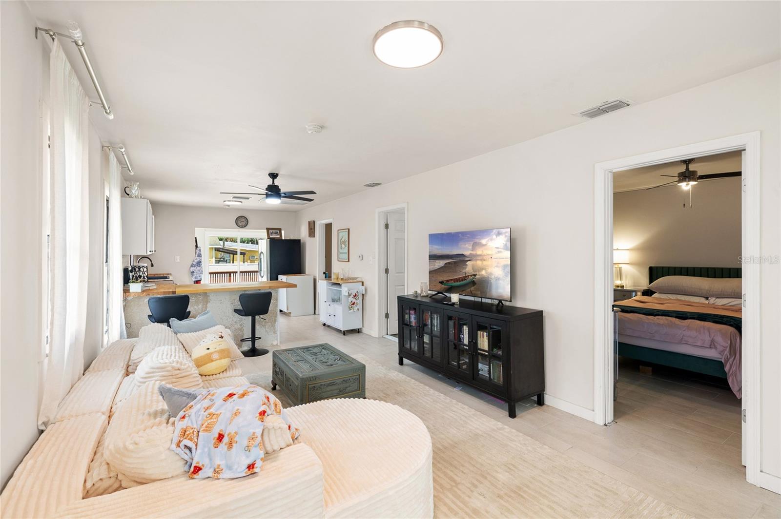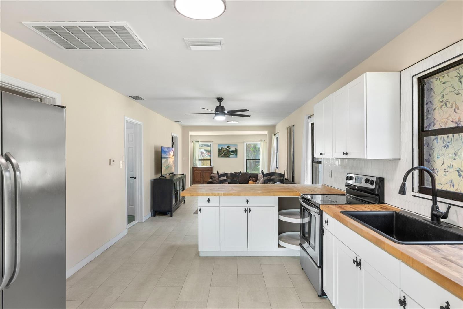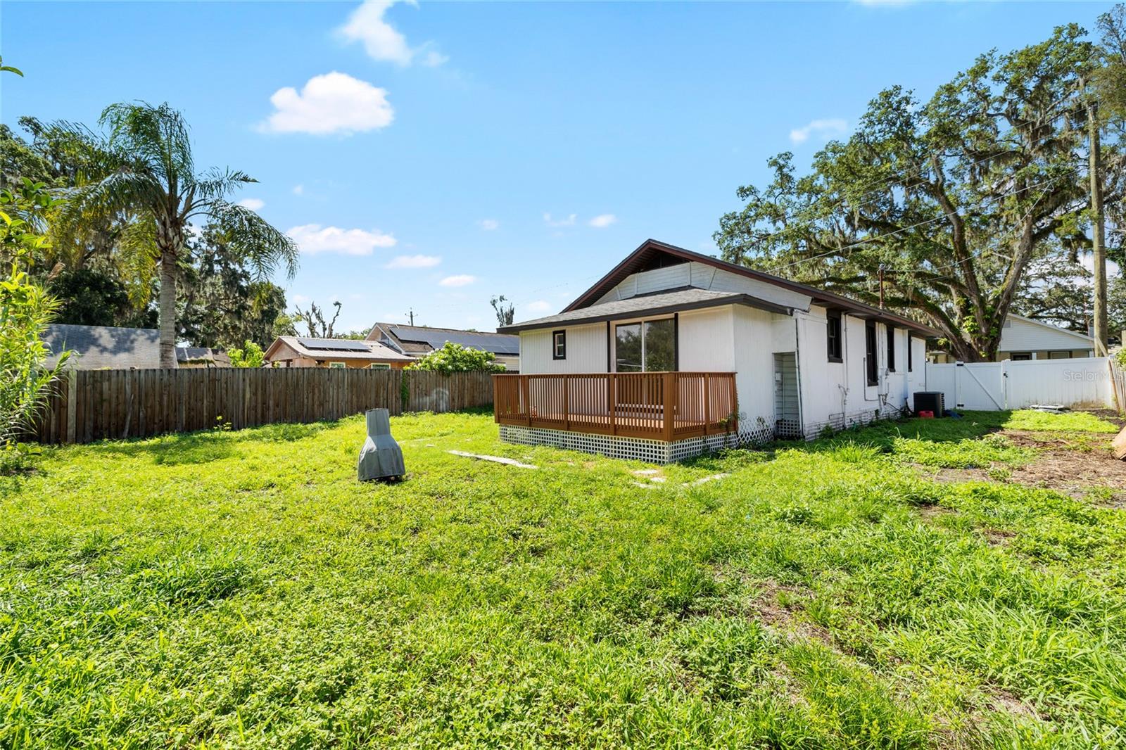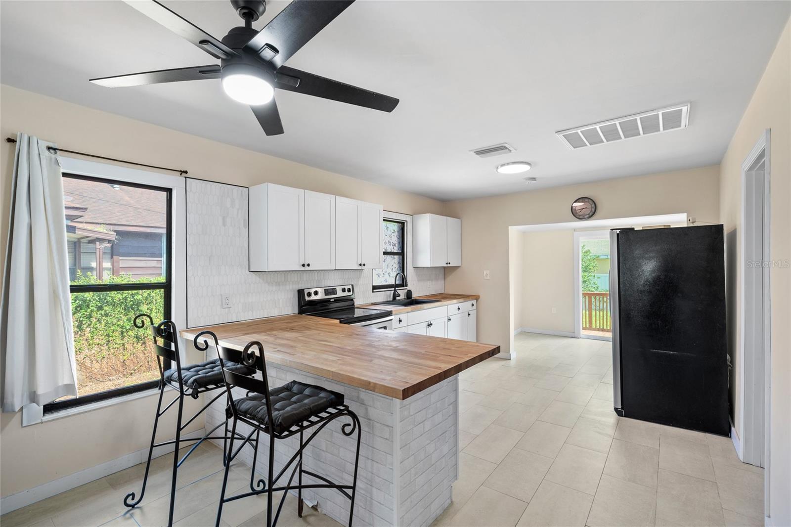 Charming and move-in ready, this beautifully updated home is ideally located in the heart of Plant City’s Historic District. Offering 2 bedrooms, 2 bathrooms, and a versatile 1-car garage/enclosed storage space, this home perfectly blends character with modern functionality. Inside, you’re welcomed by an open-concept living and kitchen area designed for both everyday living and entertaining. The space features ceramic tile flooring throughout, white shaker cabinetry, butcher block countertops, a sleek tile backsplash, stainless steel appliances, and bar seating for casual dining. Just off the kitchen, the dining area flows seamlessly through sliding glass doors to a spacious wooden deck—creating the perfect setup for indoor-outdoor living and entertaining. Both bathrooms have been tastefully renovated with modern finishes, while the fully fenced backyard offers a private outdoor retreat. The garage/storage space opens on both sides, providing flexible use as a workshop, home gym, or additional storage. Major updates include a new roof (2022) and HVAC system (2021), offering added peace of mind. Buyer bonus: Our preferred lender is offering a 1% credit of the loan amount (up to $5,000) toward the buyer’s prepaids and closing costs. Don’t miss your opportunity to own a piece of history with modern updates—schedule your private showing today!