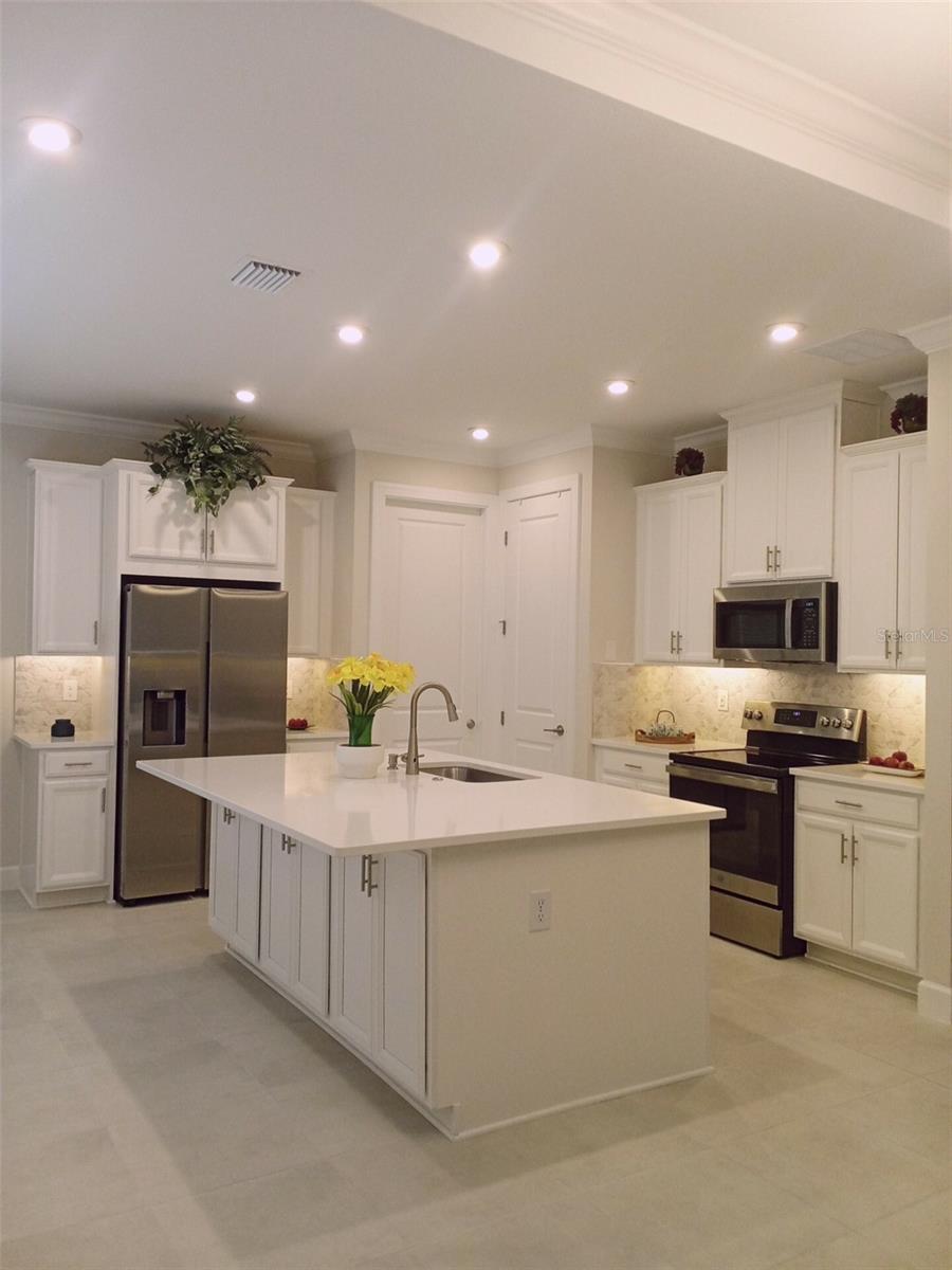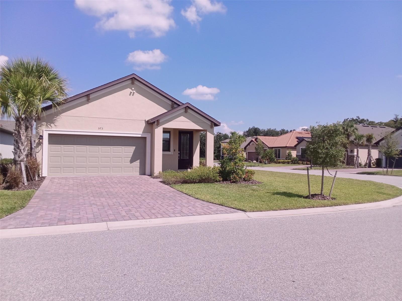 Nearly new home conveniently located in the wonderful SOLIVITA Guard Gated Community of Poinciana. Built in 2023, this home enjoys a Mediterranean modern design with lots of upgrades, including decorative front entry door, crown molding, tray ceilings, 8' doors, vented exhaust, under counter lighting, extra cabinets under kitchen island, core-fill insulation in block walls in living areas, pre-plumb for laundry sink, etc. Featuring 2 Bedrooms and 2 Bathrooms, the open floor plan creates a seamless flow between the living room, dining area, and kitchen. Decorative glass door insert and window brightens entryway. Tray ceilings in the living room and master bedroom. Crown molding in the whole house, except bathrooms. Porcelain tile floors throughout and carpet in bedrooms. Laundry room includes a washer and dryer, and pre-plumbing for laundry sink. All appliances and window treatments included.The kitchen has flush mount LED lights, a vented exhaust, electric range, rounded edge Quartz countertops, 42” cabinets, stainless steel appliances, roll out trash bin, under counter lighting and extra cabinets under the kitchen island.The master bedroom has lots of natural light. The master bath has a shower, dual sinks and plenty of storage. Guest bedroom and bath are in convenient proximity.Situated on a corner lot, there is sufficient outdoor space including a large side yard and a Fenced Backyard to enjoy the beautiful Florida weather with your active pups. There is Partial View of a Pond in the Backyard. Our SOLIVITA Community has plenty of activities and amenities: A 17K sf. Ballroom, 32K sf Riviera Spa & Fitness Center, 19K sf Palms Amenity Complex, 14 Swimming Pools, 11 Tennis Courts, 17 Pickleball Courts, Sport Field, Golf Courses, 3 Restaurants, Spa & Massage Center, Waterfront Art Galleries, Community Garden, etc.The monthly HOA fee includes Lawn Maintenance & Irrigation, TV Channels, Internet, 24/7 gated and guarded Entrances, security personnel , etc. The monthly Club fee includes use of swimming pools, fitness centers, indoor walking track, library, computer rooms, billiards room, pickleball & tennis courts, bocce courts, dog parks, shuffleboard courts, cornhole, horseshoe pits, free scheduled fitness activities, concierge, butterfly garden, walking trails, various planned activities throughout the year, etc.There is a new Shopping Mall less than 2 miles away from the property. It includes Petco, Sprouts Grocery, TJ Maxx, Rack Room Shoes, Ross, 5 Below, Bojangles and Outback Restaurants, Ulta Beauty, Burlington Coat Factory, First Watch, 5 Guys, Dentist, MD Urgent Care, TD Bank, and more. Walgreens, Wells Fargo, various restaurants and other businesses are also nearby.