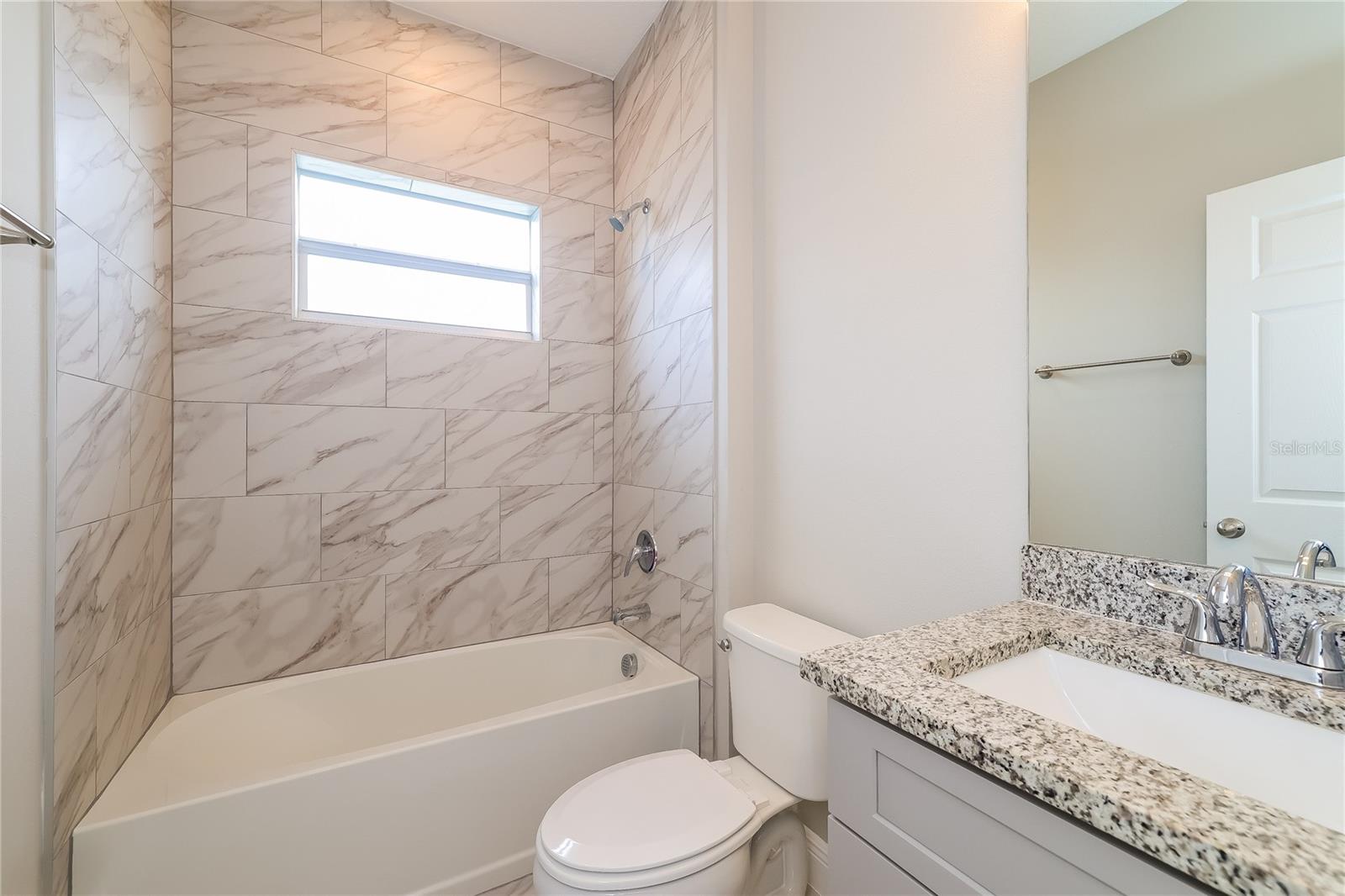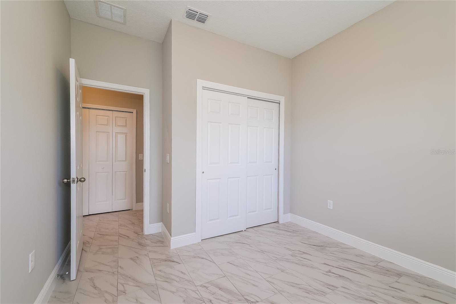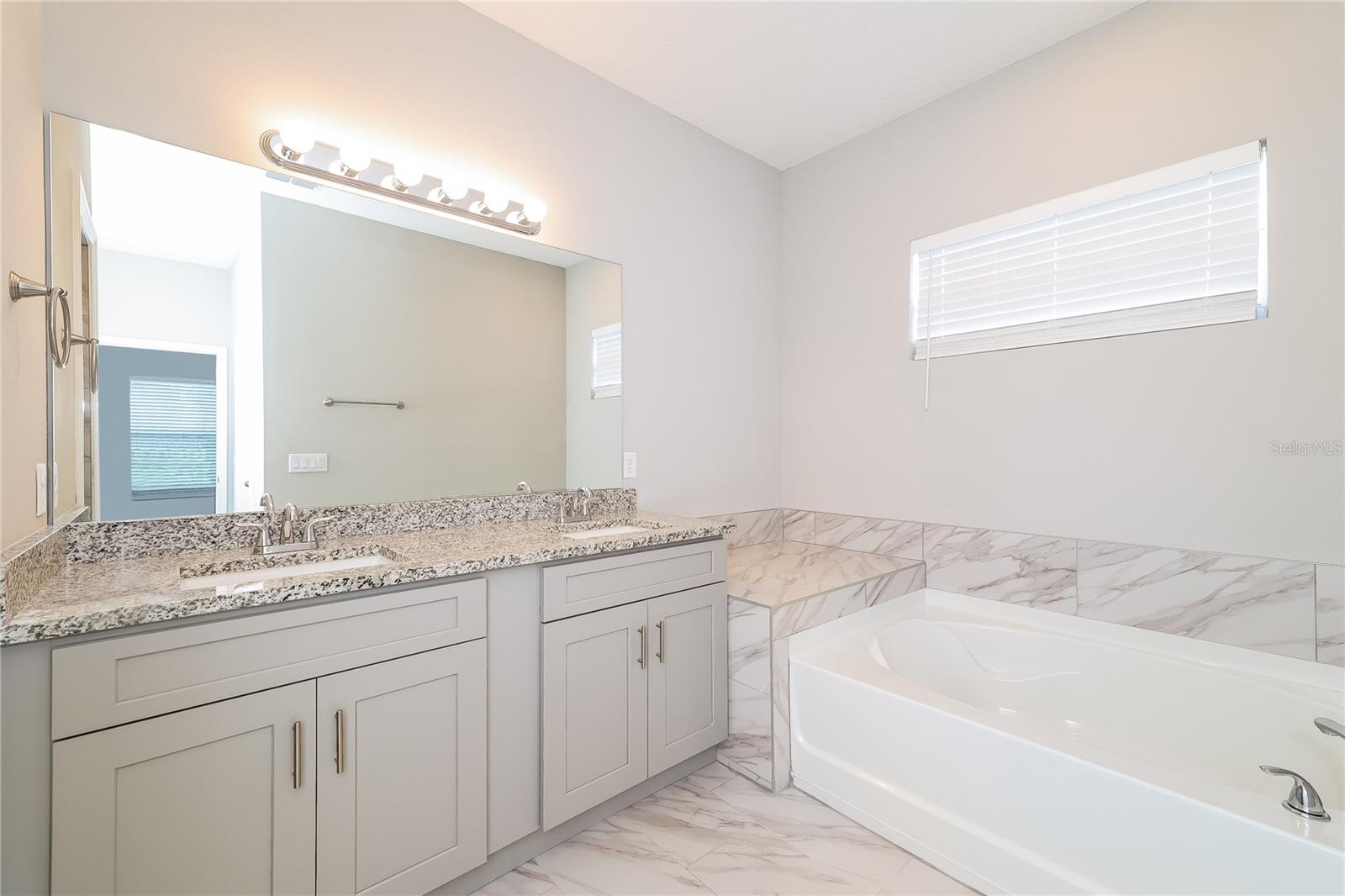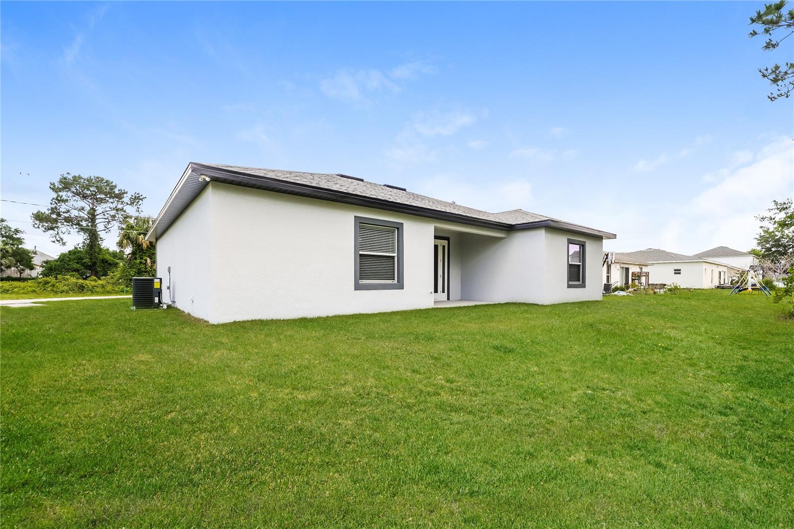 This spacious single-story 3-bedroom, 2-bathroom home with a 2-car garage and covered lanai is not to be missed. Featuring a seamless flow from the living room to the dining area and kitchen, which features ample counter space, a closet pantry, and natural light throughout sliding glass doors leading to a covered back patio. The master bedroom offers privacy with dual sinks, a large shower enclosure, a generous walk-in closet, and additional linen storage. Other features include granite countertops, stainless steel appliances, ceiling fans, and tile flooring throughout.