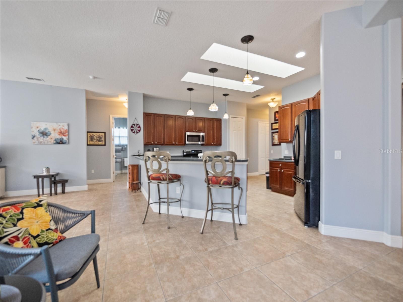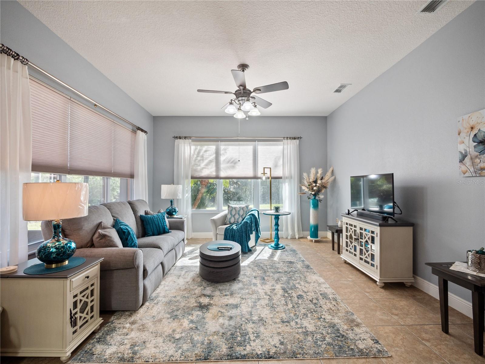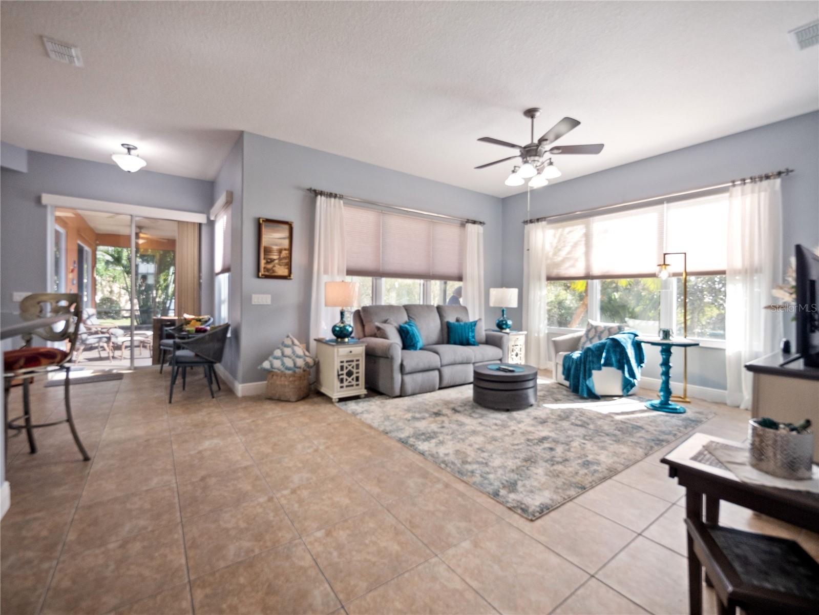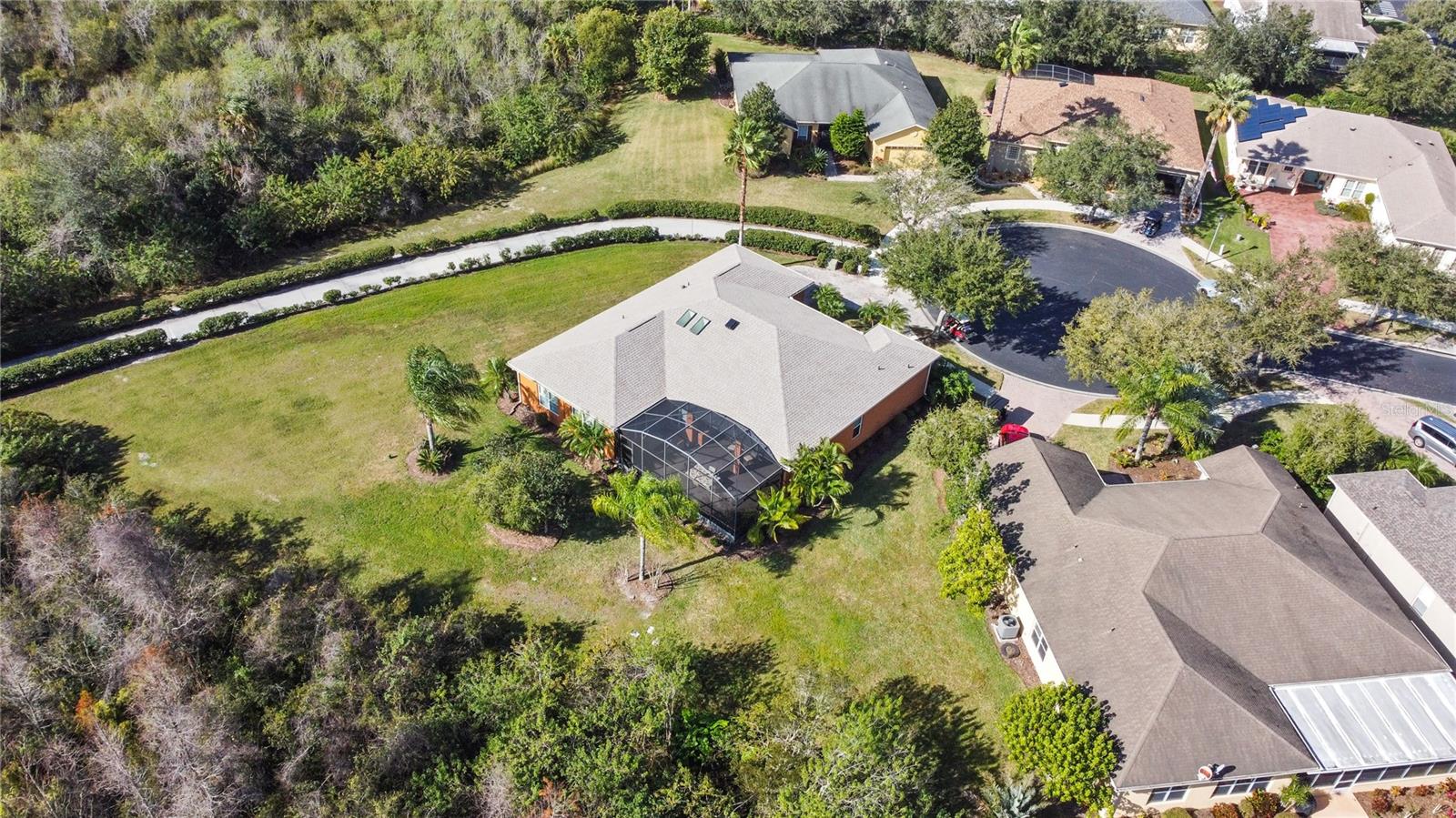 NEW PRICE $450,000. OFFERING: Transfer of Flood Insurance effective until February 8, 2026; MOVE-IN READY....This Operetta Model offers three bedrooms, two full bathrooms and one guest bathroom with a Bonus Room suitable as a Den or Home Office. THIS HOME HAS BEEN FRESHLY PAINTED. Nestled in a Cul-de-sac with views of the Nature Preserve, this property enjoys peace, tranquility and the activities of nature. The property has benefited from regular, planned maintenance. REPLACEMENT ROOF AND ATTIC SOLAR FAN 2021 with transferrable shingle warranty, HVAC 2017 with transferrable warranty. WATER HEATER 2017. NEW GARBAGE DISPOSAL 2024. GENERAC FULL HOUSE GENERATOR powered by Propane Gas, this property is Hurricane Ready. ALL 20 WINDOWS have been replaced and include Hurricane Shutters and Garage Hurricane Braces. ALL BATHROOMS have been updated to include Frameless Glass, New Fixtures and Hardware. A complete list of Upgrades at time of build together with a list of Renewals, Additions and Replacements from the original owner of the property are available under Realtor Information. This home represents EXCELLENT VALUE! As you enter the cozy screened porch and pass through the front door, you will be amazed at the 10' high ceilings, the 8' raised-panel doors and the beautiful 18" Ceramic Tile, all giving the feeling of open space. French Doors lend privacy to the roomy Den. Continue forward to explore the huge Dining and Living Room areas that looks out through double sliding glass doors onto the Lanai and the beauty of nature! To the left enter the large Primary Suite which also enjoys views of nature through sliding glass doors. Boasting a Trey Ceiling, new ceiling fan and window treatments, two large walk-in closets and a modern, updated Primary Bathroom. This suite translates to a welcoming retreat. Now head to the kitchen with 42" solid wood cherry cabinets with lower cabinet pull-outs, hard-wired under cabinet lights, two skylights and eat-at Corian Countertops. There is also a Center Island on wheels. The kitchen overlooks the Nook and Family Room, both which boast New Window Treatments including rounded corners, hard-wire Surround Sound in the Family Room and another exceptional view of the preserve. This split plan floorplan provides two Guest Bedrooms and a gorgeous remodeled Guest Bathroom. There are so many valuable features within this home with an additional 4' added space in the Garage which accommodates two full-sized vehicles AND a Golf Cart with a dedicated electrical outlet for the Charger. There is also a Utility Sink for your convenience. SOLIVITA offers a first-class active lifestyle with state-of-the-art amenities including: Two Fitness Centers, dance and aerobics studios with instructor-led classes, fourteen heated swimming pools, Pickleball and Tennis Courts, Art Gallery and a Ballroom for special activities and performances. PLUS, there are two championship 18-Hole Golf Courses, Driving Range, and Putting Course! SOLIVITA'S expansive preserved Conservation Land is a nature lover's dream come true. SOLIVITA is an Award-Winning 55+ Active Golf Cart Community in a Country Club Setting located in Central Florida twenty-two (22) miles Southeast of the Walt Disney World Resort.