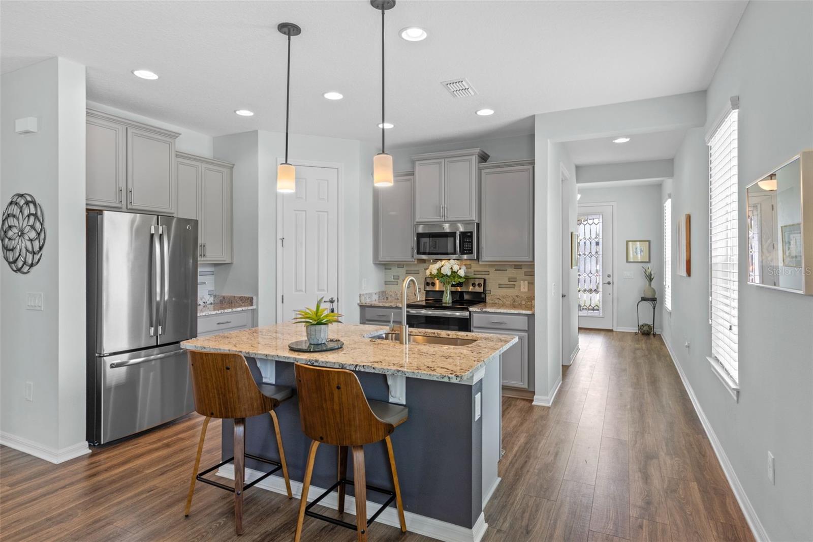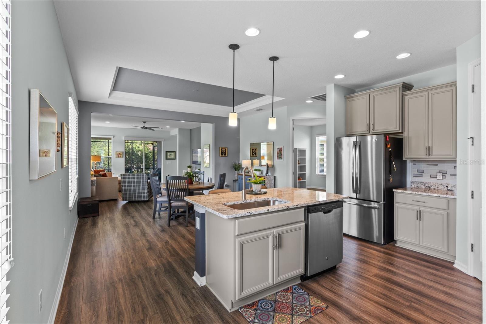 Welcome home to this immaculate *TURNKEY*, *CORNER LOT*, Private View home in beautiful Solivita! (Note: This home can come furnished PLUS with the golf cart!) This home is surrounded by pretty trees and luxurious landscaping, and only minutes away from the Village Center! The lanai is completely private with no rear neighbors, surrounded by privacy trees - perfect for you to enjoy all year round as you relax in the shade and enjoy the Florida sunshine! This gorgeous 2 bedroom + Den/2 bathroom home is an OPEN CONCEPT with upgrades including high ceilings, laminate flooring in the living areas, and stunning kitchen! The kitchen has 42” cabinets, lots of counterspace, and a beautiful backsplash to match. The living area and dining room overlook your PRIVATE SCREENED-IN Lanai - perfect for entertaining guests, or simply relaxing and enjoying your coffee in the Florida breeze. The Master bedroom boasts a large walk-in closet, and an En-Suite Bath with dual sink vanity and glass shower. The extra bedroom and den are on the opposite side of the home for a great split floorplan, with the 2nd bath conveniently located in between the rooms. Does it get much better than this? Solivita offers endless amenities including 14 heated swimming pools, indoor pool and indoor walking track, state of the art fitness centers, pickleball courts, lighted tennis courts, golf, over 250+ clubs to join, 3 community restaurants, Farmers Markets every Monday and Friday, and so much more! Only 30 minutes from Disney and all of Orlando’s major attractions! Publix, Aldi’s & Super Walmart are also just a few miles outside the Main Gate! Convenient to shopping and major roadways. Poinciana Lakes Plaza is a MAJOR NEW SHOPPING CENTER that opened directly across from the Solivita Main Gate! This AMAZING new shopping center features so many restaurants and shopping including: Sprouts Grocery, Ross, TJ MAXX, ULTA Beauty, Hair Cuttery, Burlington, Rack Room Shoes, PETCO, Outback, 5 Guys, First Watch, Urgent Care, Dentist, TD Bank – AND SO MUCH MORE TO COME! Call today to schedule your private showing!