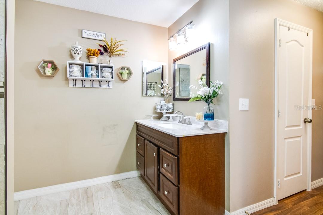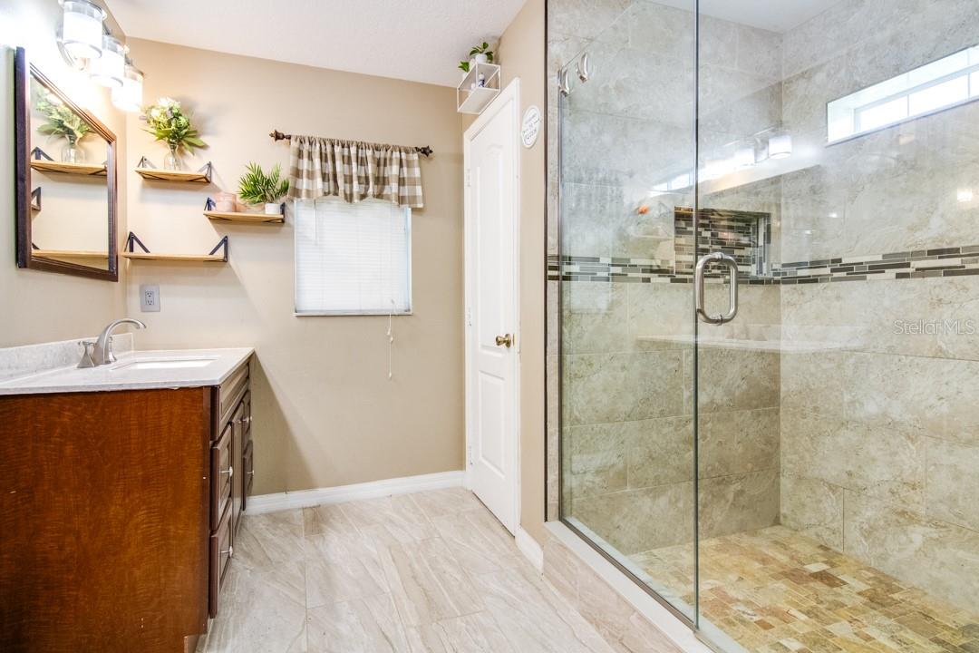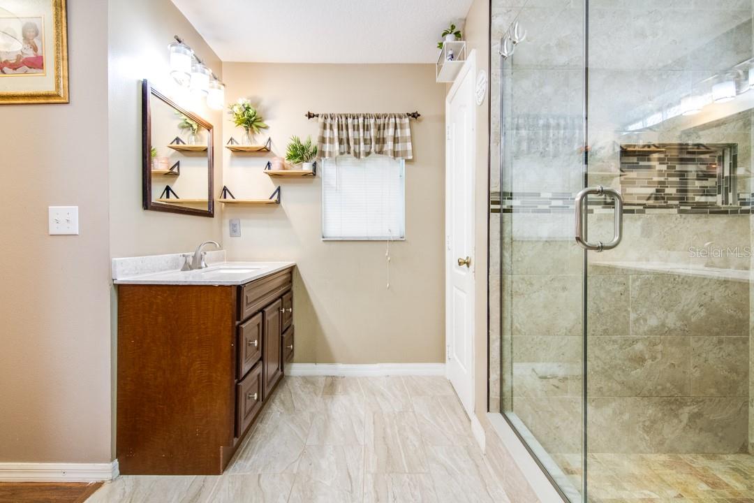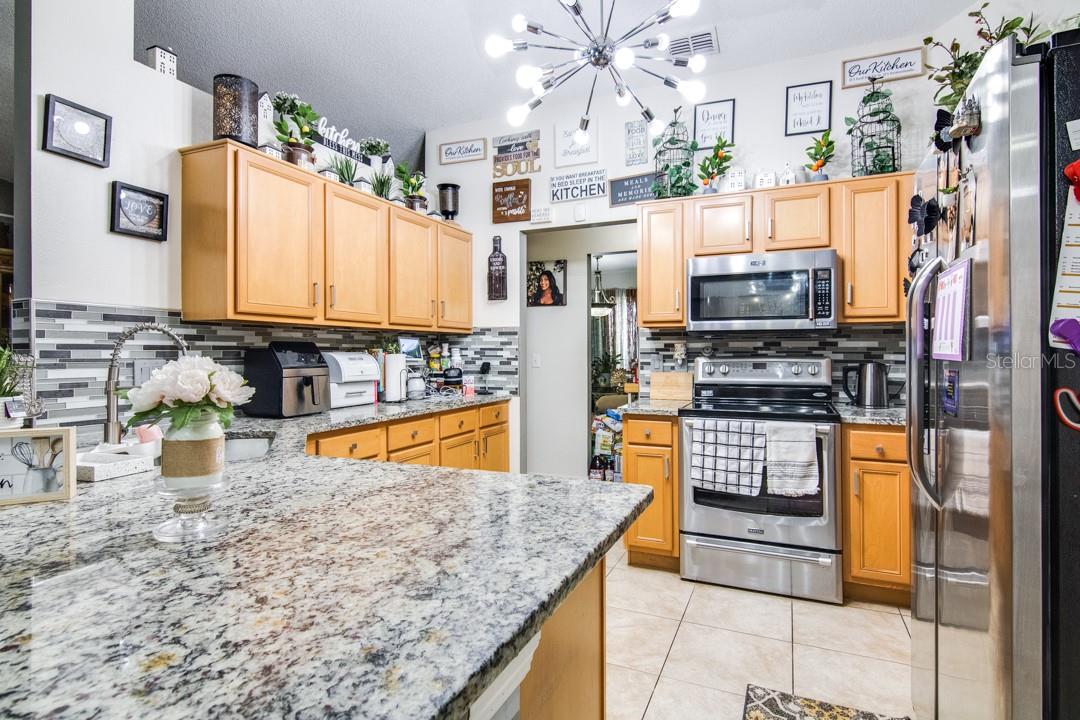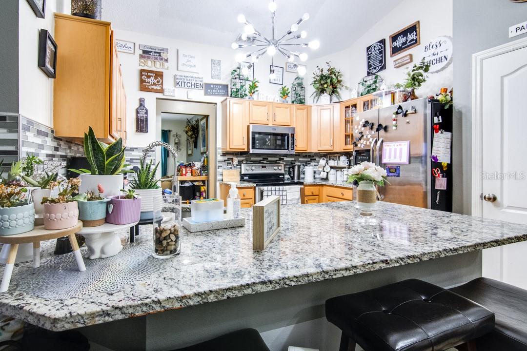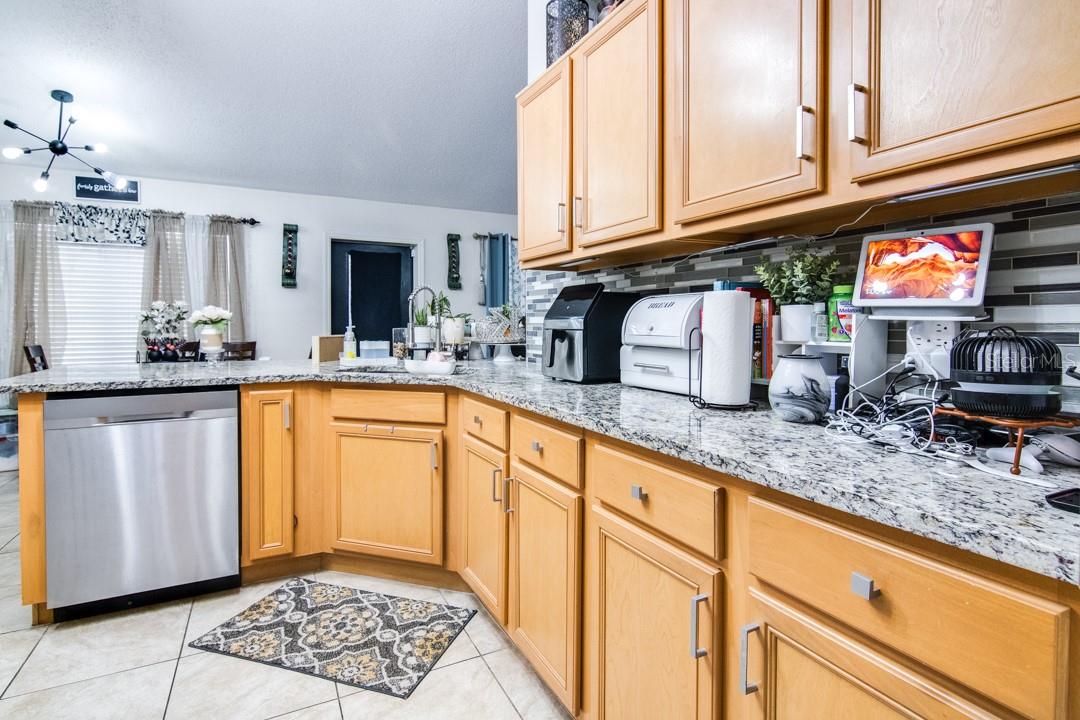 Look at this beautifully updated 3-bed, 2-bath home located in the Poinciana Villages community in beautiful Poinciana! As you approach the home, you will notice that it has a nice-sized front yard and a good-looking architectural shingle roof. Upon entering, you will see a formal living area off to your left and, to your right, a nice office space. The home opens up to a family room and dining room combination featuring laminate flooring. Off of this area is a dinette that overlooks the beautiful kitchen. The kitchen features stunning granite countertops, a glass tile backsplash, and nice tile flooring. You will notice this home is a split plan, and across the family room area is the master bedroom. The master bedroom features laminate flooring, crown molding, double walk-in closets, and leads to the ensuite master bathroom. You will find in the master bathroom dual granite vanities, nice tile flooring, and a very nicely updated step-in shower. Across the home, you will find the secondary bedrooms that feature laminate flooring and the secondary bathroom that has a nicely updated step-in shower, granite vanity, and tile flooring. The current owner has made a large screened-in area on the back of the home that has an additional kitchen area and plenty of space. Roof replaced in 2016. Poinciana Villages HOA fees include cable and internet. Poinciana is conveniently located in Central Florida, near Orlando and the surrounding attractions. Do not miss out on a nice home in a great area; schedule your showing today!