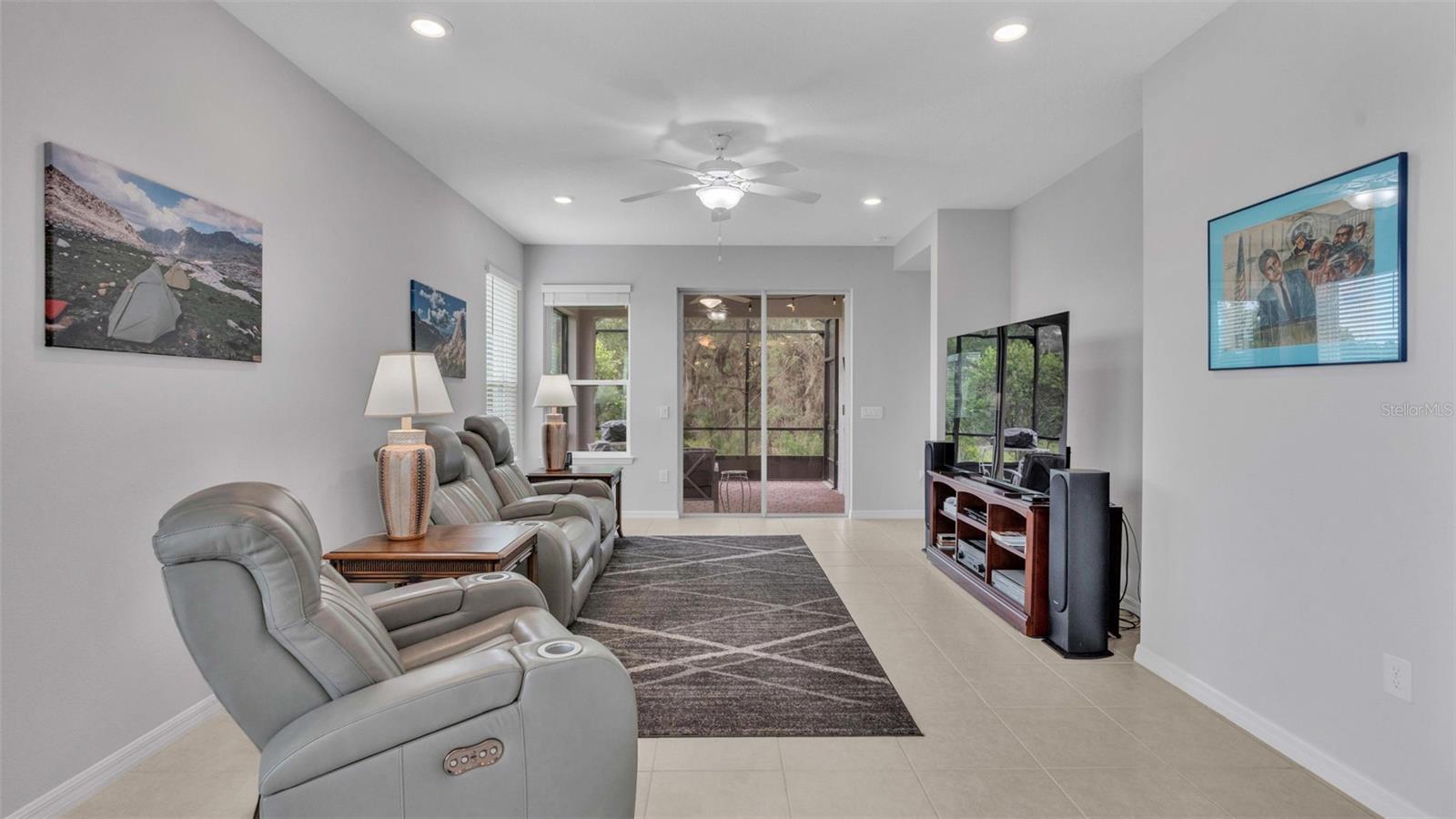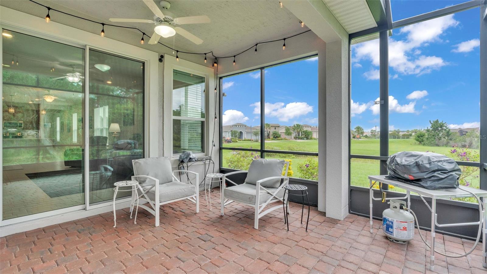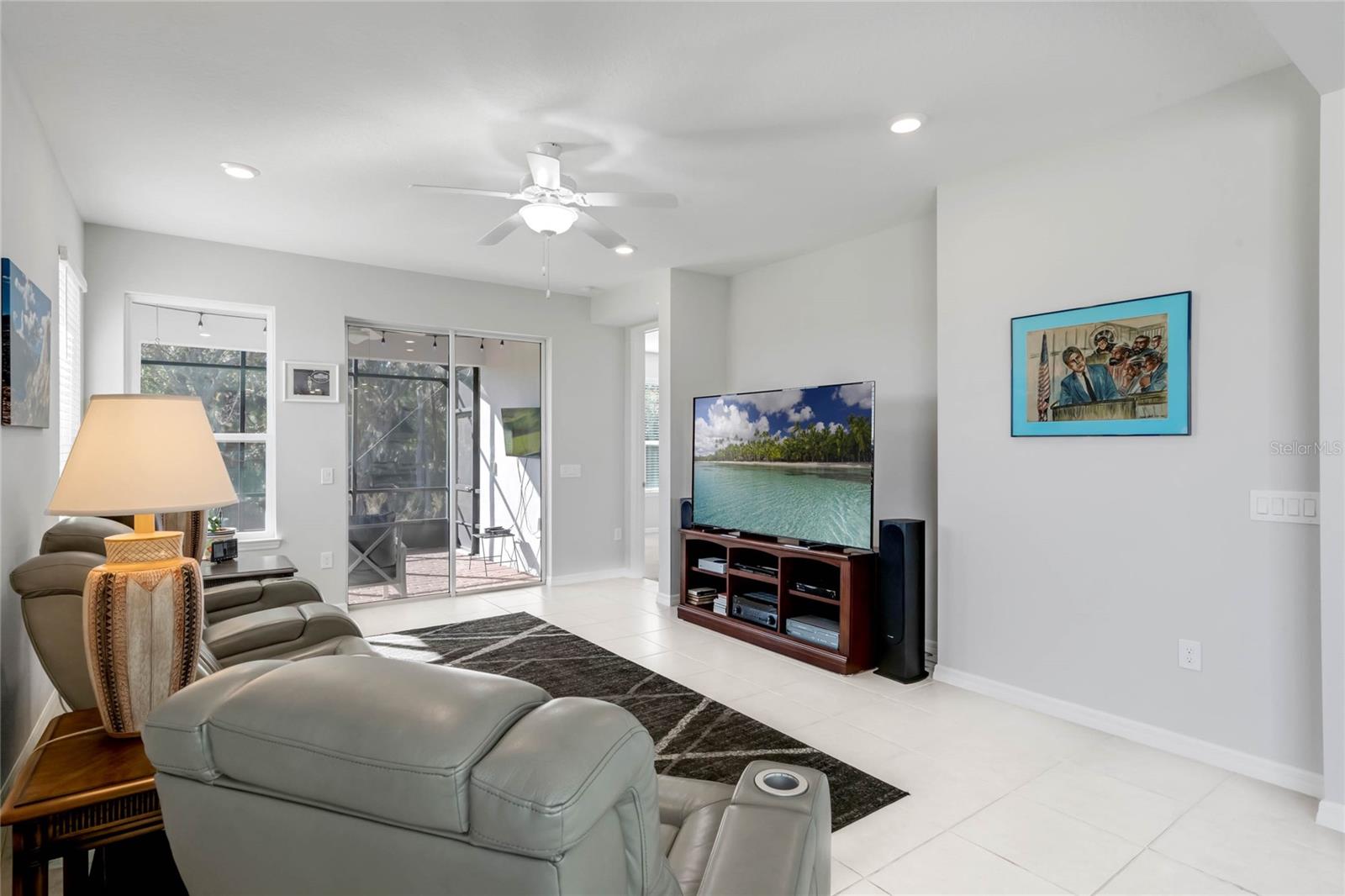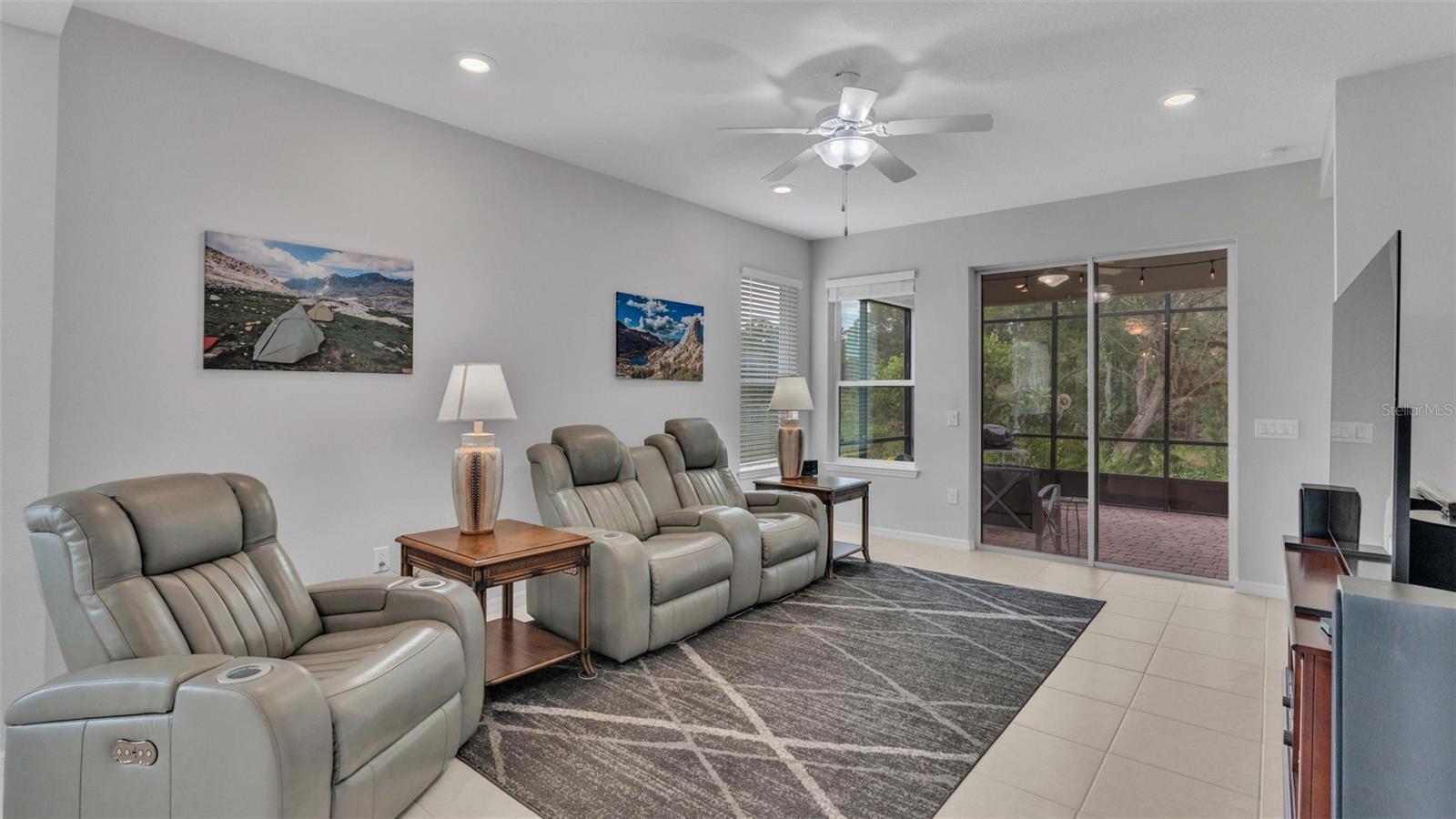 Welcome to this impeccably maintained Brescia Model home, part of the desirable Garden Series Collection, offering 1,703 sq. ft. of comfortable living space. Nestled on a prime lot with no rear-facing (south) or side (east) neighbors, this home provides unparalleled privacy and tranquility. Enjoy the serene wooded conservation area and breathtaking sunrises from your backscreen lanai. This quiet haven even offers views of SpaceX launches! Key Features: Spacious Living: The model features 8’ doors throughout, a large master bedroom with an en-suite master bath, dual sinks, and a walk-in shower. Versatile Den: The spacious den/office/study can be used as an additional bedroom, craft room, music room, or man cave. Interior Highlights: Modern Kitchen: Quartz countertops, upgraded dishwasher and garbage disposal, and a large walk-in pantry. Pre-wired Convenience: Pendant lighting and dining room fan/light wiring, plus cable connections in all rooms. Functional Laundry Room: Includes cabinets for extra storage. Safety Features: Grab bars in the master bath. Exterior Highlights: Garage Upgrades: Epoxy finish on the two-car garage floor, golf cart electrical outlets. Enhanced Structure: Foam-infused cinder block construction. Security & Lighting: Outlets in soffits for security and decorative lights, upgraded landscaping maintained by HOA, rear floodlights, crystalline front door insert, and hose bibs on each corner. Water Softener: Digitally controlled for your convenience. Optional Extras: Interior furniture can be included with the transaction. Enjoy the 55+ Lifestyle Experience the vibrant, award-winning, gated 55+ golf course community in sunny Central Florida. This community spans 4,300 acres of wooded conservation area and offers: Recreation: Two 18-hole golf courses, 14 swimming pools, tennis courts, pickleball, softball, bocce ball, and horseshoes. Social: Over 250 clubs and groups, a butterfly garden, dog parks, and three on-site restaurants. Convenience: Easy access to theme parks, airports, and both the east and west coasts. HOA: The HOA fees include lawn care and TV/fiber internet. Don’t miss this opportunity to enjoy all that Central Florida has to offer. Schedule your private showing today!