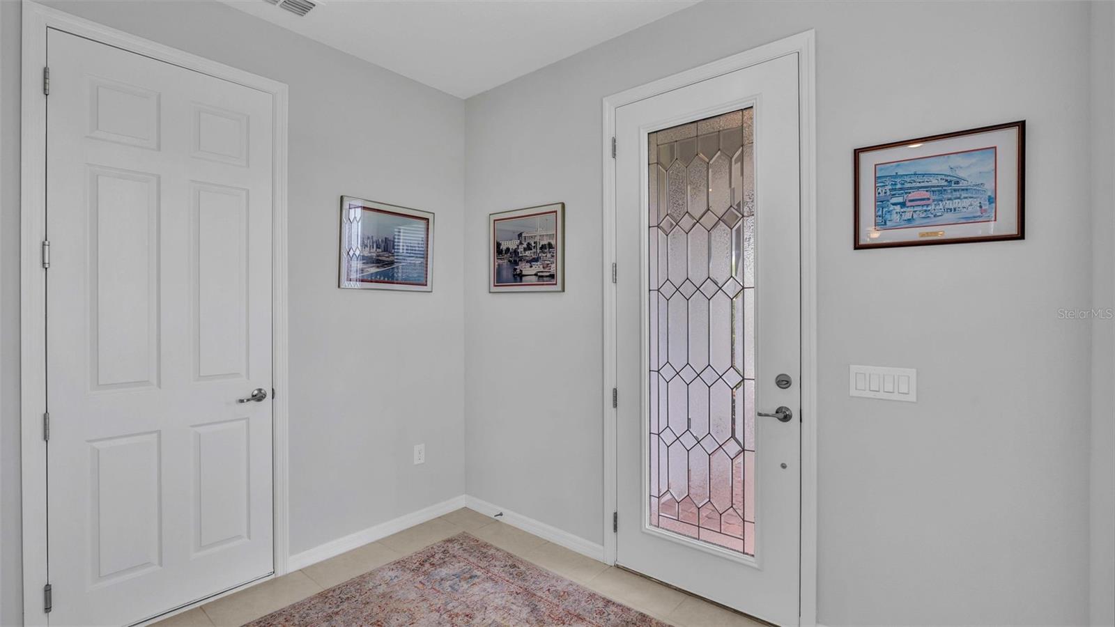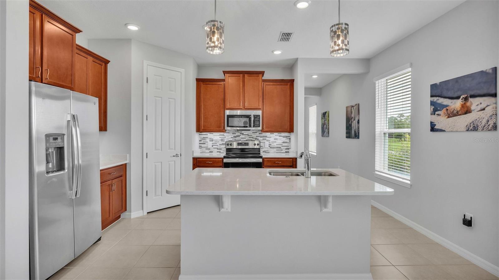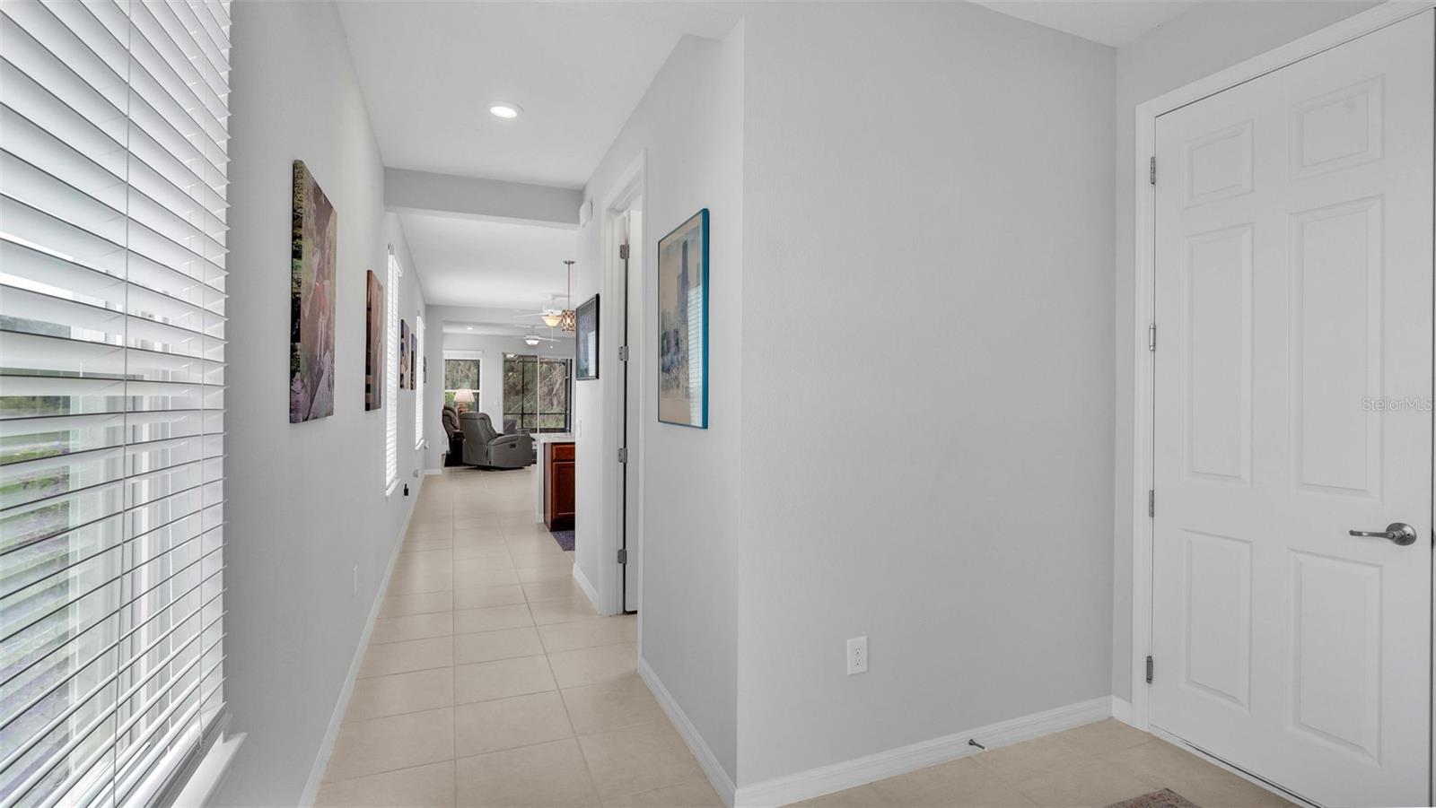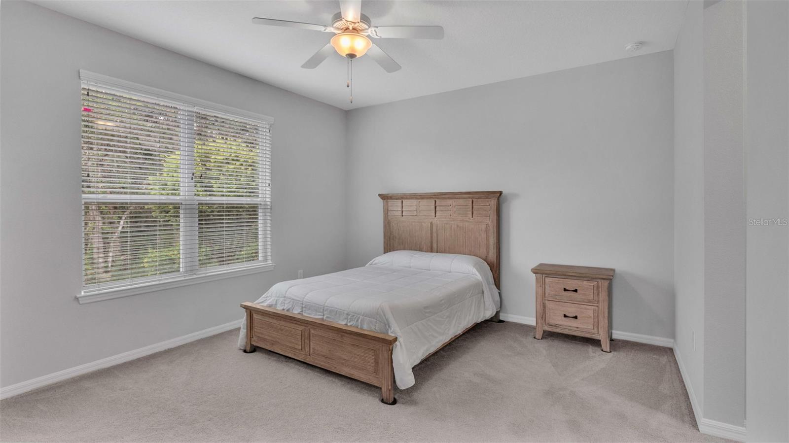 Welcome to this impeccably maintained Brescia Model home, part of the desirable Garden Series Collection, offering 1,703 sq. ft. of comfortable living space. Nestled on a prime lot with no rear-facing (south) or side (east) neighbors, this home provides unparalleled privacy and tranquility. Enjoy the serene wooded conservation area and breathtaking sunrises from your backscreen lanai. This quiet haven even offers views of SpaceX launches! Key Features: Spacious Living: The model features 8’ doors throughout, a large master bedroom with an en-suite master bath, dual sinks, and a walk-in shower. Versatile Den: The spacious den/office/study can be used as an additional bedroom, craft room, music room, or man cave. Interior Highlights: Modern Kitchen: Quartz countertops, upgraded dishwasher and garbage disposal, and a large walk-in pantry. Pre-wired Convenience: Pendant lighting and dining room fan/light wiring, plus cable connections in all rooms. Functional Laundry Room: Includes cabinets for extra storage. Safety Features: Grab bars in the master bath. Exterior Highlights: Garage Upgrades: Epoxy finish on the two-car garage floor, golf cart electrical outlets. Enhanced Structure: Foam-infused cinder block construction. Security & Lighting: Outlets in soffits for security and decorative lights, upgraded landscaping maintained by HOA, rear floodlights, crystalline front door insert, and hose bibs on each corner. Water Softener: Digitally controlled for your convenience. Optional Extras: Interior furniture can be included with the transaction. Enjoy the 55+ Lifestyle Experience the vibrant, award-winning, gated 55+ golf course community in sunny Central Florida. This community spans 4,300 acres of wooded conservation area and offers: Recreation: Two 18-hole golf courses, 14 swimming pools, tennis courts, pickleball, softball, bocce ball, and horseshoes. Social: Over 250 clubs and groups, a butterfly garden, dog parks, and three on-site restaurants. Convenience: Easy access to theme parks, airports, and both the east and west coasts. HOA: The HOA fees include lawn care and TV/fiber internet. Don’t miss this opportunity to enjoy all that Central Florida has to offer. Schedule your private showing today!
