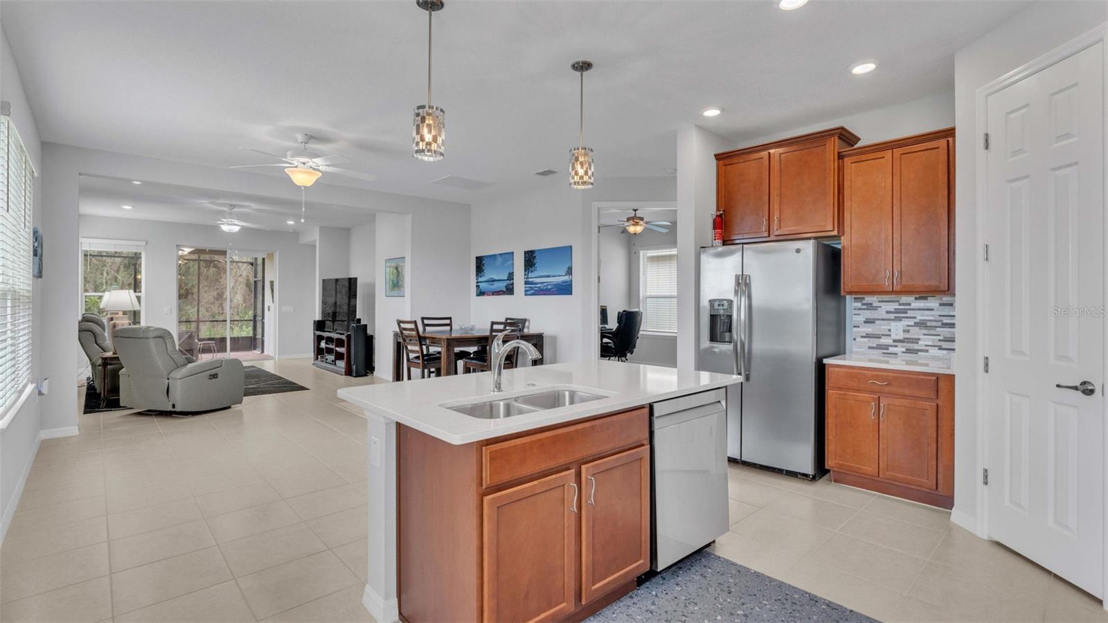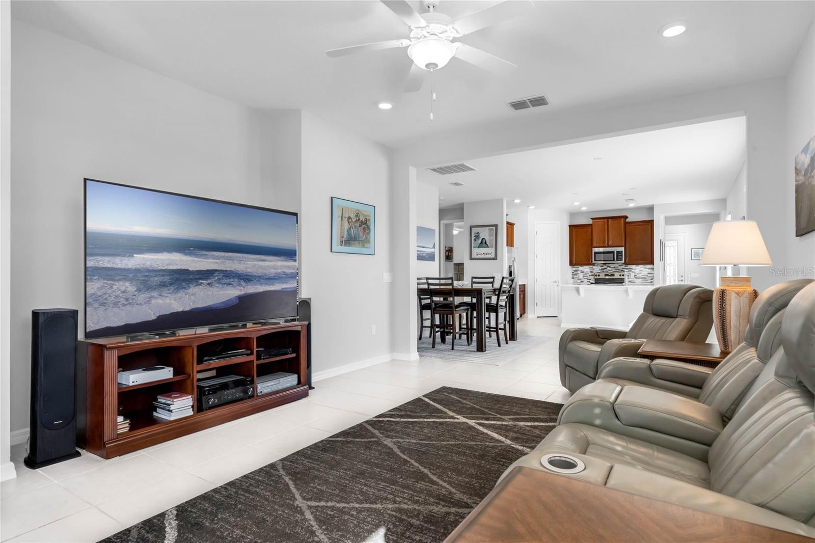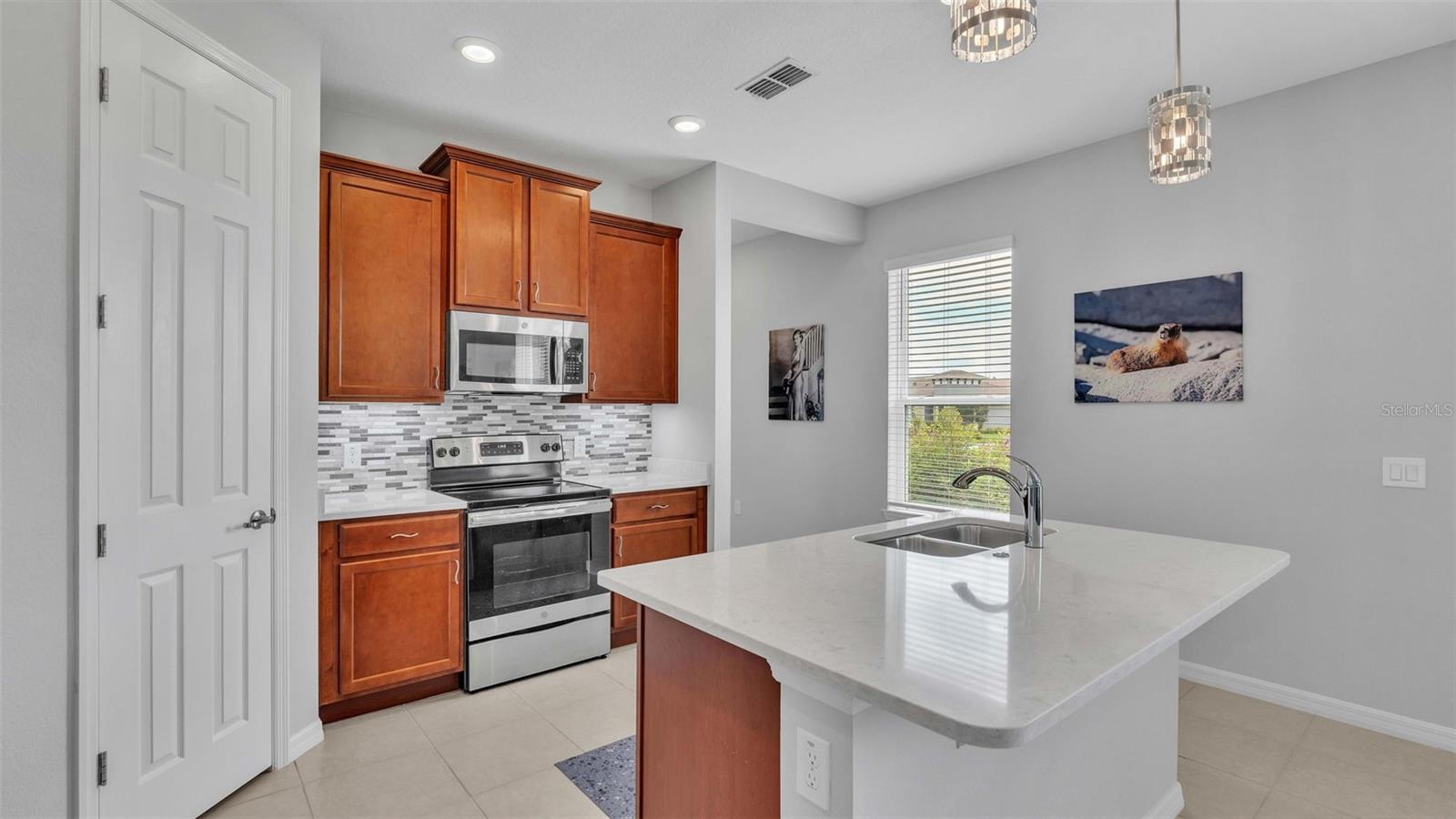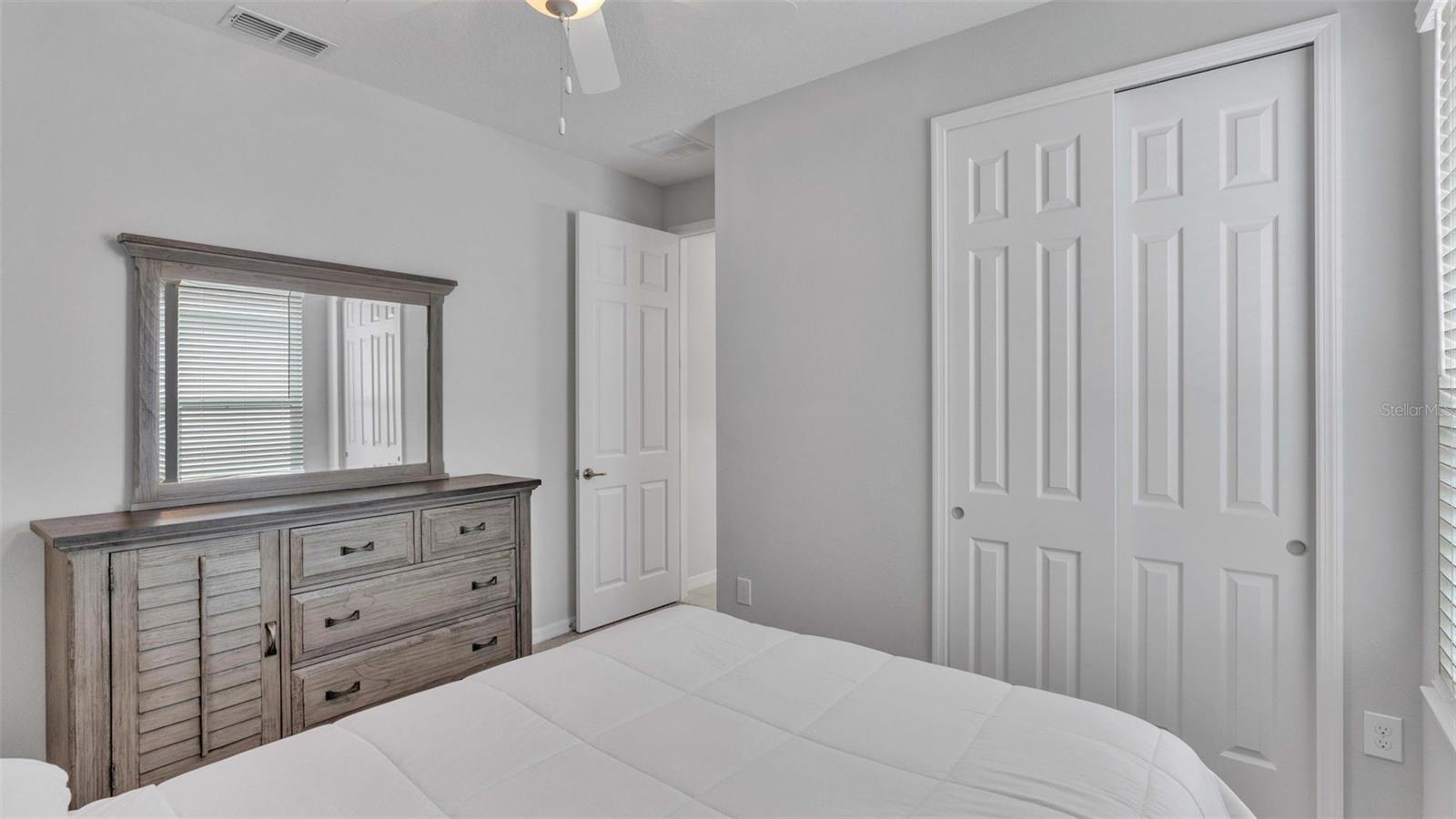 Welcome to this impeccably maintained Brescia Model home, part of the desirable Garden Series Collection, offering 1,703 sq. ft. of comfortable living space. Nestled on a prime lot with no rear-facing (south) or side (east) neighbors, this home provides unparalleled privacy and tranquility. Enjoy the serene wooded conservation area and breathtaking sunrises from your backscreen lanai. This quiet haven even offers views of SpaceX launches! Key Features: Spacious Living: The model features 8’ doors throughout, a large master bedroom with an en-suite master bath, dual sinks, and a walk-in shower. Versatile Den: The spacious den/office/study can be used as an additional bedroom, craft room, music room, or man cave. Interior Highlights: Modern Kitchen: Quartz countertops, upgraded dishwasher and garbage disposal, and a large walk-in pantry. Pre-wired Convenience: Pendant lighting and dining room fan/light wiring, plus cable connections in all rooms. Functional Laundry Room: Includes cabinets for extra storage. Safety Features: Grab bars in the master bath. Exterior Highlights: Garage Upgrades: Epoxy finish on the two-car garage floor, golf cart electrical outlets. Enhanced Structure: Foam-infused cinder block construction. Security & Lighting: Outlets in soffits for security and decorative lights, upgraded landscaping maintained by HOA, rear floodlights, crystalline front door insert, and hose bibs on each corner. Water Softener: Digitally controlled for your convenience. Optional Extras: Interior furniture can be included with the transaction. Enjoy the 55+ Lifestyle Experience the vibrant, award-winning, gated 55+ golf course community in sunny Central Florida. This community spans 4,300 acres of wooded conservation area and offers: Recreation: Two 18-hole golf courses, 14 swimming pools, tennis courts, pickleball, softball, bocce ball, and horseshoes. Social: Over 250 clubs and groups, a butterfly garden, dog parks, and three on-site restaurants. Convenience: Easy access to theme parks, airports, and both the east and west coasts. HOA: The HOA fees include lawn care and TV/fiber internet. Don’t miss this opportunity to enjoy all that Central Florida has to offer. Schedule your private showing today!