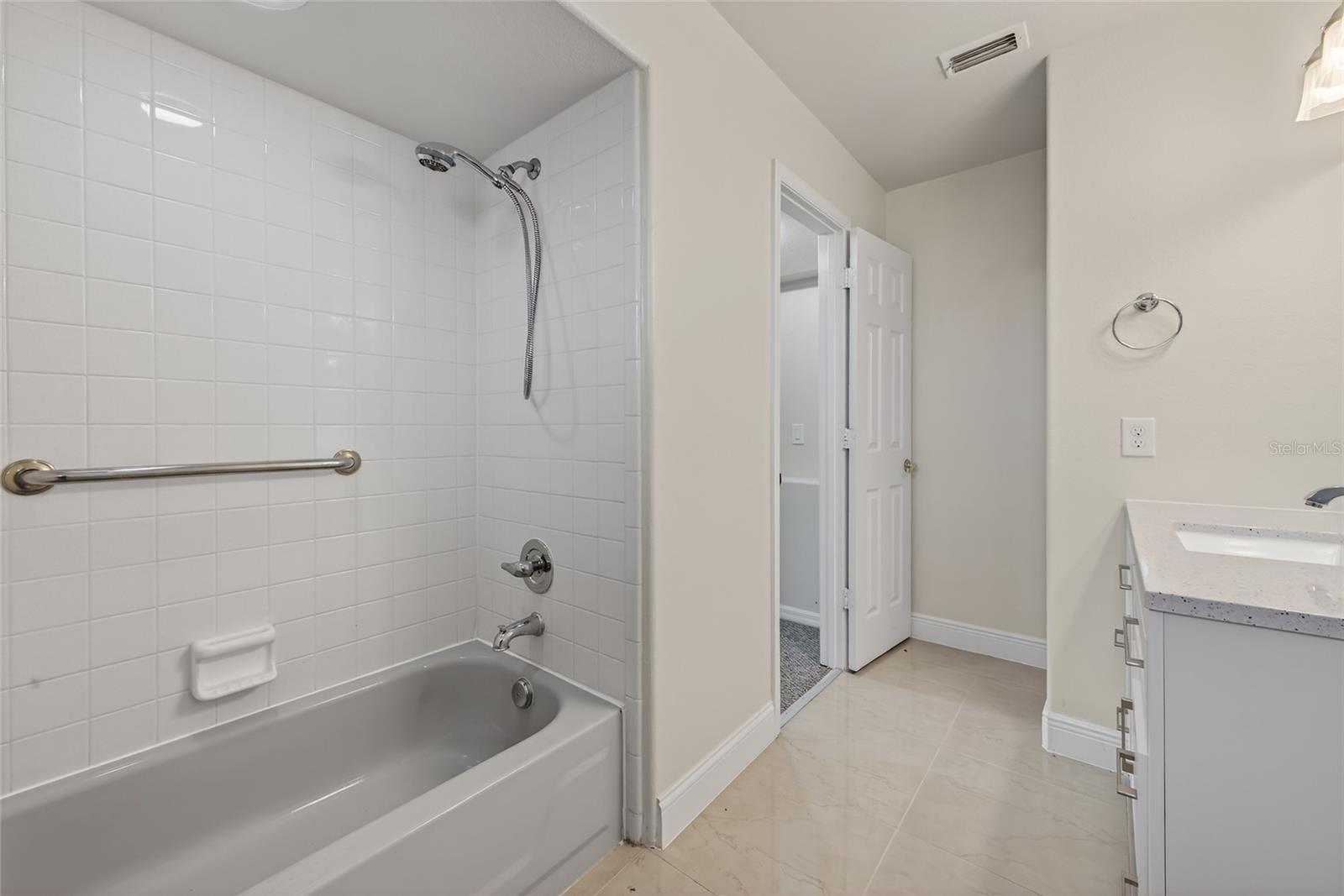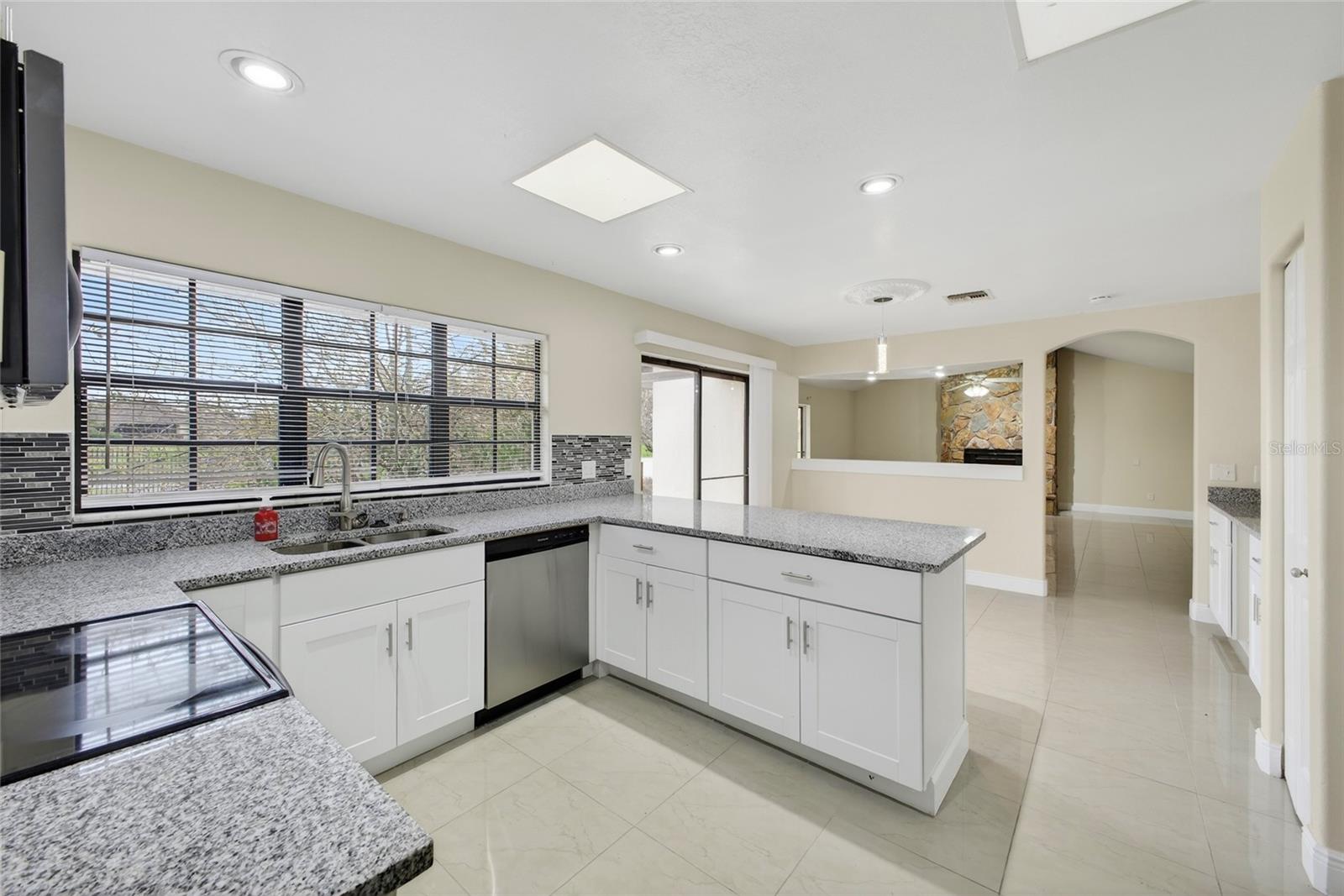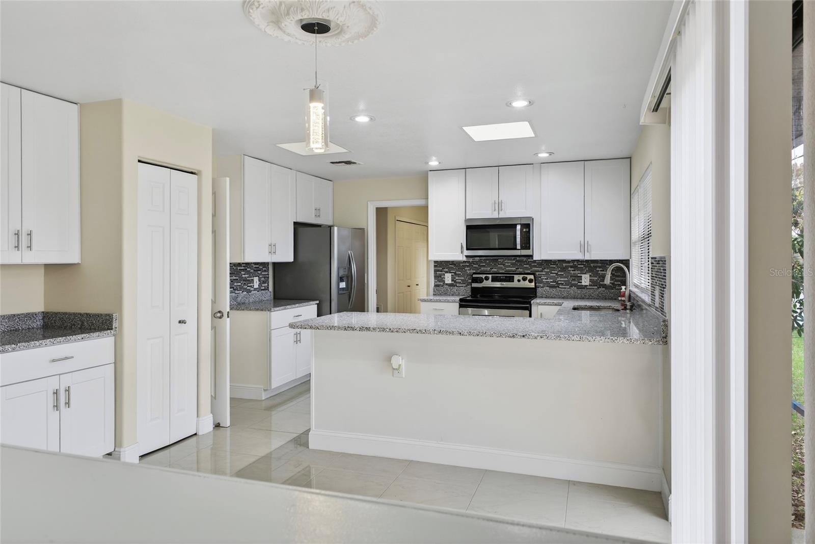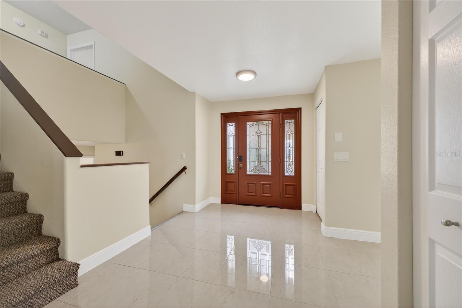 One or more photo(s) has been virtually staged. A one of a kind-level home nestled in the heart of Kissimmee’s sought-after Poinciana community. This spacious home is a true hidden gem with unique architectural character and modern comfort on nearly half an acre of a peaceful flag lot. This home has a newer roof installed in 2023! The courtyard style front welcomes you to into a beautifully designed home. The kitchen overlooks a cozy family area, featuring a fireplace and glass sliding doors opening up to a beautiful rear water view. There is a convenient laundry room and a half-bath on the main level. The tri-level split design leads you to three bedrooms on a lower half-level and as well as another bathroom. Two master suites with their own ensuites are on the upper half-level. Throughout the home you will find ample amount of storage. You'll also enjoy the three-bay garage, plenty of room for vehicles, toys and more storage. Outside, enjoy the privacy of your oversized lot. Plus, you’re just minutes away from local attractions, dining, and the vibrant metro areas.