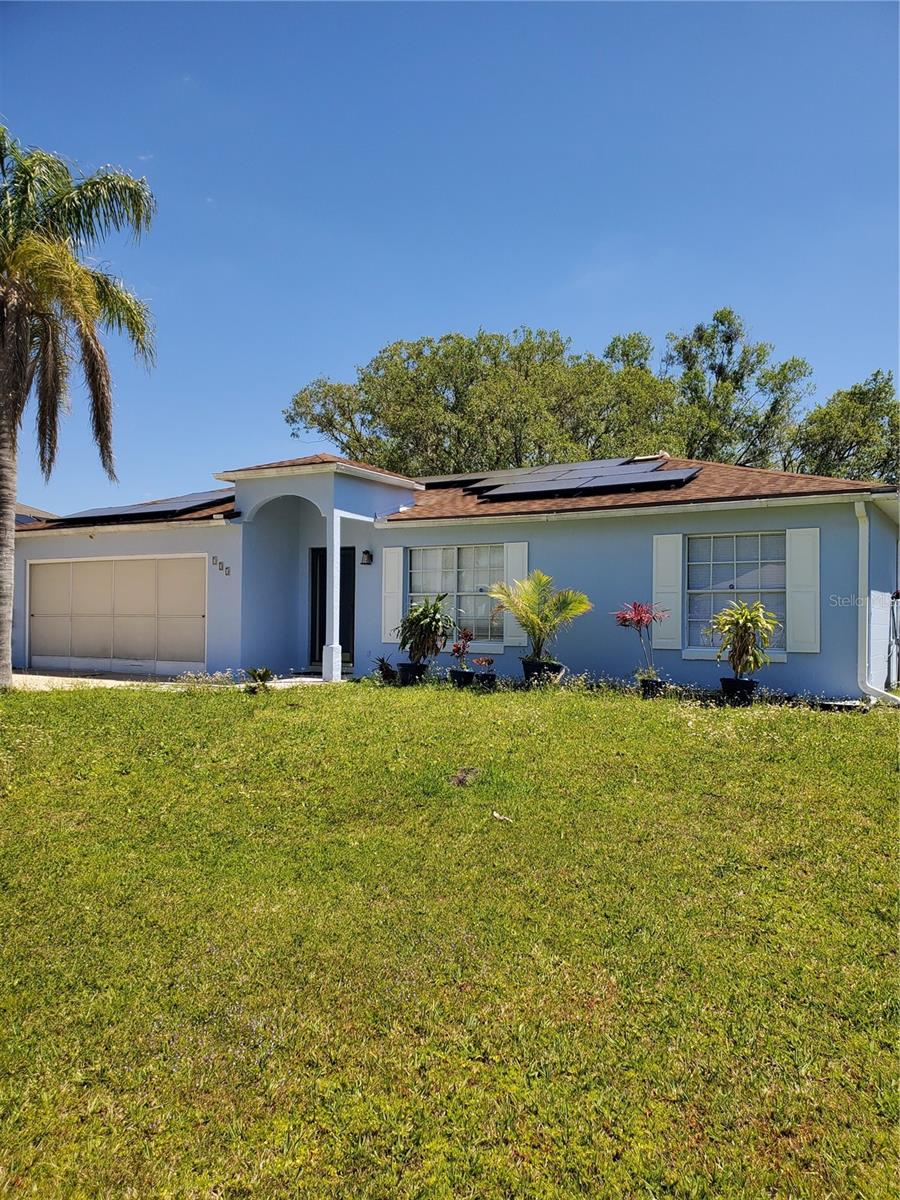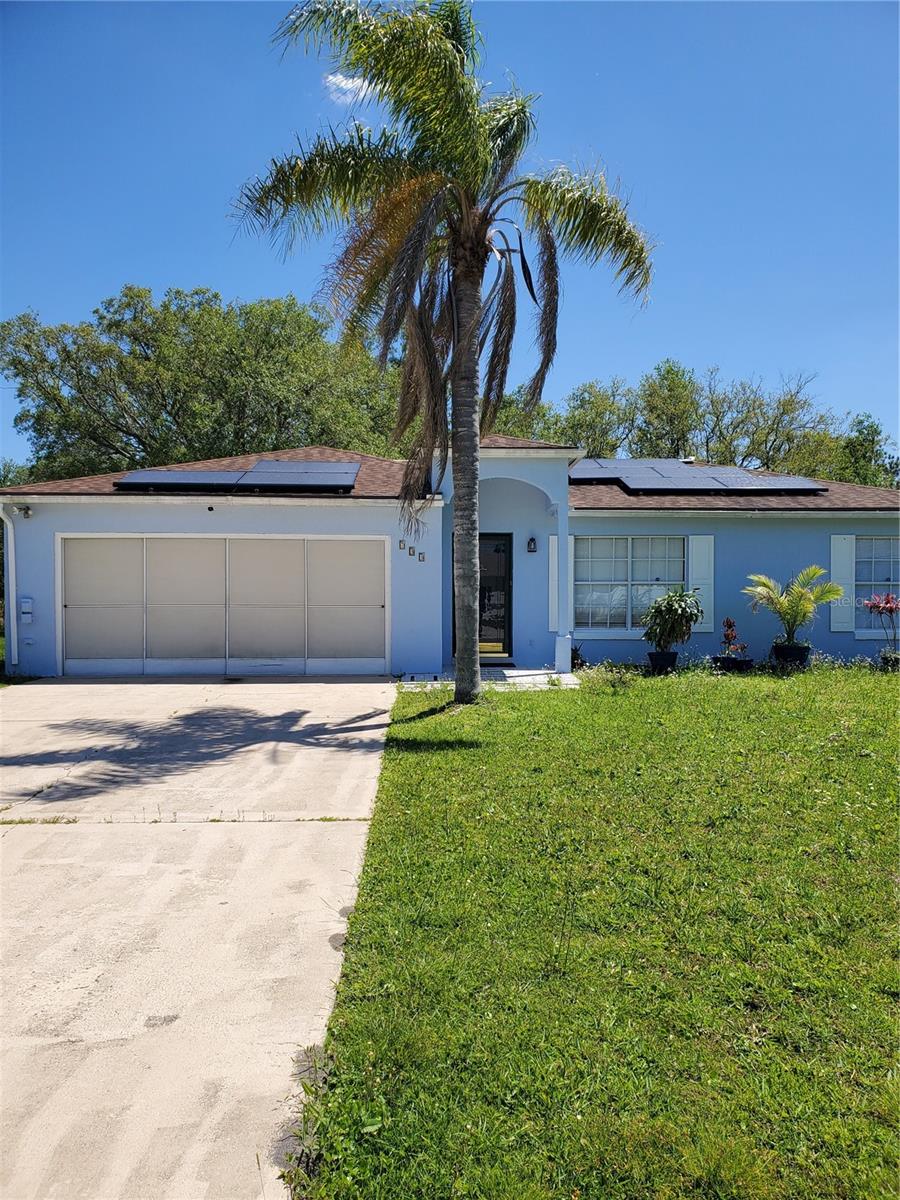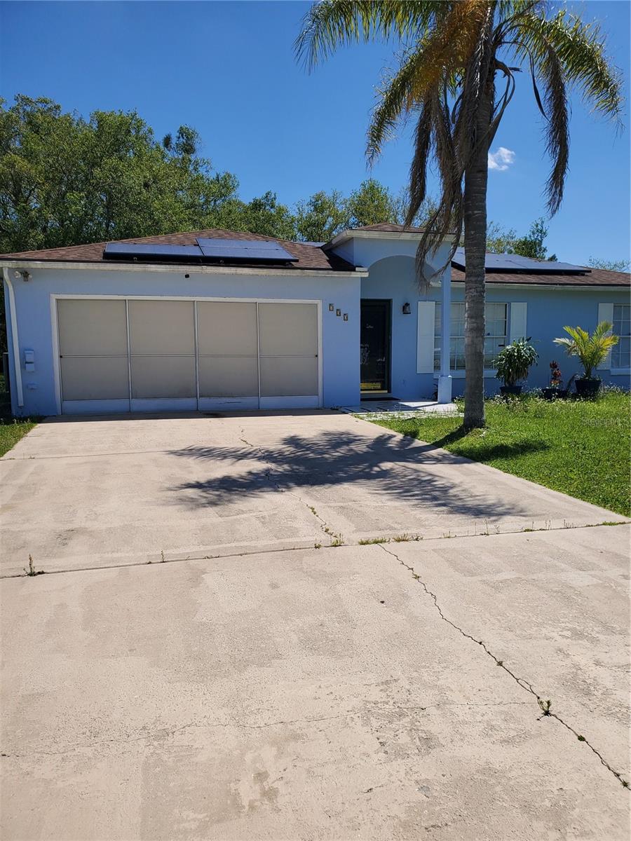 $10,000.00 PRICE DECREASE!!! NEWLY PAINTED!!!! SELLERS ARE MOTIVATED. Immaculate 3 beds 2 baths on a huge with solar panels and water treatment system to aide in reducing electricity expenses. Kitchen is fully equipped and features tile countertops, glass cabinet doors and extra large family size refrigerator. ADT smart home system. AC replaced in 2023. Screened Lanai and extended covered porch. The home is situated on an exceptional, oversized lot. This is an excellent starter or retirement home. The community has so much to offer you and your family which include: Resort style swimming pools, Fitness Center, Clubhouse, Tennis and Basketball Courts, Soccer Fields, walking trails and the home is conveniently located close to Poinciana Medical Center, gas stations, post office, doctors offices, supermarkets and so much more.