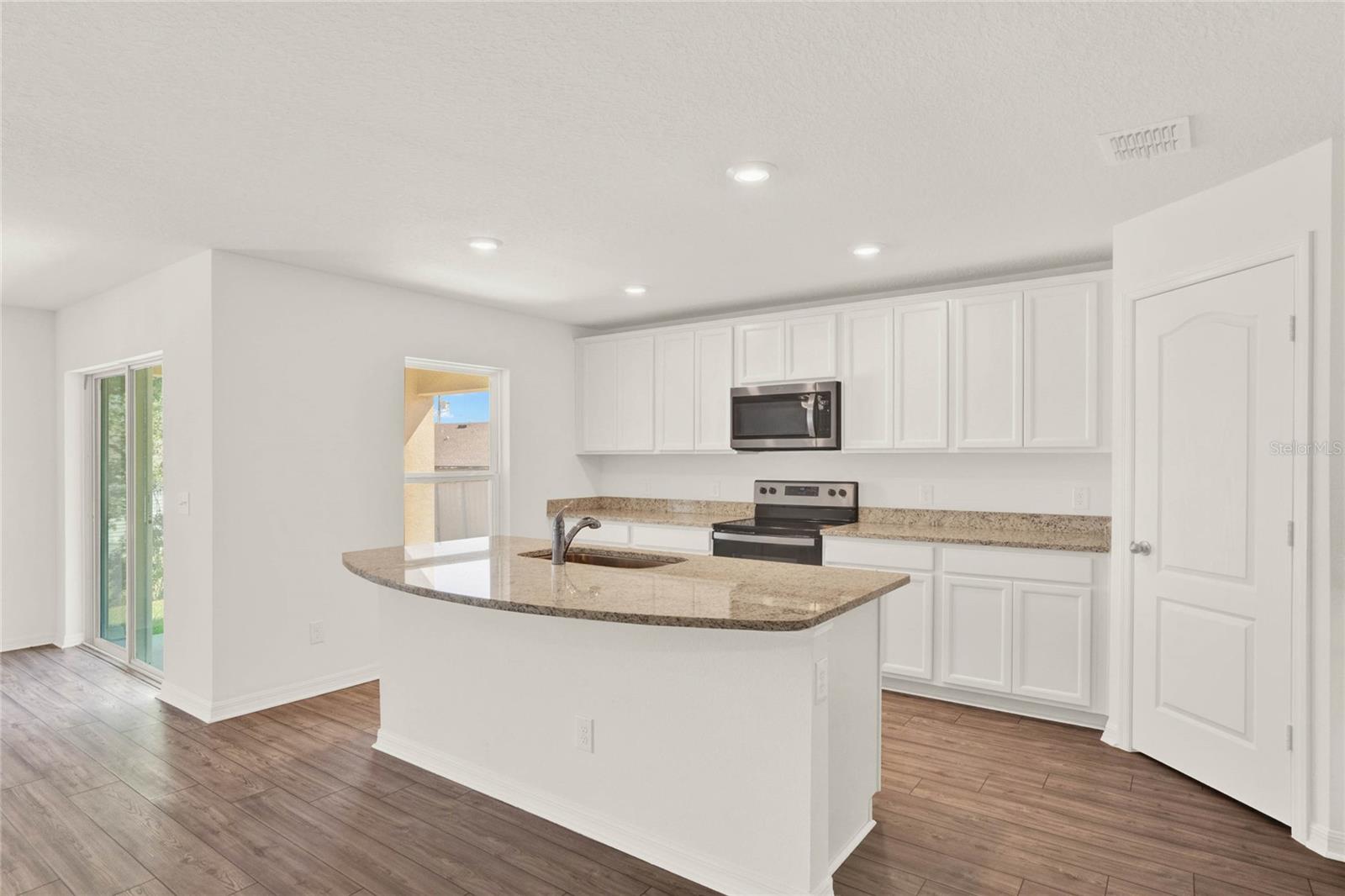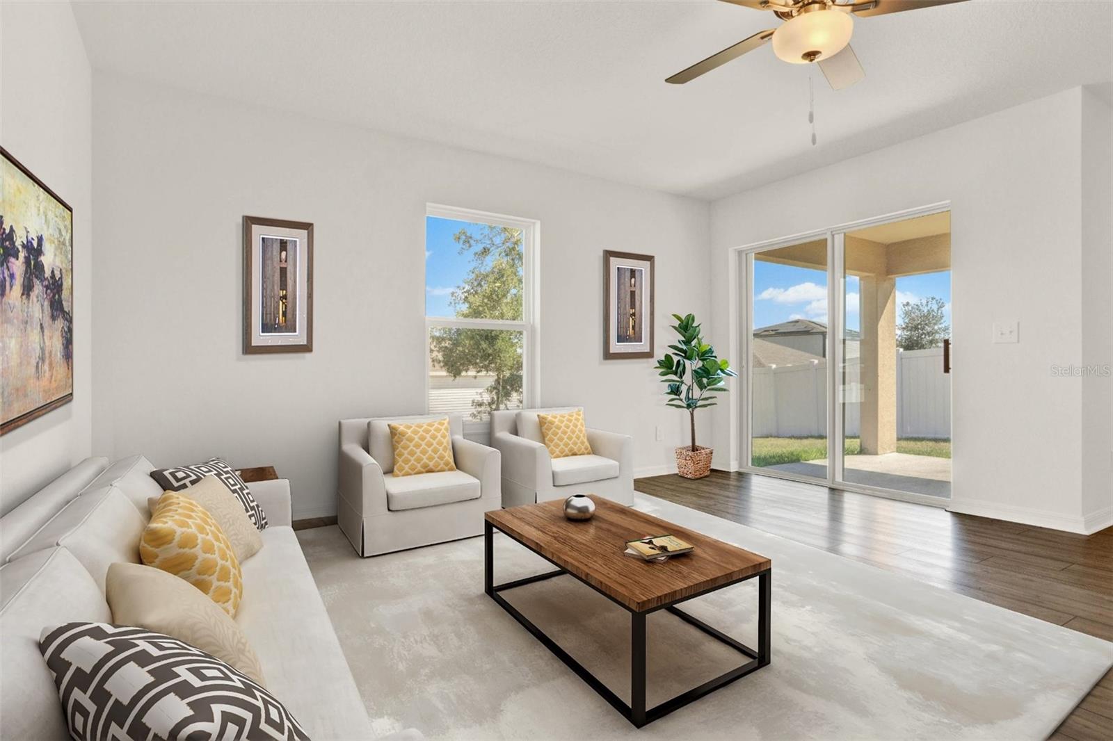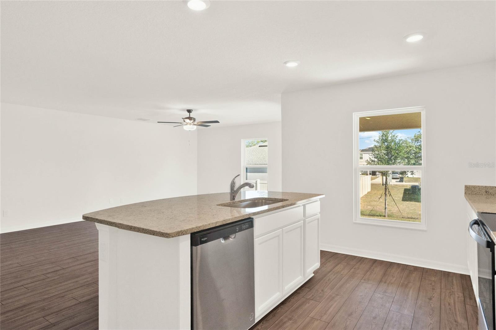 One or more photo(s) has been virtually staged. Nestled in a tranquil neighborhood, this pristine 5-bedroom, 3-bathroom home, built in 2023 and never lived in, offers modern comfort and style. Boasting 1,984 sq ft of living space, the open layout of the living room, dining room, and kitchen welcomes you with high ceilings and abundant natural light. The kitchen features stainless steel appliances and an extra-large island with space for a breakfast bar, perfect for enjoying those quick meals with your loved ones. All bedrooms offer ample storage, natural light, and space, ensuring everyone feels right at home. Retreat to the master bedroom with its spacious walk-in closet and luxurious en suite bathroom featuring a dual vanity. Outside, the shaded patio beckons for relaxation in the warm Florida weather, while the spacious backyard provides somewhere the littles ones can play freely. With parks, lakes, and nature preserves nearby, there's no shortage of outdoor activities. Just a short drive to Walt Disney World, this home offers the perfect blend of tranquility and convenience. Additionally, this home offers peace of mind with some transferable builder warranty. Don't miss out on this gorgeous home, schedule your private showing TODAY!!!