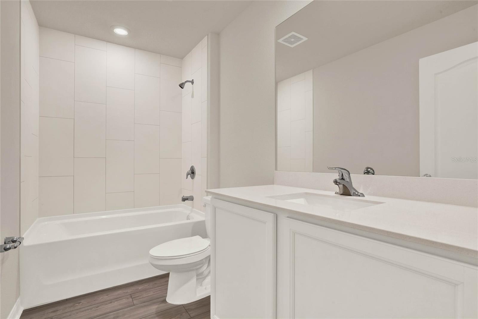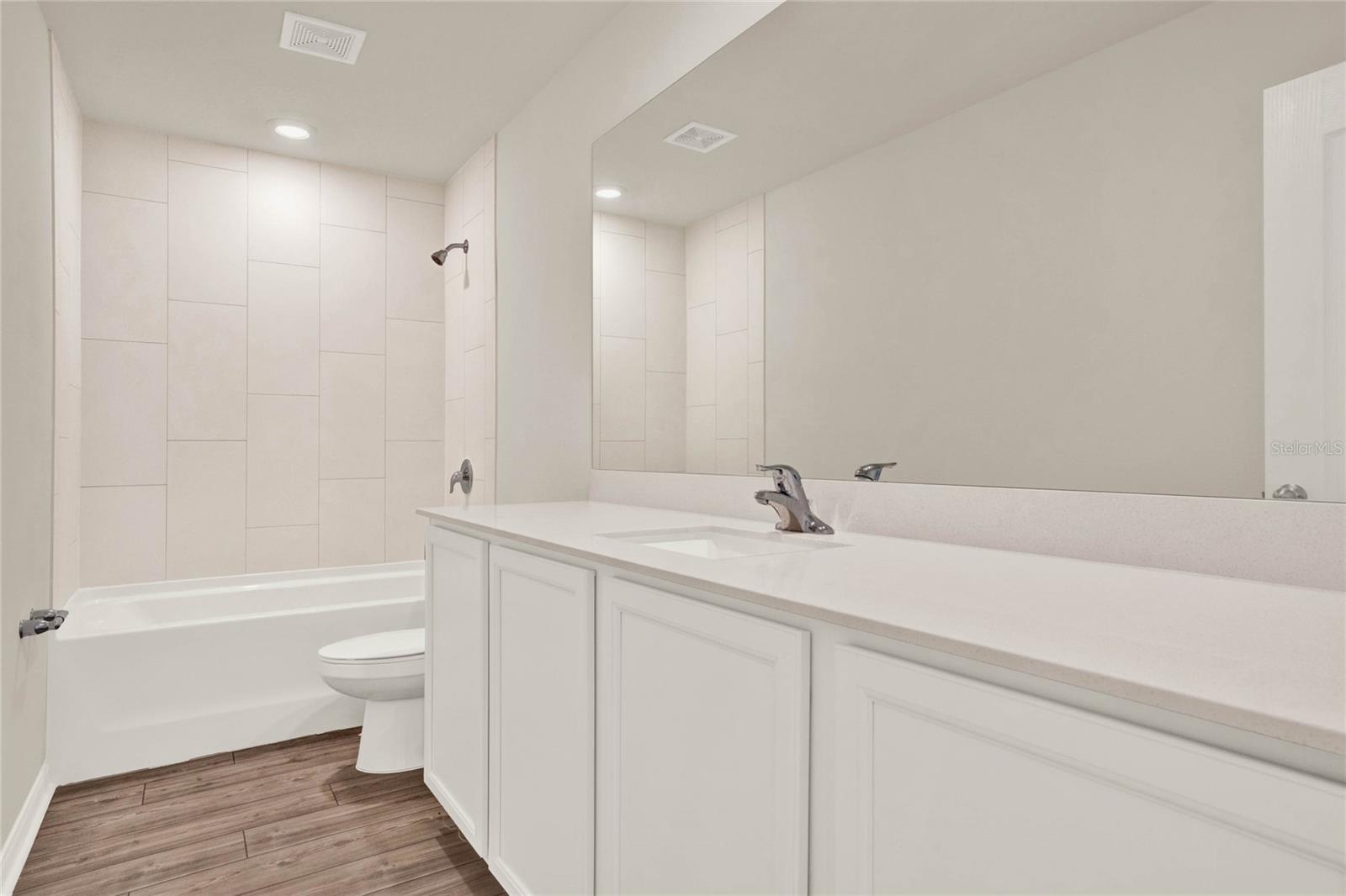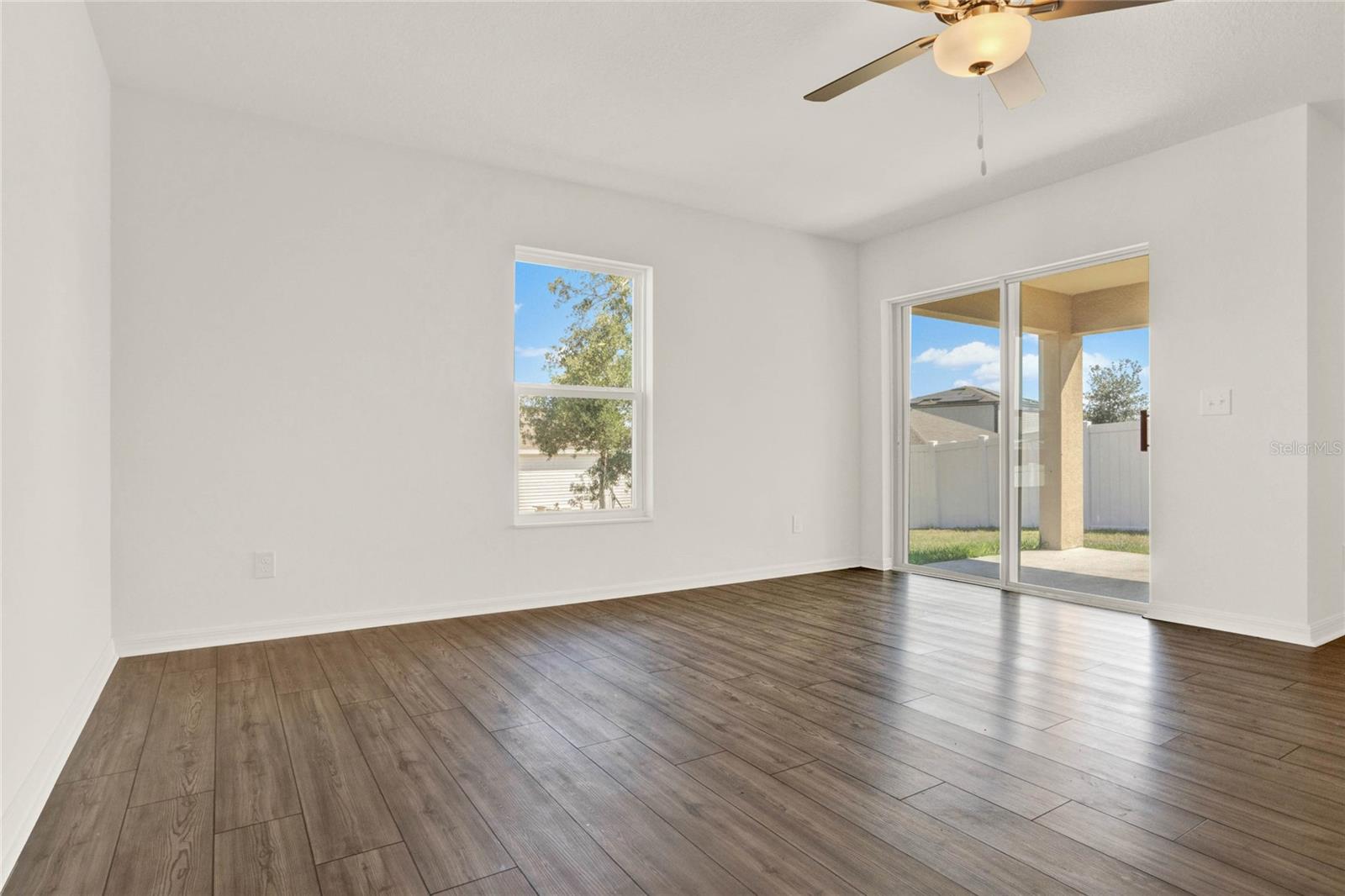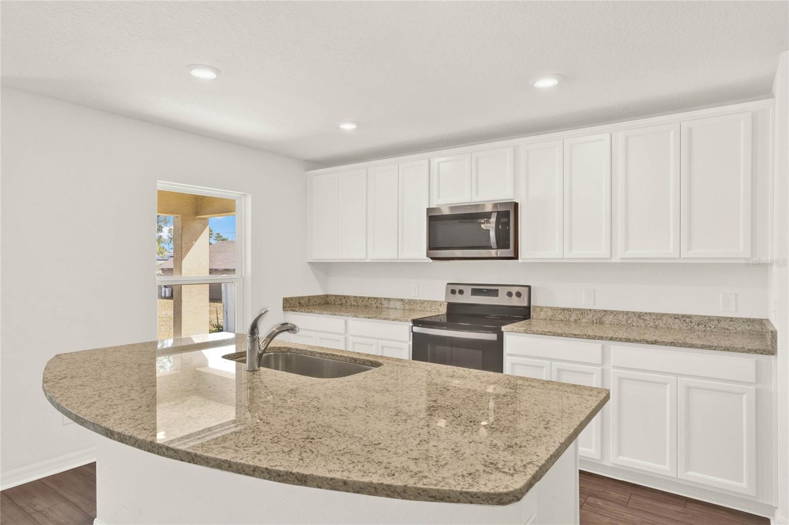 One or more photo(s) has been virtually staged. Nestled in a tranquil neighborhood, this pristine 5-bedroom, 3-bathroom home, built in 2023 and never lived in, offers modern comfort and style. Boasting 1,984 sq ft of living space, the open layout of the living room, dining room, and kitchen welcomes you with high ceilings and abundant natural light. The kitchen features stainless steel appliances and an extra-large island with space for a breakfast bar, perfect for enjoying those quick meals with your loved ones. All bedrooms offer ample storage, natural light, and space, ensuring everyone feels right at home. Retreat to the master bedroom with its spacious walk-in closet and luxurious en suite bathroom featuring a dual vanity. Outside, the shaded patio beckons for relaxation in the warm Florida weather, while the spacious backyard provides somewhere the littles ones can play freely. With parks, lakes, and nature preserves nearby, there's no shortage of outdoor activities. Just a short drive to Walt Disney World, this home offers the perfect blend of tranquility and convenience. Additionally, this home offers peace of mind with some transferable builder warranty. Don't miss out on this gorgeous home, schedule your private showing TODAY!!!