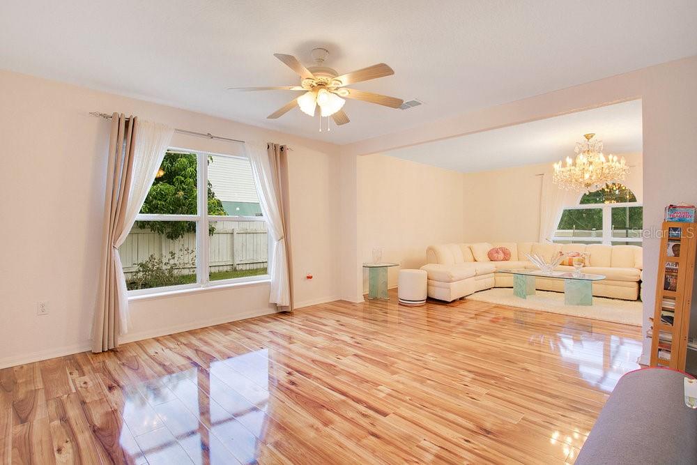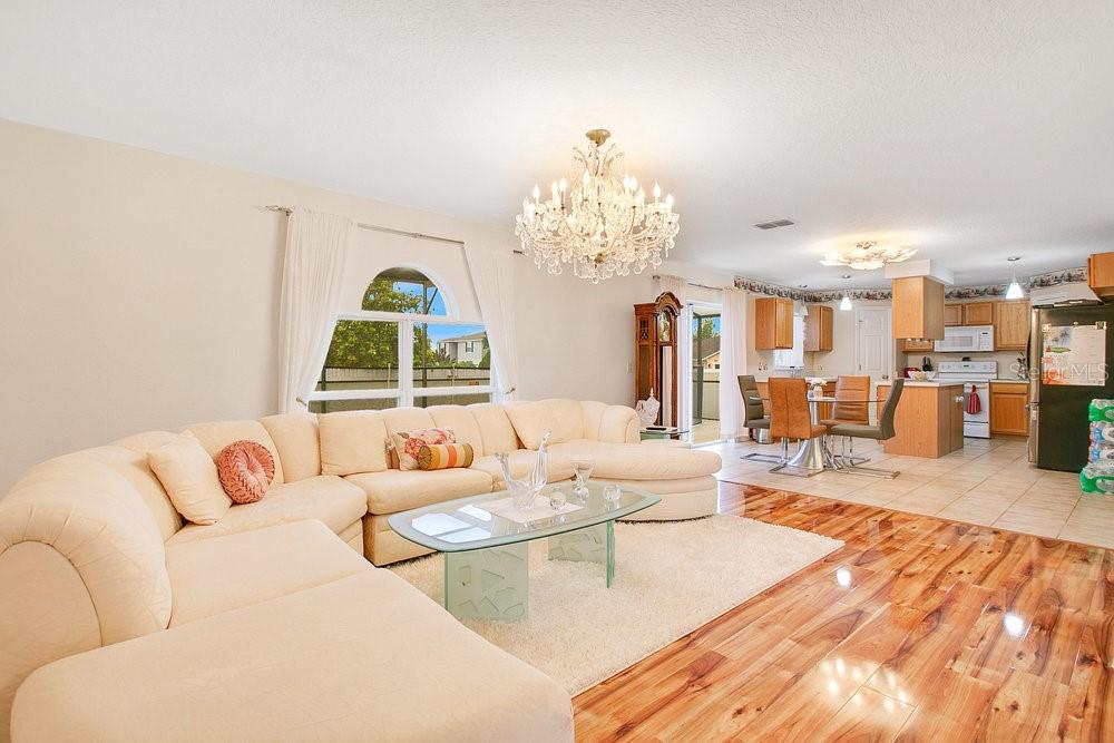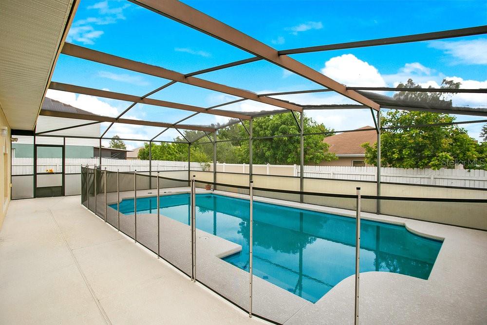 Clean Move in ready 4 Bedroom, 2 1/2 Bathroom, 2 car garage, Single-Family Pool Home on a Large Corner Lot! As you enter the home, you are greeted by a formal room- ready for you to make it whatever you desire. Further into the home is a large kitchen. Adjacent to the kitchen is an oversized family room that overlooks the screened-in pool and lanai. The master bedroom contains an en suite bathroom with a walk-in shower and garden tub. Conveniently located on the other side of the home from the master bedroom are three additional bedrooms. A bonus room at the front of the home is a perfect opportunity for a formal living room or office space, or additional Bedroom. Property has an extended driveway to park your RV or Boat. Enjoy privacy with the fully fenced yard and Cul De Sac