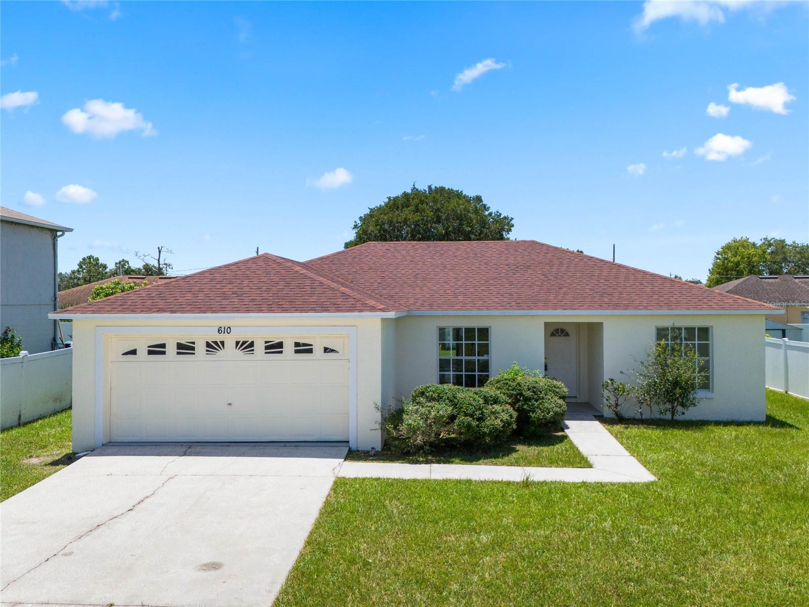Welcome to 610 Crane Drive, a charming single-family residence in the heart of Poinciana, FL 34759. This inviting home offers three spacious bedrooms and two modern bathrooms, providing ample space for comfortable living. The property boasts a well-appointed kitchen with solid wood cabinets, seamlessly flowing into the family room, perfect for entertaining. High cathedral ceilings enhance the open floor plan, creating a bright and airy ambiance throughout. Included in the sale is a convenient dishwasher, making everyday chores a breeze. The interior and exterior of the property were freshly painted in 2024, and the master bathroom features a newly remodeled stand-up shower, also updated in 2024. Additionally, a new roof was installed in 2021. Outside, you'll find a 2-space attached garage, offering plenty of storage and parking options. This home combines style and functionality, making it ideal for anyone seeking a serene yet connected living experience.