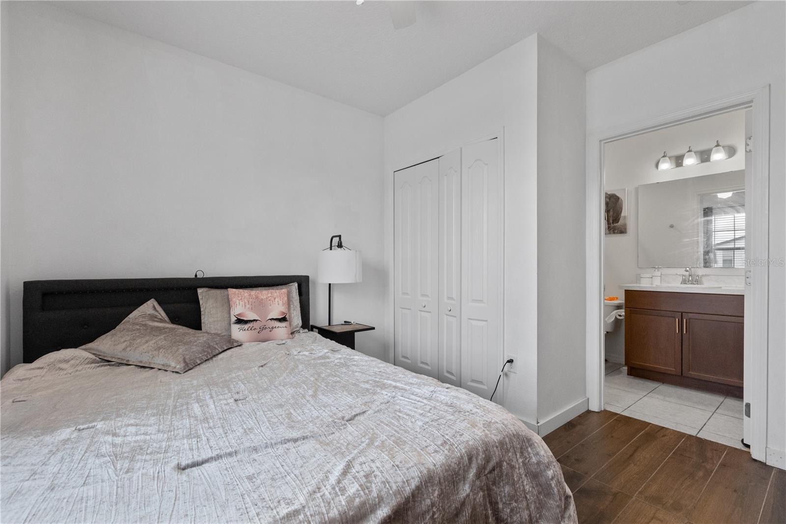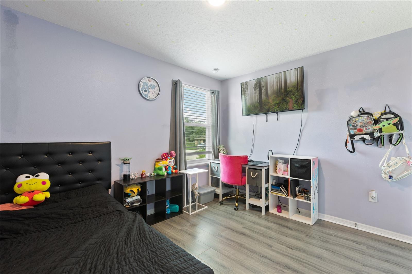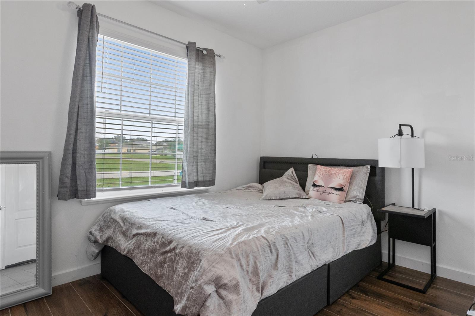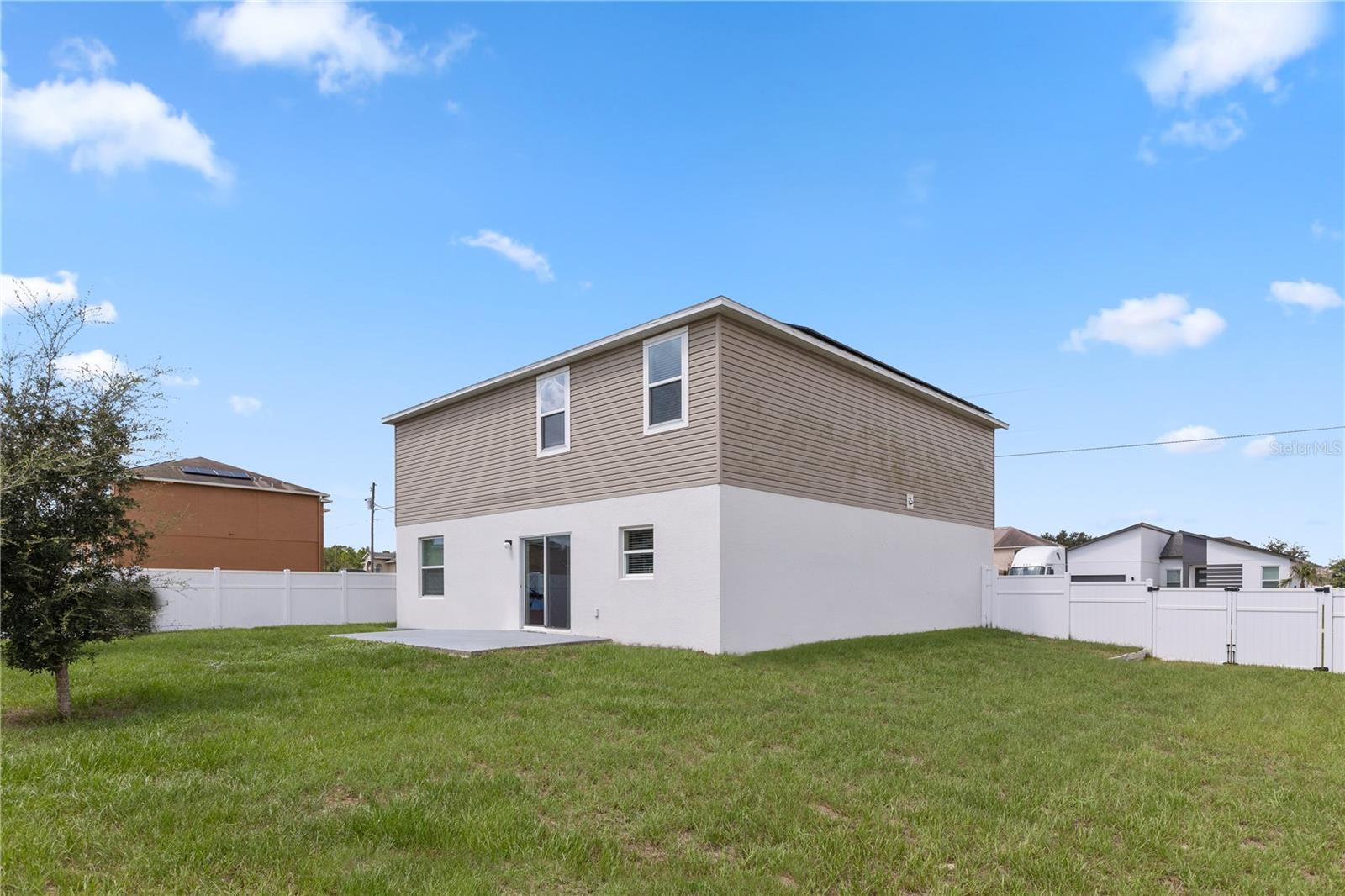 Built in 2020, this spacious 5 bedroom, 3 bath home is move-in ready! Beautiful kitchen with quartz countertops, stainless steel appliances, and plenty of cabinets make meal prep a dream. One bedroom and a full bath on first floor, plus a versatile partially-finished garage space that could be used as an office, workout space, or extra storage. Upstairs you will find a spacious master bedroom with a walk-in closet, full attached bathroom, with a double vanity. Three additional bedrooms, a full bathroom, and second-floor laundry make this convenient layout complete. Enjoy super-low electricity bills thanks to solar panels that will transfer to the new owner for only $193/mo. Located on the Kissimmee / Poinciana line in Polk. Co. Low HOA includes internet. Don't miss out!