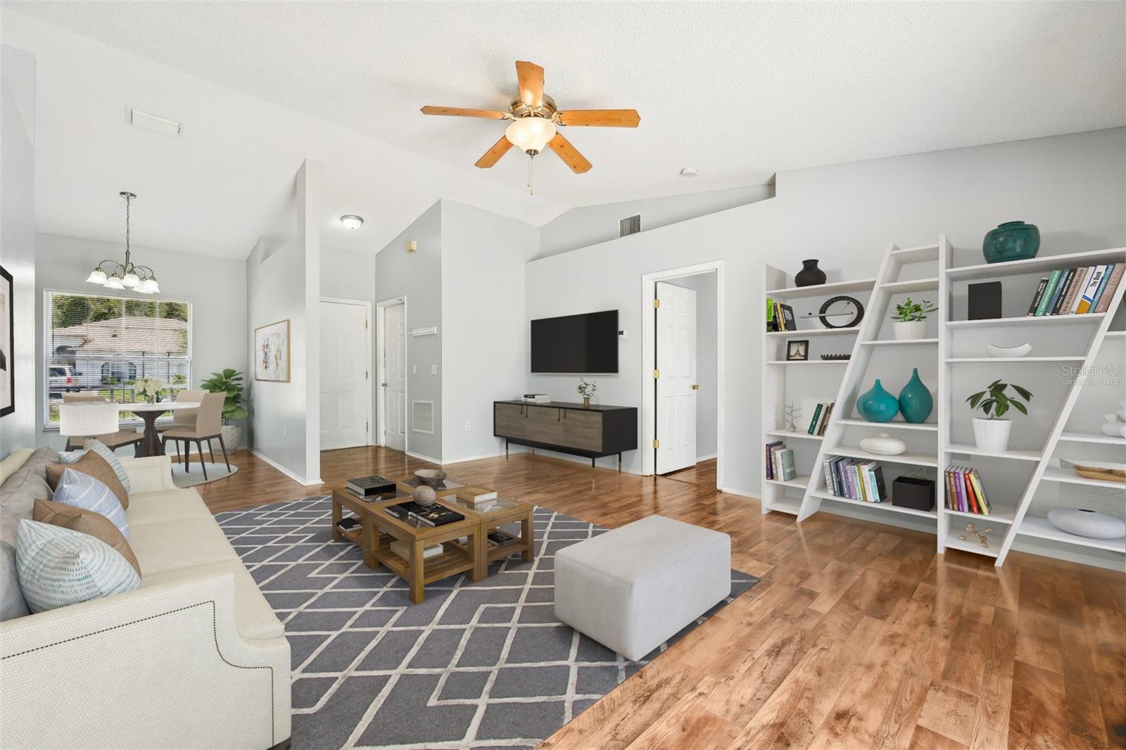 One or more photo(s) has been virtually staged. Seller may consider buyer concessions if made in an offer ~ In the market for your first home? An ideal MOVE-IN READY investment property? Look no further than Squirrel Court in the established Poinciana Villages community! This 3BD/2BA home delivers a BRAND NEW ROOF (2024), NEW CARRIER A/C & DUCTS (2023), NEW STAINLESS STEEL APPLIANCES, WOOD FLOORS THROUGHOUT and a desirable SPLIT BEDROOM FLOOR PLAN. The spacious .18 ACRE lot has mature landscaping recently refreshed (including a variety of FRUIT TREES!) and a charming covered front porch to welcome you home. The cheerful front door opens up to a generous living area featuring new window blinds and a modern EAT-IN KITCHEN with sliding glass door access to the patio and fenced backyard. The recent KITCHEN UPDATE includes; a new double door refrigerator, faucet, pantry door, and blinds. Just off the living area you will find your PRIMARY SUITE, another bright space complete with its own private bath (shower fixtures are new as well as the door!), WALK-IN CLOSET and new blinds, Bedrooms two and three are off a small hallway on the other side of the home, both also have new window blinds and there is a full guest bath between them. There is also a BRAND NEW SMART WASHER/DRYER and smart garage door opener installed in the garage! Poinciana Villages offers a LOW HOA with tons of amenities including cable and internet, community events, a recreation center, COMMUNITY POOL and fitness center. Just minutes to Charlie Wheeler Community Park, Poinciana Youth Soccer, Deerwood Park Soccer Fields, Poinciana Medical Center with easy access to US 17, Florida's Turnpike, I-4 and a short drive to the Orlando attractions and theme parks, Hunters Creek, Celebration, Champions Gate, shopping, dining and so much more! Easy to show, schedule your tour today!