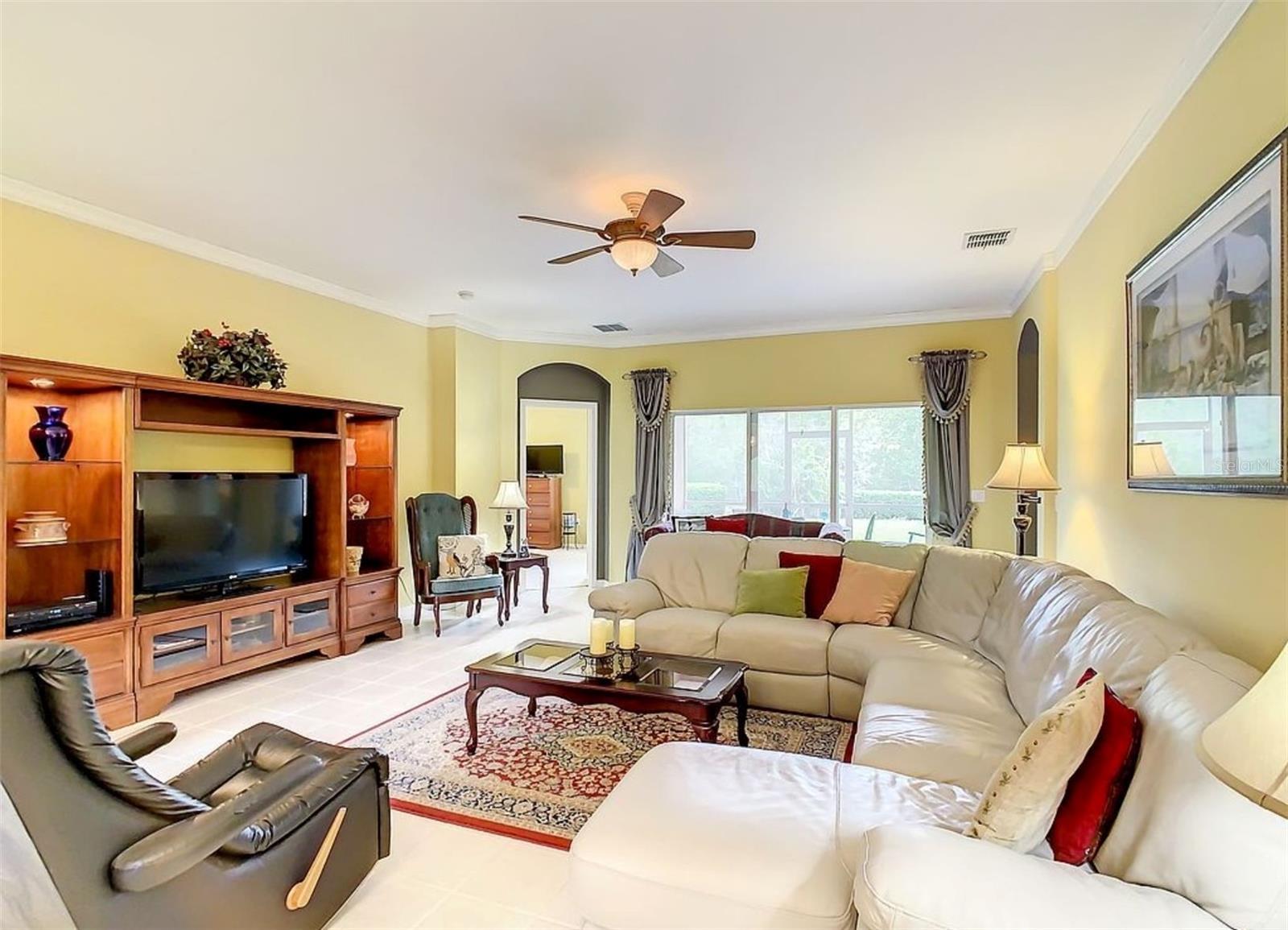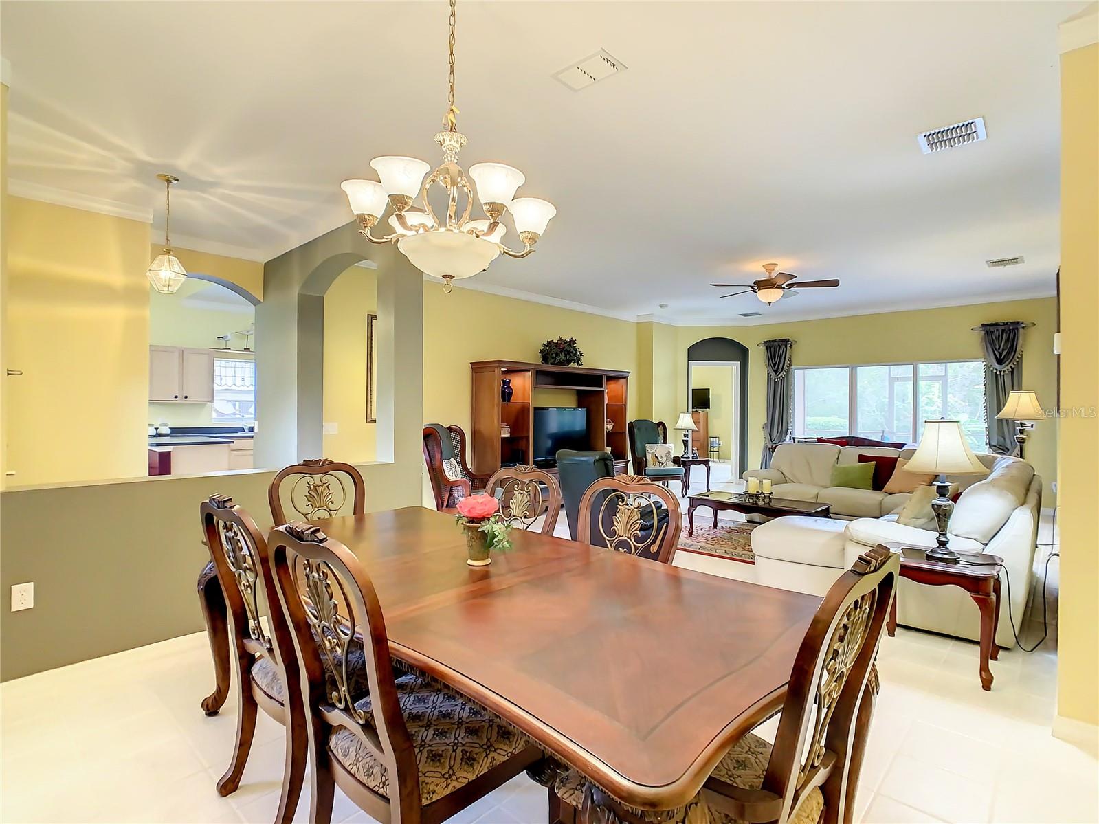 Come see this lovingly maintained Melody model with a charming bay window, situated on a peaceful conservation lot in the highly regarded 55+ community of Solivita. This 3-bedroom, 2-bath home offers 1,813 square feet of comfortable living space and the added bonus of no rear neighbors. The entry opens to a tiled foyer that leads into a spacious great room, dining area, and kitchen with a breakfast nook—all featuring ceramic tile flooring and crown molding. Sliding doors open to a screened and covered lanai with tile flooring, perfect for relaxing and enjoying tranquil, park-like views. The large primary suite easily fits a king-sized bed and includes dual walk-in closets and an en-suite bathroom with double vanities, a walk-in shower, and a private closet. A split floor plan offers added privacy, with the second bedroom featuring two closets and a nearby full bath. The third bedroom is conveniently located near the guest bath, making it ideal for visitors or a home office. Additional features include a separate laundry room with utility sink and storage, as well as a full two-car garage with pull-down attic stairs. Recent updates include a new roof installed in 2023, HVAC system replaced in 2018, and fresh exterior paint. Solivita is a premier gated and guarded active adult community located in the heart of Central Florida. This vibrant neighborhood is designed for resort-style living, featuring 14 temperature-controlled pools, two fully equipped wellness centers offering personal training, fitness classes, and modern gym facilities. Residents enjoy endless options for recreation with tennis and pickleball courts, two championship 18-hole golf courses, softball fields, bocce ball, horseshoe pits, and even a community garden and butterfly garden. Picturesque lakes, ponds, and natural conservation areas are woven throughout the community, creating a beautiful and serene environment for walking, biking, or simply taking in the views. Don’t miss your opportunity to enjoy all that this incredible home and community have to offer—schedule your private showing today.