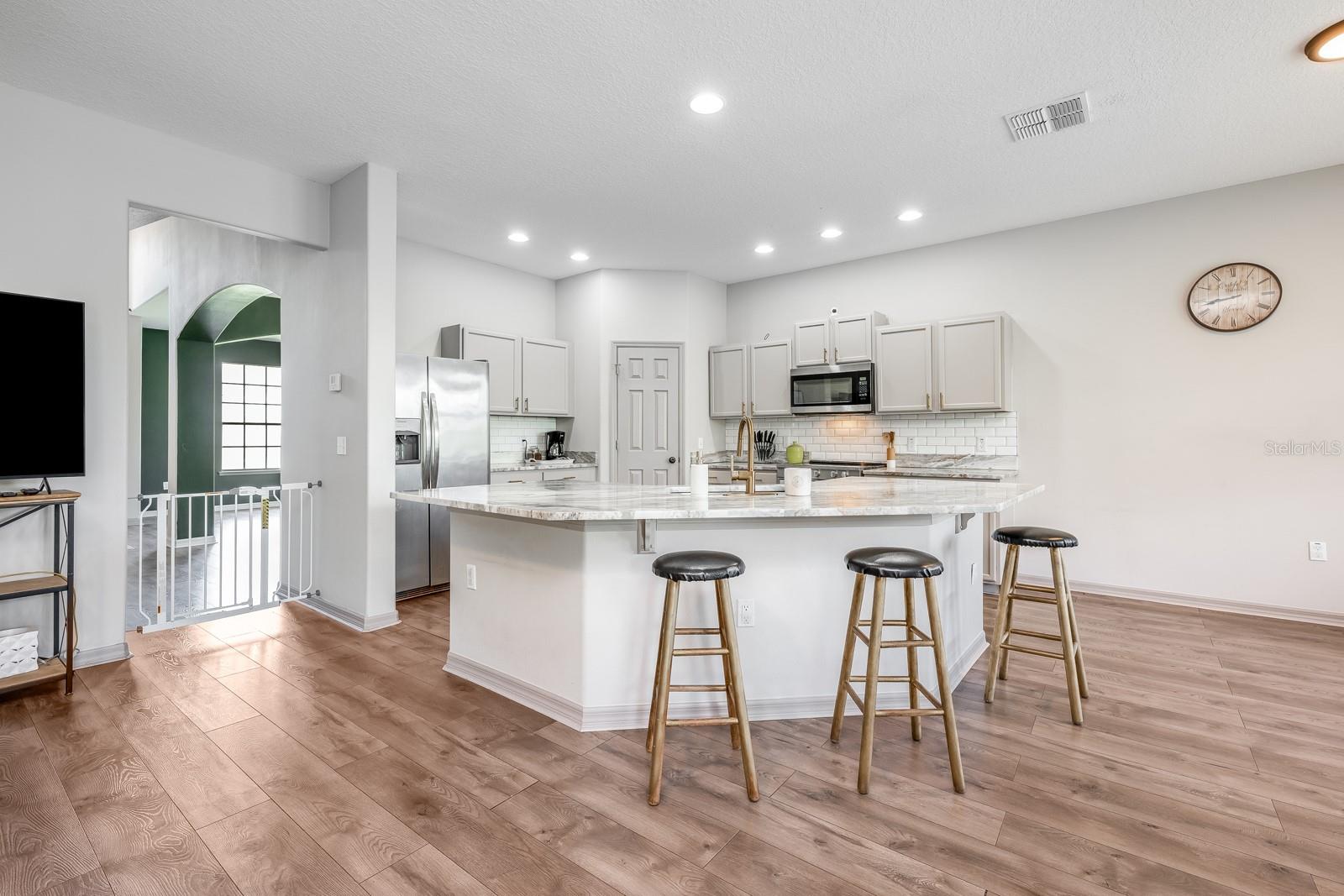 One or more photo(s) has been virtually staged. Seller may consider buyer concessions if made in an offer ~ This spacious, 4-bedroom, 3-full and 1-half bath home in the heart of Poinciana Villages offers room to grow—inside and out! With a BRAND NEW WATER HEATER (2025), SOLAR SYSTEM (2024, assumable), NEW UPSTAIRS A/C (2023), and NEW ROOF (2022), it’s ready for you to move in and make it your own – made for everyday living with long-term comfort in mind. The interior of the home delivers a flexible layout ideal for multi-generational living or families that need extra space. The OPEN CONCEPT kitchen and family room flow seamlessly out to a large SCREENED LANAI – perfect for casual gatherings with friends or quiet evenings with family. Upstairs, a rare OPEN AIR DECK looks out over the expansive .27 ACRE LOT, providing a peaceful view and even more usable space. Every inch of the interior has been thoughtfully designed and recently refreshed, from the 2023 VINYL PLANK WOOD FLOORING throughout the main living areas to the plush carpet in the bedrooms. The staircase is new in 2024, the formal dining and living room freshly painted, and both the kitchen and bathrooms have been updated with a clean, modern feel. Large windows bring in plenty of NATURAL LIGHT, and MULTIPLE LIVING & FLEX SPACES – including formal, casual, and two oversized bonus rooms—make it easy to tailor the home to your lifestyle. Ideally situated in a growing area, this home feels peaceful and private while still being part of an established, friendly community. Poinciana Villages offers residents a LOW HOA and a wide range of AMENITIES; including cable and internet, community events, a recreation center, community pool, and fitness center. Conveniently close to parks, sports fields, medical facilities, and major roadways like US 17, I-4, and Florida’s Turnpike. You are also just a short drive to major destinations like Orlando’s theme parks, area attractions, Celebration, Champions Gate, Hunter’s Creek and more! Updated where it counts, with space and flexibility to match – this home is a smart choice for anyone looking to spread out and settle in. Call today to schedule a tour!