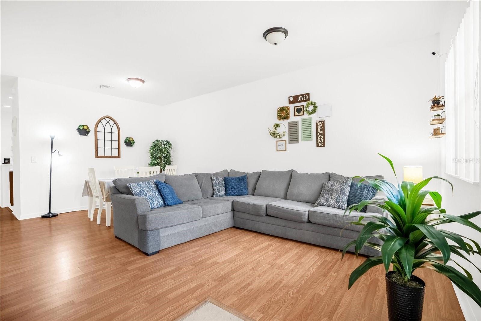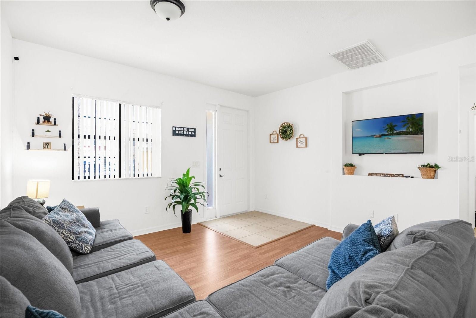 SHORT TERM RENTAL AND AIRBNB ALLOWED. SELLER RELOCATING OUT OT STATE, BRING ALL OFFERS. Welcome home! This charming two-story townhome with a one-car garage is move-in ready and waiting for its next owner. Upon pulling up you're greeted by the beautifully paved driveway offers plenty of parking, making it perfect for family and guests. Step inside to find inviting laminate flooring that sets a bright and modern tone. The kitchen features stainless steel appliances, floating shelves for style and functionality, and serves as the perfect blank canvas to add your personal touch. Upstairs, you’ll find three comfortable bedrooms. The spacious primary suite includes an en suite bathroom with dual sinks, a relaxing garden tub, and a separate shower—an ideal retreat at the end of the day. Enjoy the Florida lifestyle outdoors with a screened-in, pavered lanai—perfect for morning coffee or evening gatherings. Located in a gated community, you’ll have access to exceptional amenities including a resort-style pool, fitness center, clubhouse, basketball and tennis courts. The HOA makes life even easier by covering lawn maintenance, cable, and internet, so you can spend more time enjoying your home. Schedule your showing today.