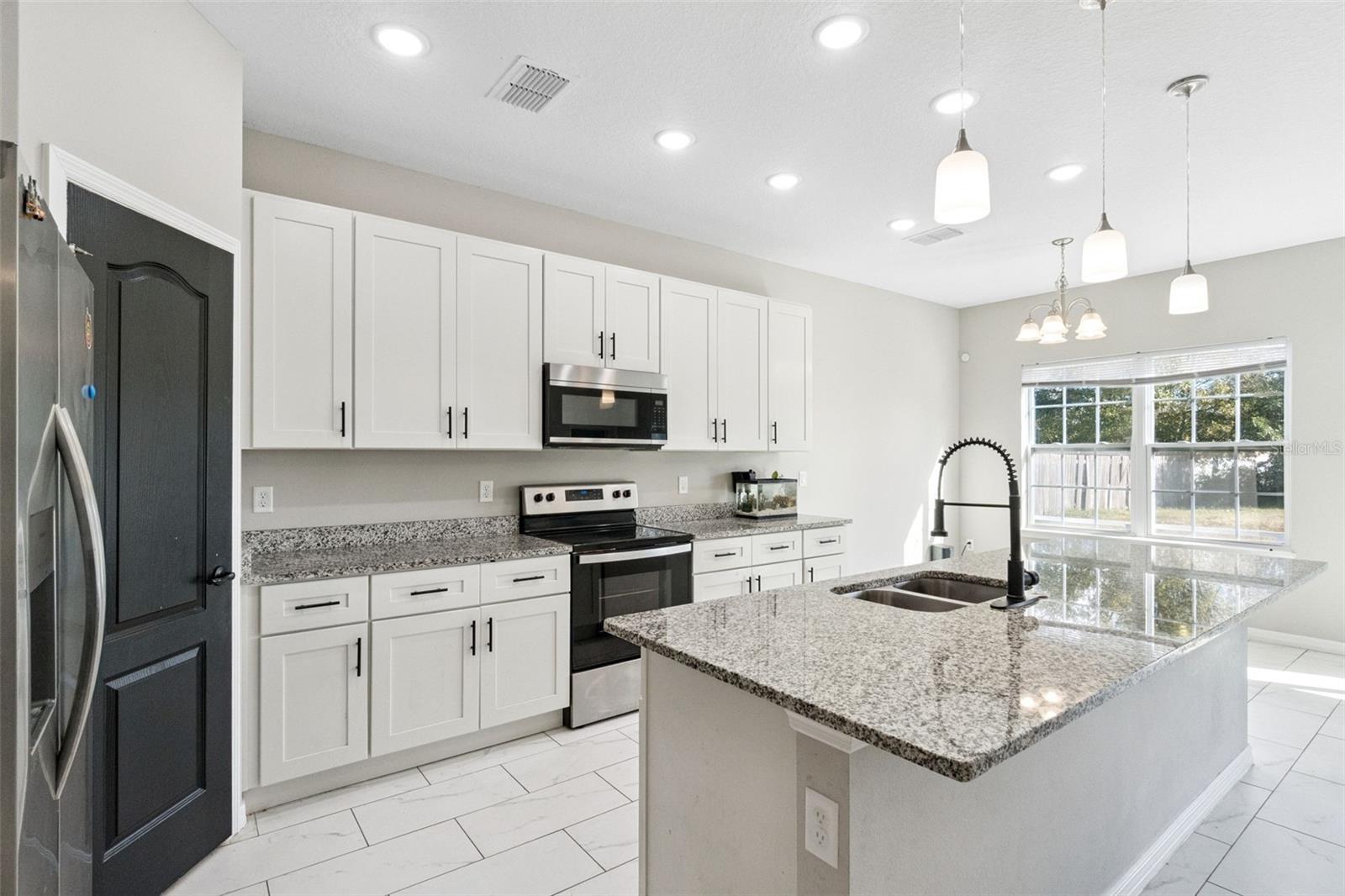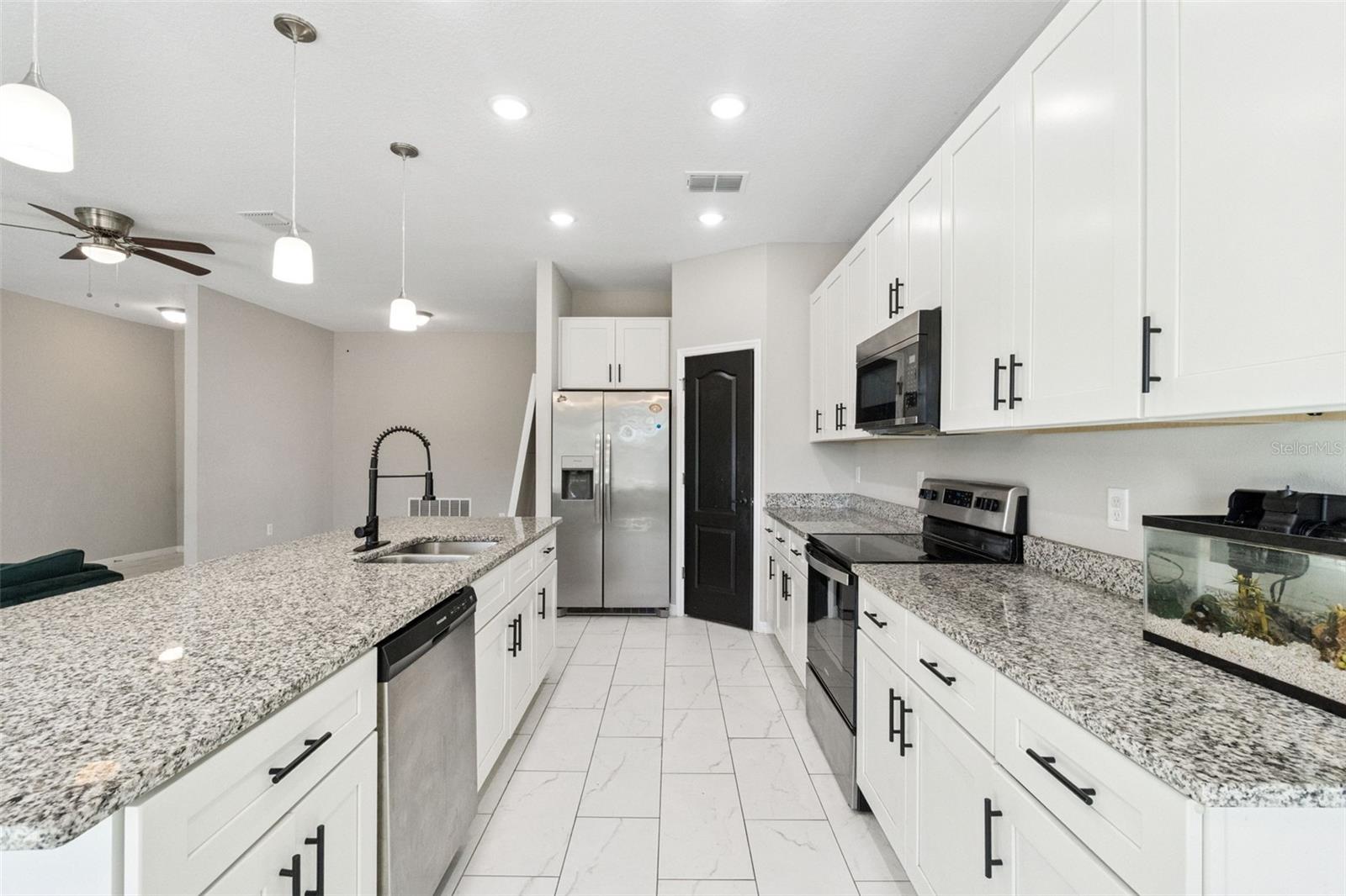 Short Sale. Welcome to 611 Gazelle Drive in Poinciana — a beautifully maintained 4-bedroom, 2-bathroom home with a spacious open-concept layout designed for comfortable everyday living and easy entertaining. As you step inside, you’ll immediately appreciate the bright and airy feel created by the seamless flow between the kitchen, dining area, and living room. The galley-style kitchen offers stainless steel appliances, granite countertops, ample cabinetry, and an eat-in dining space, making it both functional and inviting. The living room features sliding glass doors that open to the backyard, filling the home with natural light and creating a perfect indoor-outdoor connection. Tile flooring runs throughout the entire home, including floor-to-ceiling tile in the bathrooms, giving the home a clean, cohesive look. The primary bathroom features a beautifully tiled walk-in shower with a glass enclosure. Ceiling fans in all bedrooms and the living area add to the comfort, while a separate laundry room with a window provides extra convenience. Outside, you’ll find a large backyard with a pavered patio—perfect for relaxing, entertaining, or creating your own outdoor oasis. The driveway features brick pavers with a semicircle extension for additional parking, and the home’s front entry is accented with decorative stonework that adds great curb appeal. This home offers a wonderful combination of style, space, and functionality—ready for its next owner to move in and make it their own. Schedule your private showing today!