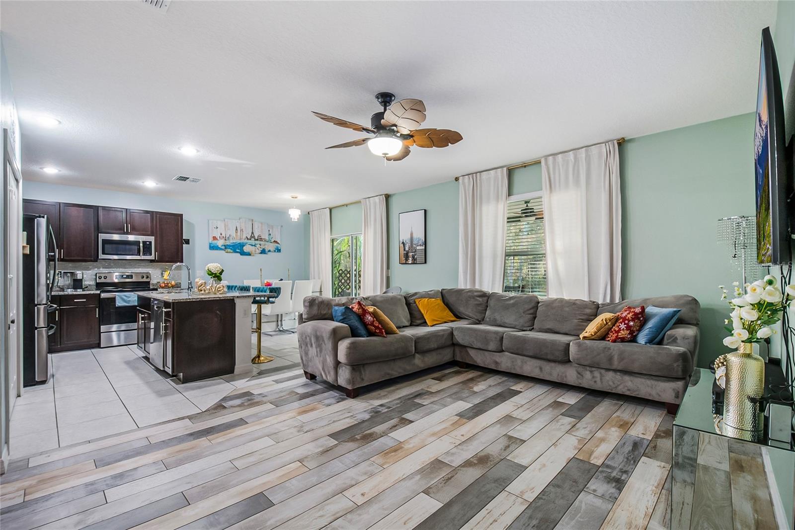 Short Sale. This beautiful 2020 home is located in the desirable Poinciana Villages Community and features 3 bedrooms, 2 bathrooms, and a bright open-concept floor plan. The home shows like new and offers tile flooring throughout the main living areas, a screened rear porch, and a paver patio with a fire pit, ideal for relaxing or entertaining. The property is move-in ready and well-suited for a new owner to enjoy. Residents of Poinciana Villages enjoy an extensive lineup of amenities, including a community pool, gym, aquatic center, multiple parks, basketball courts, baseball and soccer fields, and more. The sale is subject to lender approval. Schedule your private showing today.