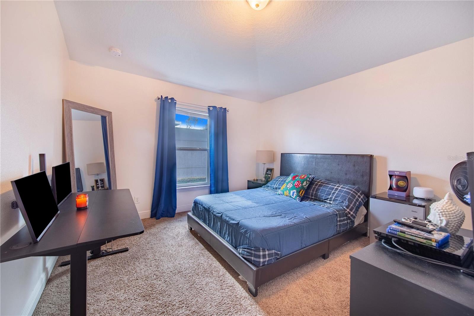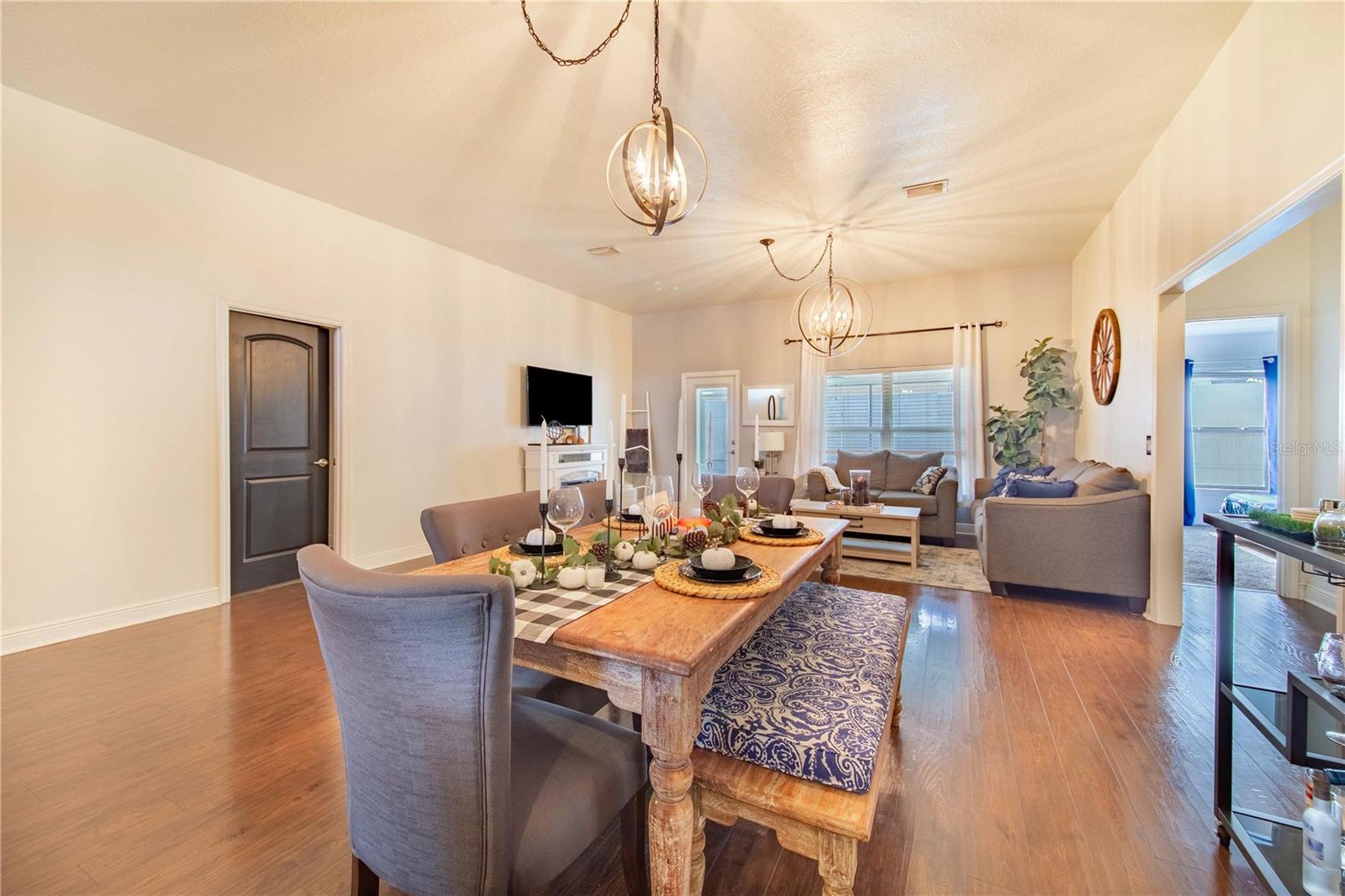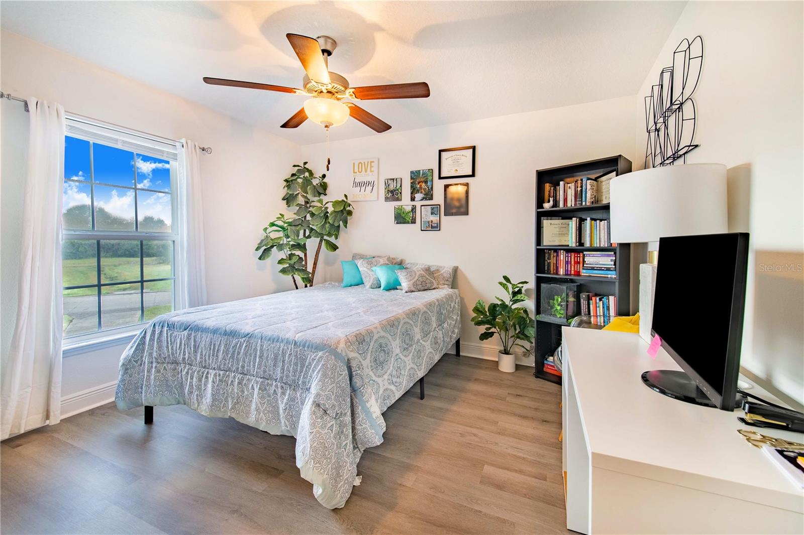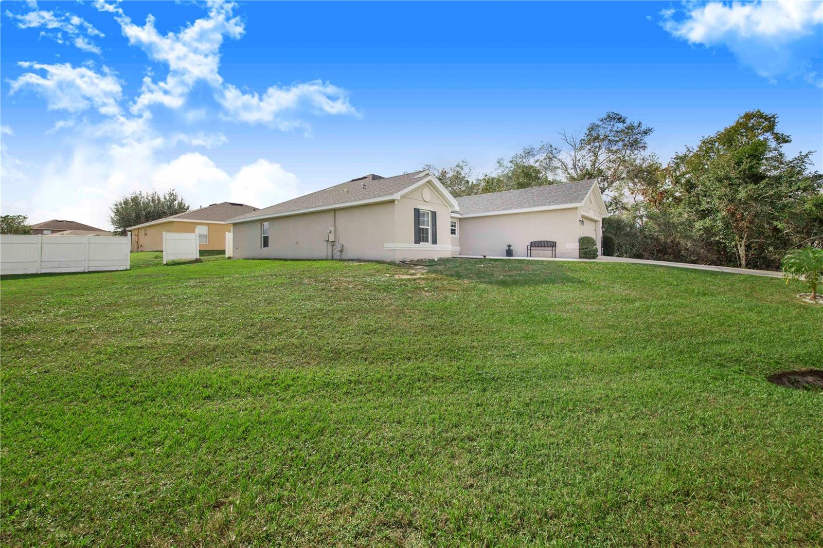 Welcome to this 4 bedroom 2 bath , beautiful home, where spacious living meets thoughtful design. Upon entry, you’re greeted by a large, tiled foyer that flows seamlessly into an open floor plan. The living room boasts rich wood flooring, offering a cozy and inviting ambiance, while the kitchen features tile flooring, an island, a closet pantry, and ample cabinetry for all your storage needs. French doors from the living room open to a screened lanai and back porch, ideal for enjoying peaceful moments or hosting gathering. The expansive master bedroom includes wood laminate flooring, a generous walk-in closet, and an en-suite bathroom with dual sinks, a relaxing garden tub, and a walk-in shower. A private water closet adds extra convenience. The spacious laundry room and well-sized third bedroom, featuring carpet and a walk-in closet, lead to the fourth bedroom with laminate wood flooring. A second bathroom offers a shower and tub combination with elegant tile flooring, adding to the home’s appeal. The immaculate garage provides not only ample storage but also doubles as an entertaining space. Set on a large corner lot in a peaceful neighborhood, this home truly combines beauty, functionality, and serenity.