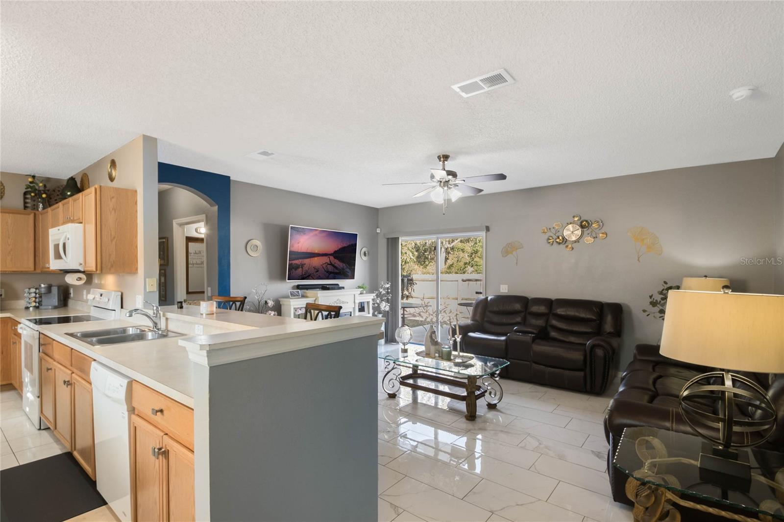 THE HOME YOU’VE BEEN WAITING FOR— This lovely home has wonderful updates and offers the desirable features of an open floor plan with split bedrooms and a privacy fenced backyard. Beautiful tile flooring highlights the great room and eat-in kitchen with a lengthy breakfast bar perfectly positioned to service all areas of this open concept design. The private master suite offers a walk-in closet and a spacious bathroom with attractive tile work, walk-in shower and a dual sink vanity. The additional two bedrooms and a beautifully updated bathroom are situated on the opposite side of the home. All of the bedrooms have ceiling fans and carpet flooring. Indoor laundry room with shelf storage, and a 2-car garage are additional features that give this home a reason to be considered. You will love living here with access to schools, shopping, neighborhood parks, and recreation. Make plans to visit soon!