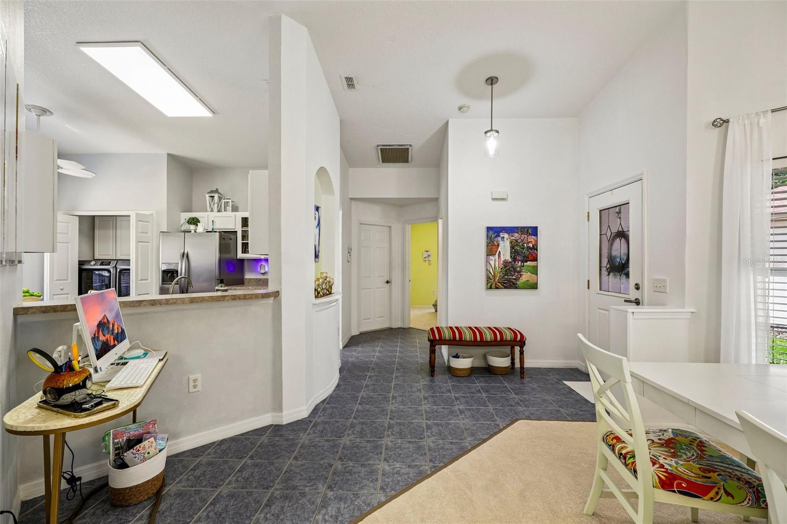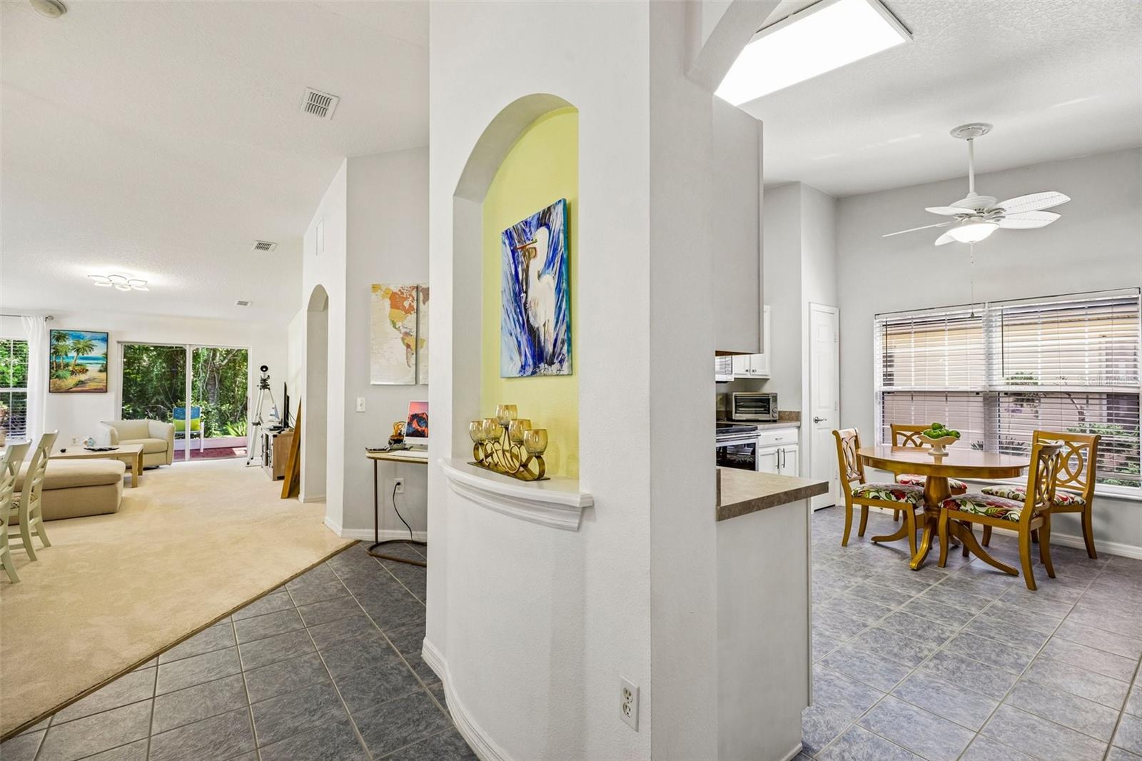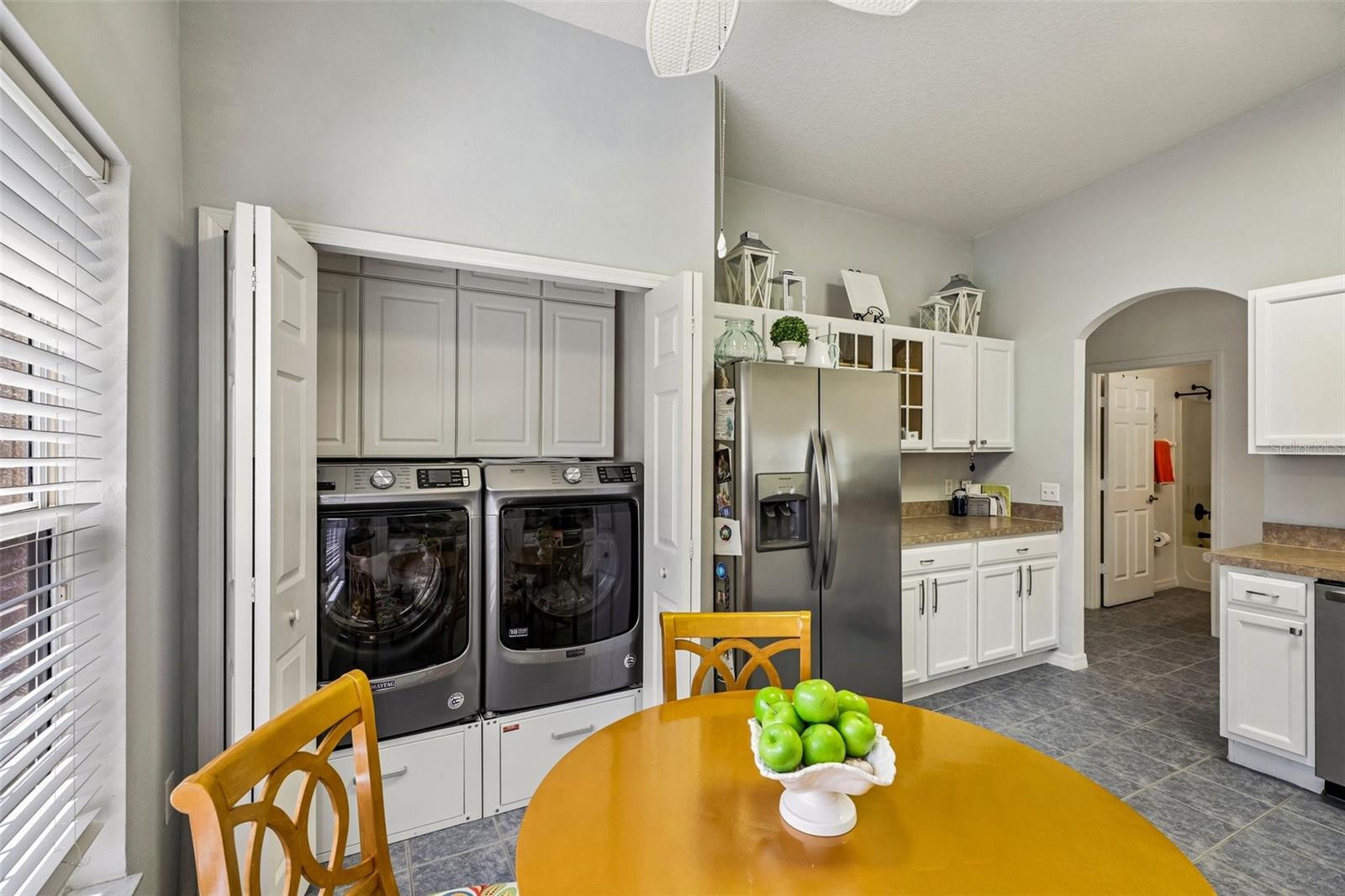 Welcome home to effortless living. This charming 2-bedroom, 2-bathroom Spanish-style residence offers 1,240 sq ft of thoughtfully designed living space in the heart of Solivita's 55+ gated golf community. Move-in ready and recently updated, this home features a modern paint refresh, new lighting throughout, updated faucets, and new door hardware. The open-concept layout centers around a generous GREAT ROOM with a split floor plan—perfect for both daily living and entertaining. The heart of the home showcases a spacious, upgraded kitchen with stainless-steel appliances, solid bright wood cabinetry with convenient pull-out drawers, and a welcoming breakfast bar. The Owner's Suite is a true retreat, complete with a walk-in closet, linen closet, and a spa-like En-Suite Master Bathroom featuring an upgraded walk-in shower with a new glass door, premium faucets, and new fixtures. Enjoy a covered 10' × 10' screened lanai with pavers, plus two additional paver sitting areas—all framed by mature conservation trees. An extended paver walkway invites you to relax and unwind. Window tinting keeps the home cool and comfortable. Practical touches include a washer/dryer inside the home and a one-car garage with dedicated golf cart space. This cul-de-sac home offers minimal traffic and conservation views, while providing access to two PGA Championship golf courses, 14 pools, fine dining, state-of-the-art amenity centers, tennis and pickleball courts, and 200+ clubs. Located just 25 minutes from major attractions and the new SunRail Poinciana Station. Schedule your private showing today.