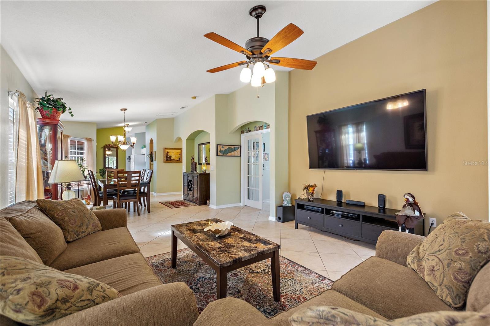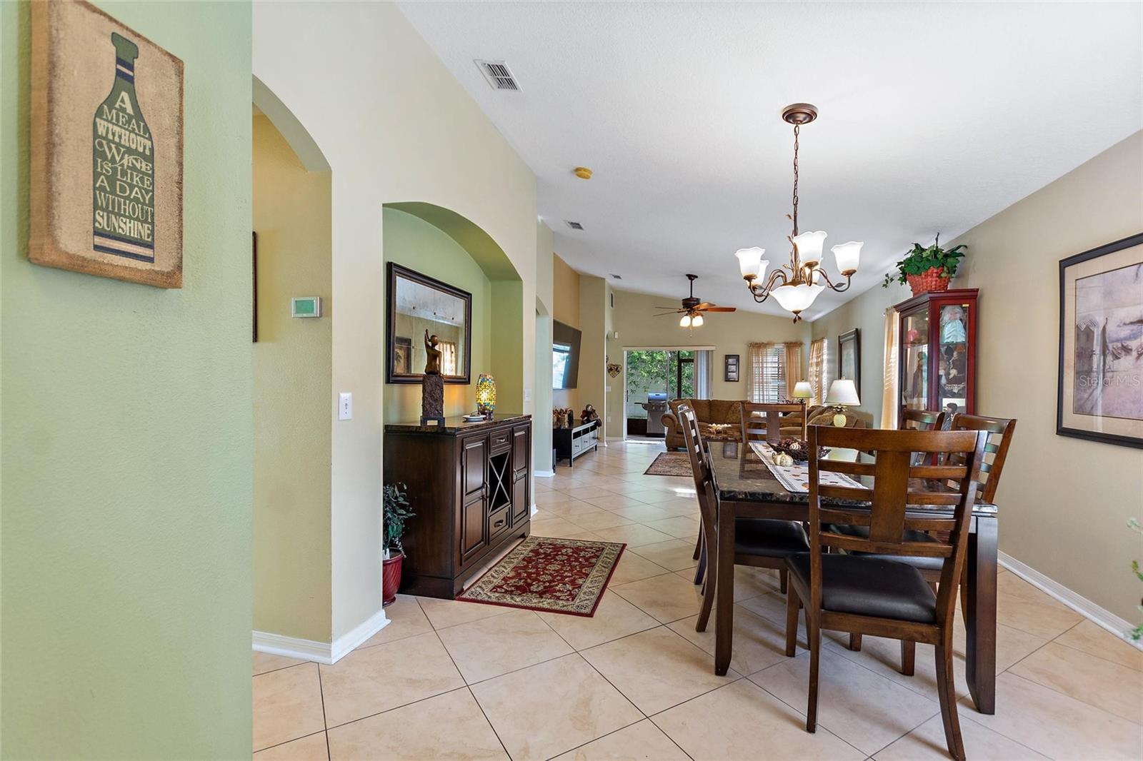 BRAND NEW ROOF and Lower Price!! Welcome to your new 2B/2B + Den Solivita home! This Bordeaux model has a well laid out roomy floor plan that just feels like home. The split floor plan features a dining room and living room with a vaulted ceiling. This home includes Tile on Diagonal throughout the majority of the home - NO CARPET! The owner's suite features dual walk-in closets and a recently remodeled bathroom featuring granite counters, dual sinks with brushed nickel finishes and modern brushed nickel lighting fixtures. The shower is truly walk-in with no shower door, allowing easy access. The Den with elegant Glass French Doors is a perfect place for a hobby room, media room or office. The bright Upgraded Kitchen features Granite Countertops and a Tile Backsplash, complemented by light cabinets with matching appliances. The welcoming breakfast nook is an ideal place to welcome the new day with a cup of your favorite morning beverage. The HVAC was REPLACED in April 2023. ROOF was REPLACED in January 2025. Make the award winning community of Solivita your new home today. Featuring 14 Pools, 2 Championship 18 Hole Golf Courses, Tennis, Pickleball, basketball, softball, over 200 clubs, walking trails, spa services, plus two state of the art exercise facilities with 4,200 acres of wetland and conservation. Both 18 Hole courses are challenging, highly rated PGA courses. The Cypress 18 Hole Course was awarded by Golf Digest as one of "Best Places to Play". Take your golf cart for a spin downtown to dine and/or share a cocktail with friends or to enjoy the many, many activities within the Solivita community. Based on this homes features and upgrades it is a great value and can be your new Solivita home! Don't delay and schedule your showing today!