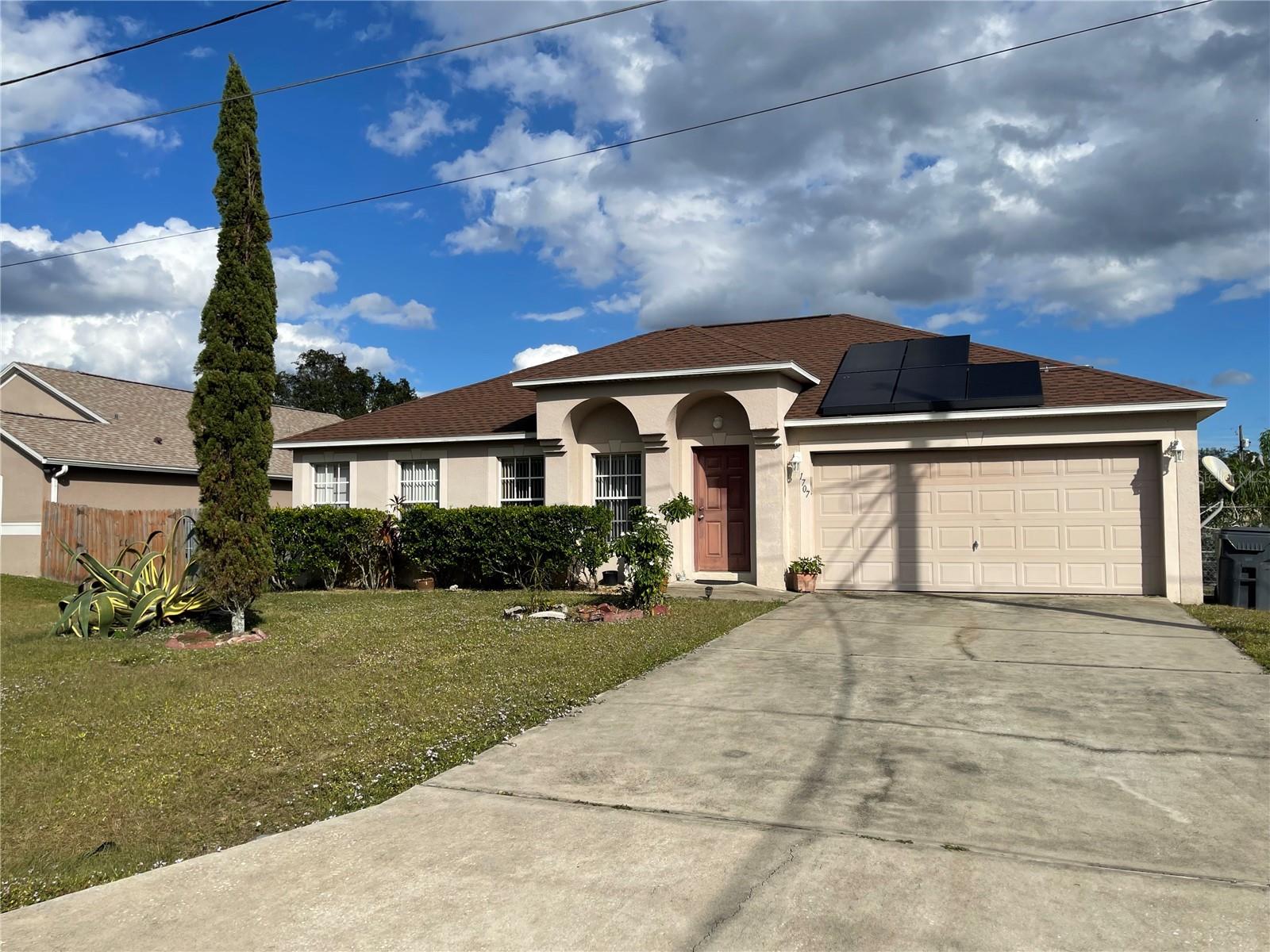 Seller may consider buyer concessions if made in an offer. "Seller motivated!!! Low HOA which includes basic cable and internet service. In addition, for free or with a low daily, weekly, or annual rate, you can enjoy of additional amenities, such as pools, parks, gymnasium, and playgrounds. This is a 4 bedroom although public record states 3 bedrooms. The roof was replaced around 2017 and the a/c around 2021. Solar panels are installed on the roof. This is a split-plan home and has vaulted ceilings. The master bathroom has an enclosed toilet and a separate garden tub from the shower. The master bedroom includes his and hers walk-in closets. The dinette room has two sliding doors opening up onto a good size of mature trees in the backyard: avocado, guava, and sour oranges. Backyard neighbors in the back are at a considerable distance. Irrigation system and pump installed in the backyard and water softener as well.