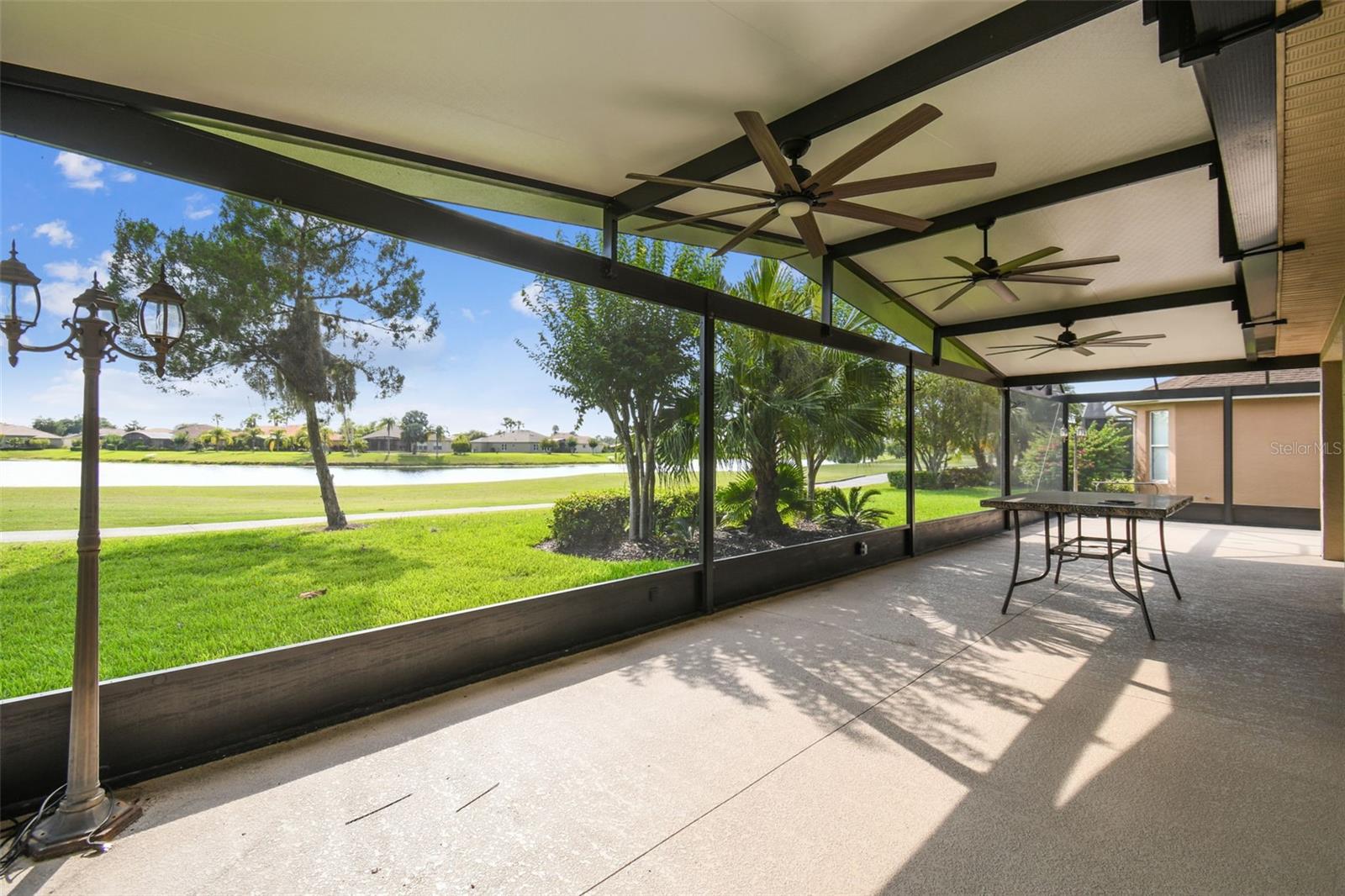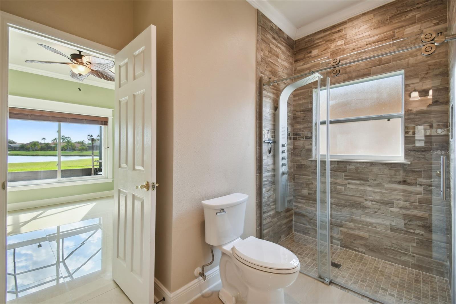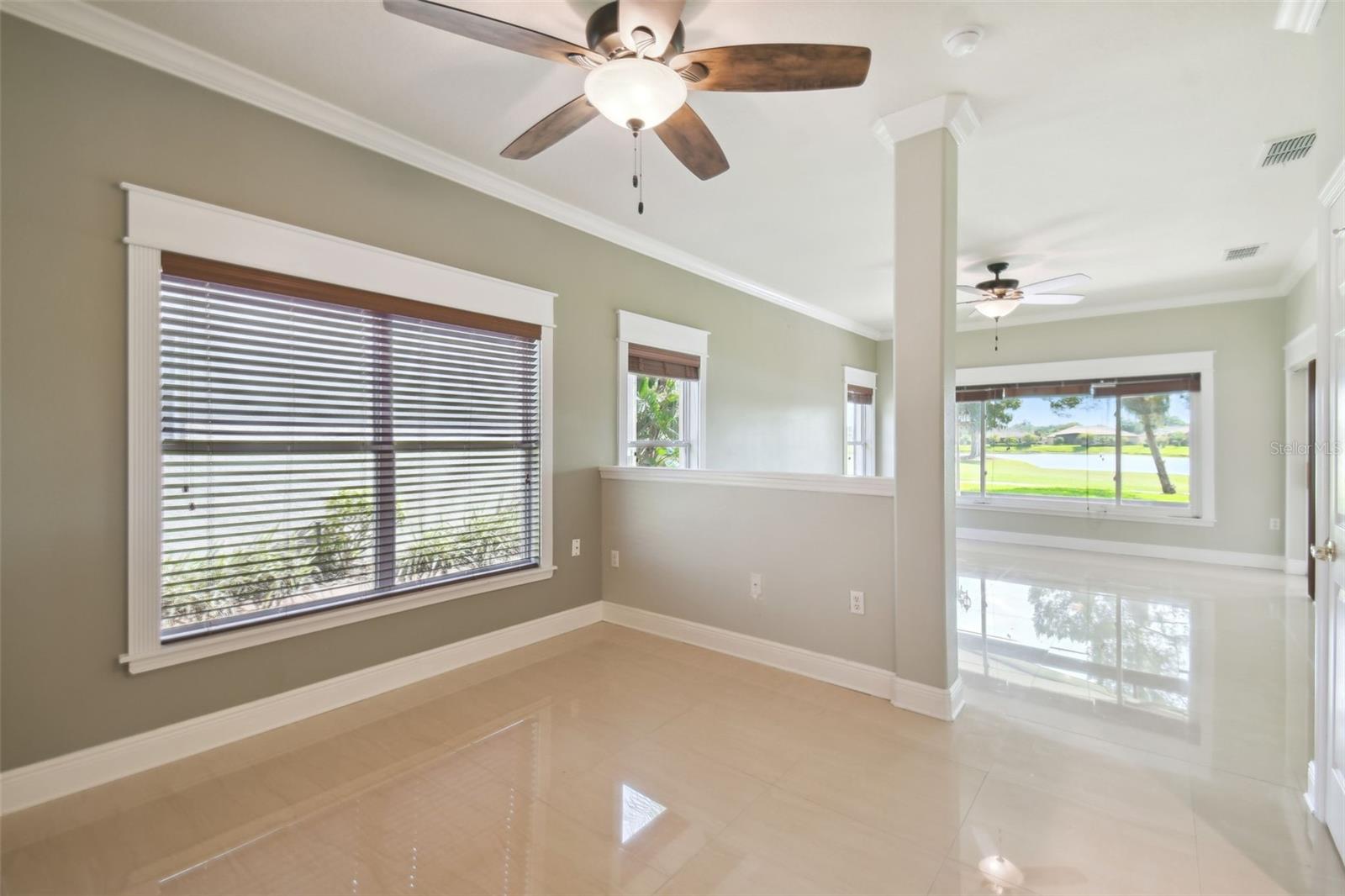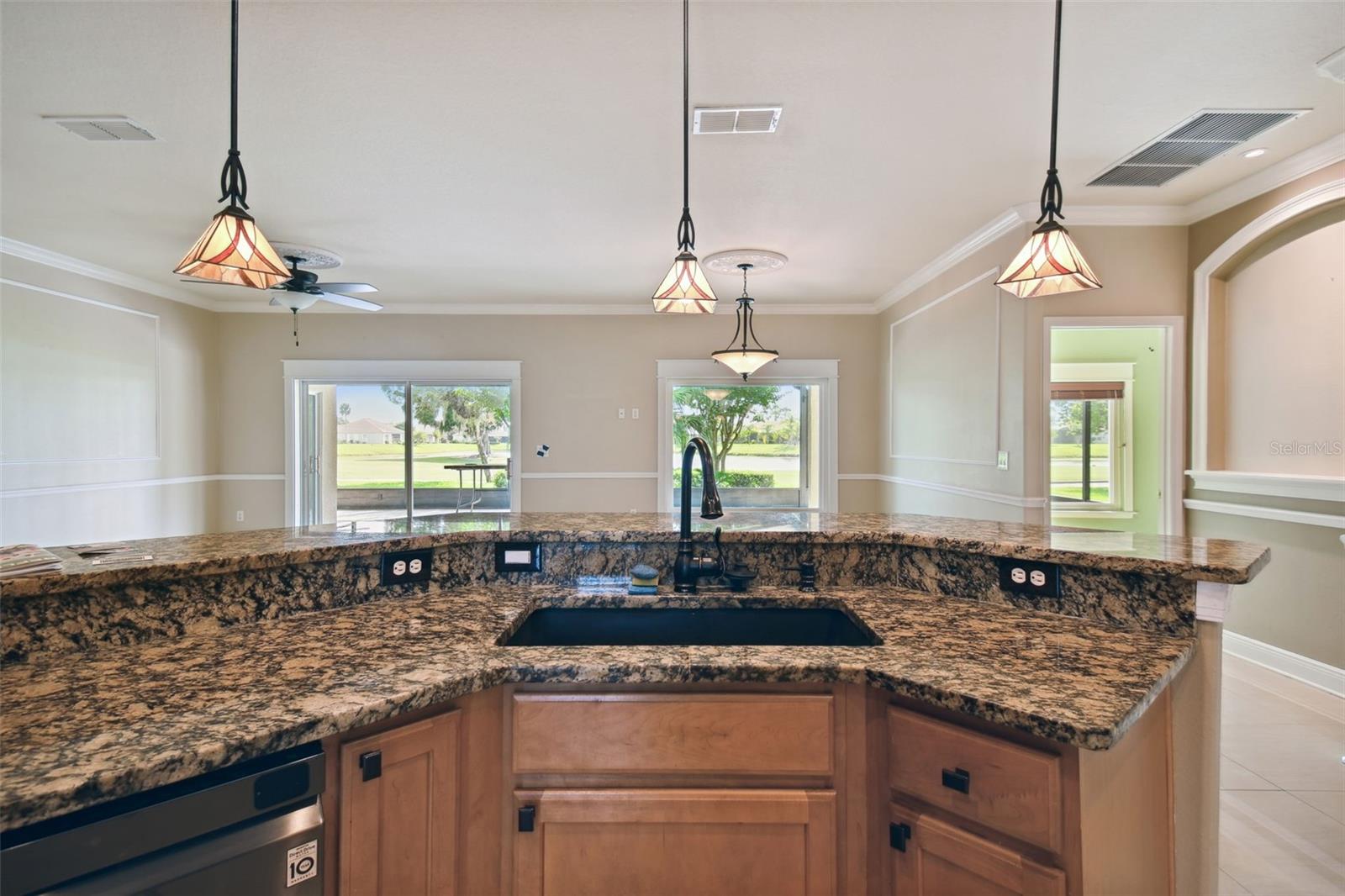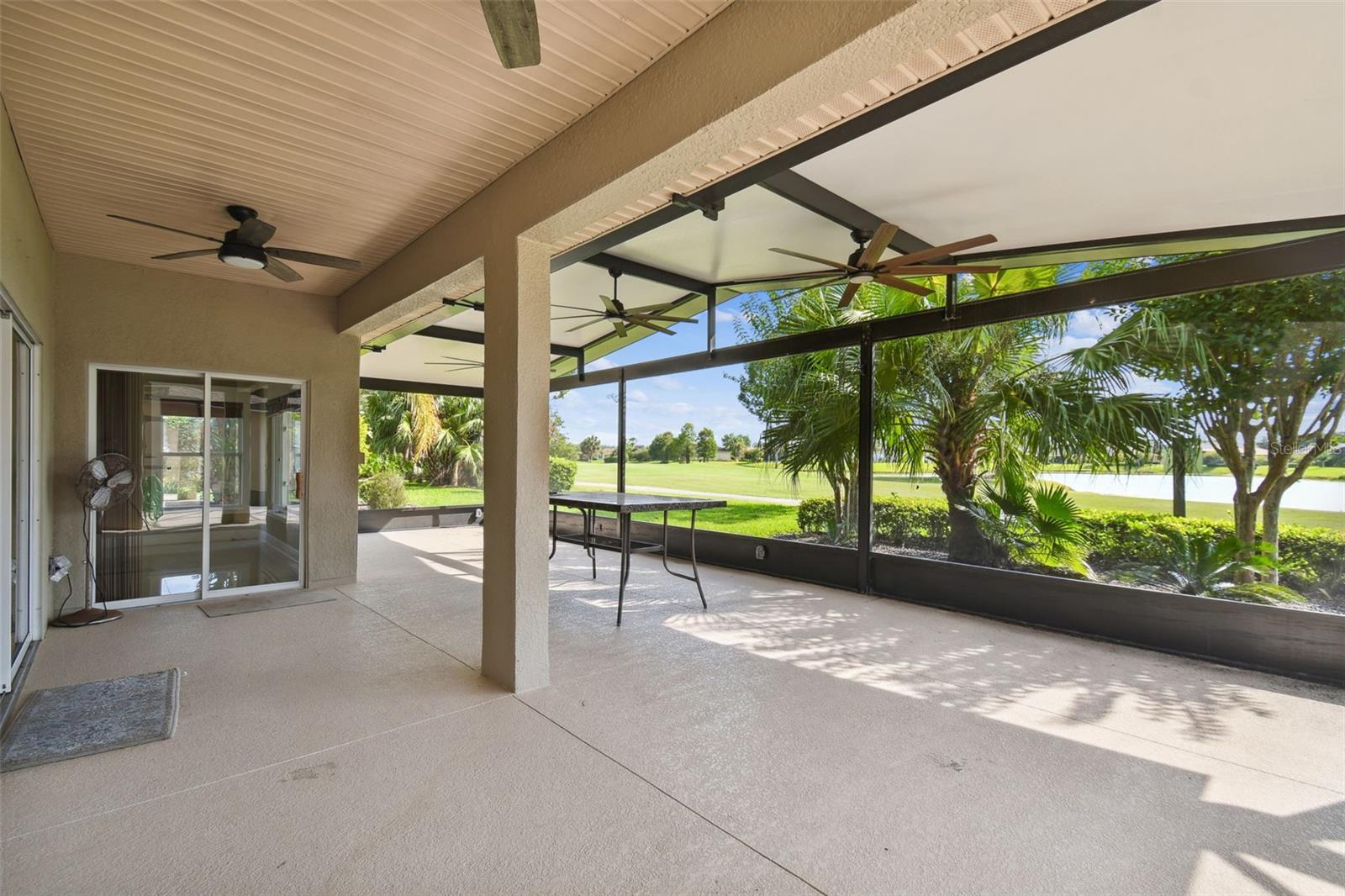 Check out this beautiful and well maintained Savoy model. This home is loaded with upgrades. Starting in the Kitchen you have 42" wood cabinets with pull out drawers in bottom cabinets. Granite counter tops with glass backsplash. Stainless steel appliances upgraded in 2019. New frosted glass pantry and laundry doors. New garbage disposal. Laundry room is off the Kitchen with washer / dryer and upper cabinets for convenience. Chair rails in living area. New 5 1/4" baseboards, Crown Molding and rounded corners throughout this home. New large moldings around the newly installed windows (2020), Picture window in Dining room and picture / sliders in Master bedroom and 2nd bedroom. The Master bathroom, Jack and Jill bathroom and the 1/2 bathroom have all been beautifully and thoughtfully remodeled. 24x24 Porcelain tile in every room. All newer installed ceiling fans and light fixtures. Pelican water softener installed in 2020. Water heater replaced in 2022. Take stunning photographs or just lounge on the expansive Lanai (added in 2018) that overlooks the gorgeous Golf course and Pond. A/C replaced in 2020. Roof replaced in 2017. Solar Panels installed in 2020 (will be paid off in full at closing). Electric bill is $33.87 each month.....Seller is motivated.....Call to view this incredible Home that could be yours in 2024.