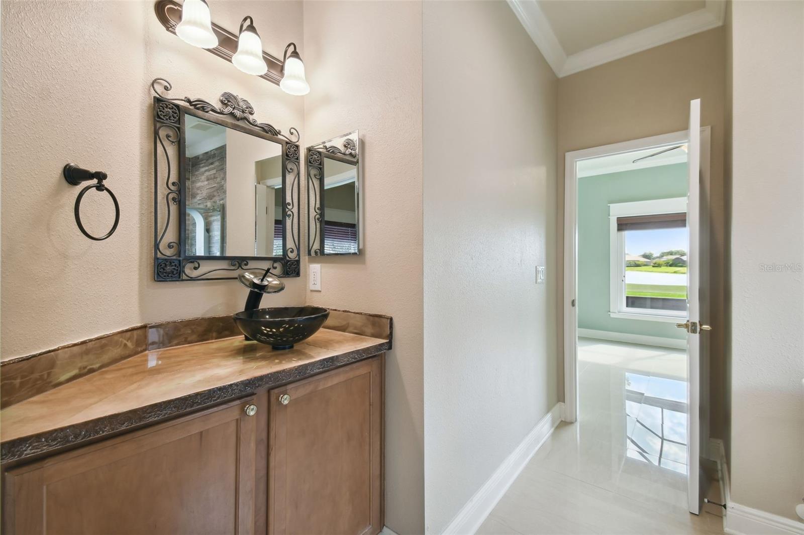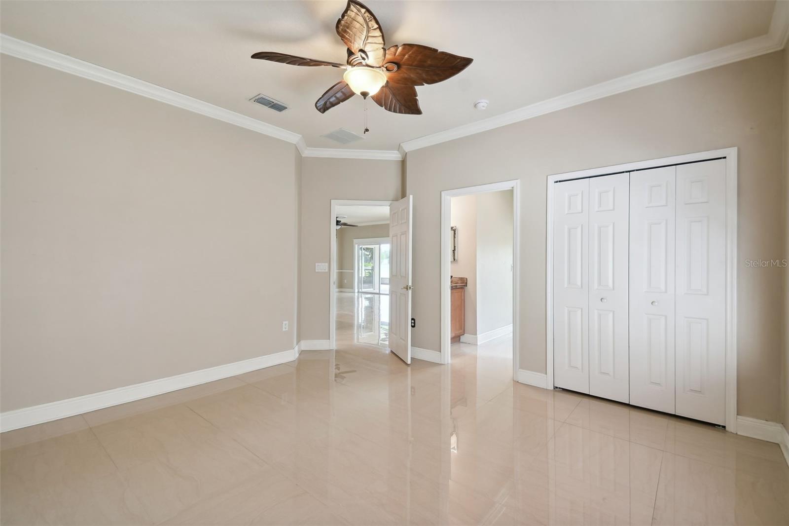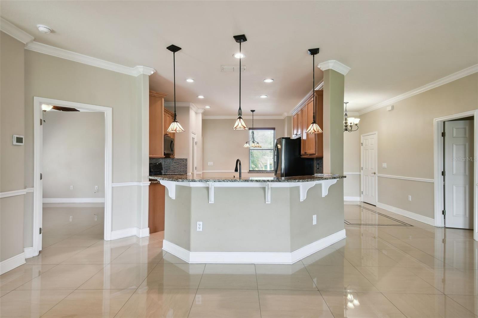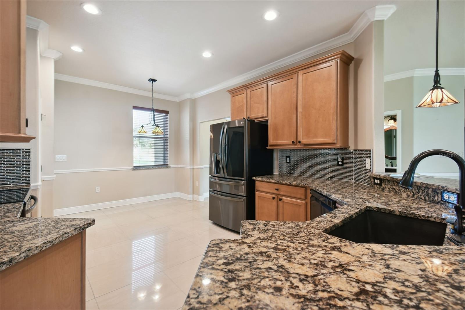 Check out this beautiful and well maintained Savoy model. This home is loaded with upgrades. Starting in the Kitchen you have 42" wood cabinets with pull out drawers in bottom cabinets. Granite counter tops with glass backsplash. Stainless steel appliances upgraded in 2019. New frosted glass pantry and laundry doors. New garbage disposal. Laundry room is off the Kitchen with washer / dryer and upper cabinets for convenience. Chair rails in living area. New 5 1/4" baseboards, Crown Molding and rounded corners throughout this home. New large moldings around the newly installed windows (2020), Picture window in Dining room and picture / sliders in Master bedroom and 2nd bedroom. The Master bathroom, Jack and Jill bathroom and the 1/2 bathroom have all been beautifully and thoughtfully remodeled. 24x24 Porcelain tile in every room. All newer installed ceiling fans and light fixtures. Pelican water softener installed in 2020. Water heater replaced in 2022. Take stunning photographs or just lounge on the expansive Lanai (added in 2018) that overlooks the gorgeous Golf course and Pond. A/C replaced in 2020. Roof replaced in 2017. Solar Panels installed in 2020 (will be paid off in full at closing). Electric bill is $33.87 each month.....Seller is motivated.....Call to view this incredible Home that could be yours in 2024.