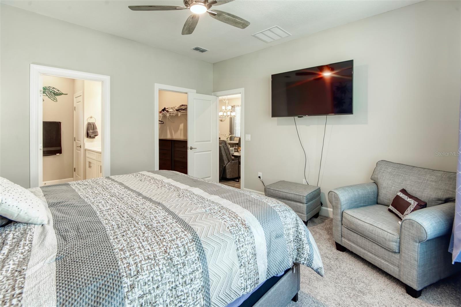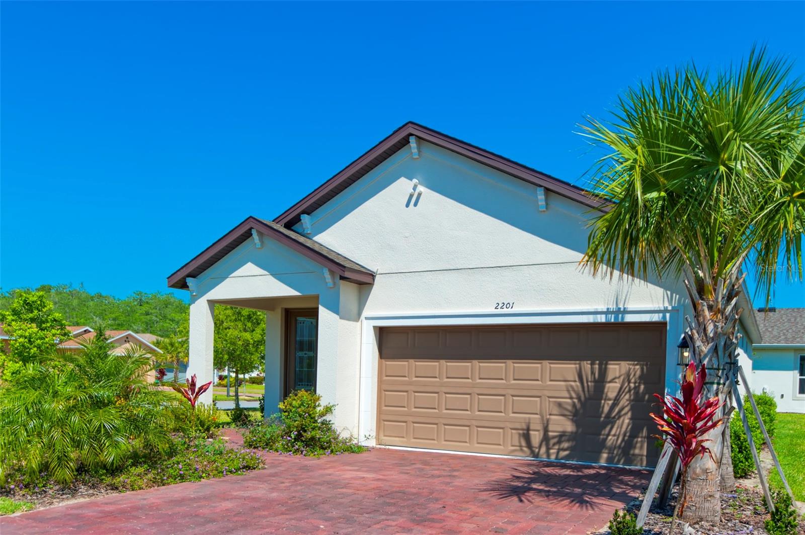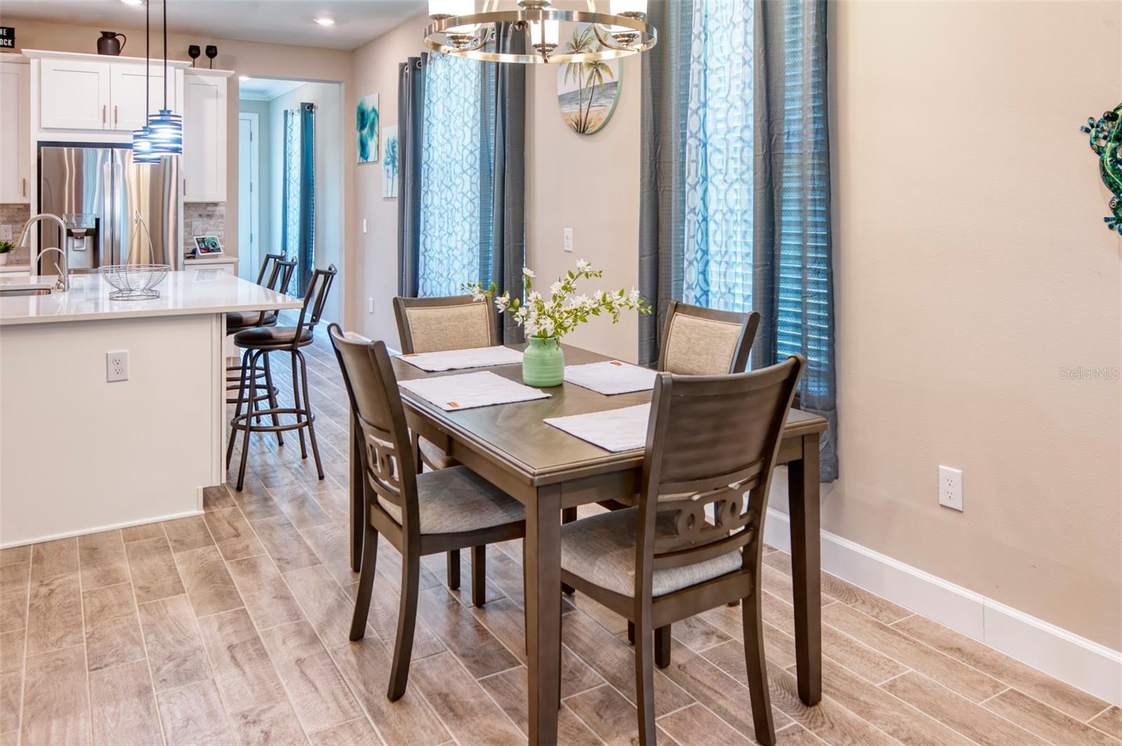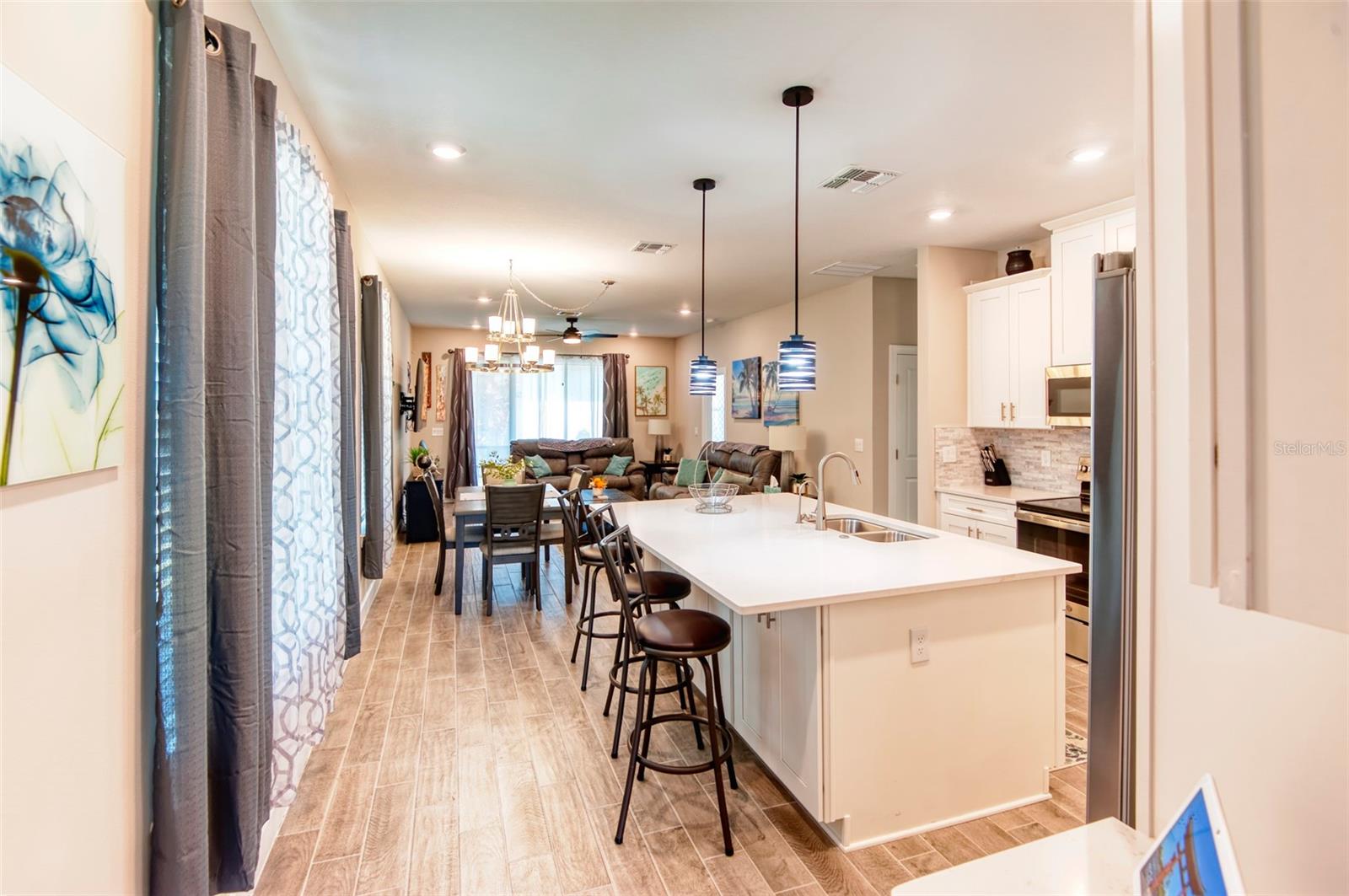 PRICE REDUCTION! This well-maintained 2022 completed home is ready for FUN! This home is move in ready and makes it easy to enjoy the resort lifestyle in Solivita, the award winning 55 Plus Community. Located on a corner lot at the entrance of a charming cul de sac, this MUST SEE Amalfi Model is located in the quiet Viareggio neighborhood and is close to the Solivita Village Center, a hub for so many activities. This home features 2 bedrooms, 2 bathrooms, a separate laundry room with washer/dryer, and a 2-car garage. The kitchen features pendant lightings over a large island, quartz countertops, ample cabinets with plenty of counter space for food preparation, a pantry, along with stainless steel appliances. The large kitchen island has additional storage cabinets in the front and rear. The combination Great Room/Dining area is great for entertaining and the covered and screened lanai is a relaxing spot to enjoy your morning coffee. You will love the spacious feel of this home, the wood look tile floors in the main living areas, the window treatments, and ceiling fans in the Great Room and Bedrooms. The home shows like a model home! The main bedroom with an ensuite bathroom features a walk-in closet and a tile shower and tile flooring. The guest bedroom features a double door closet and the guest bathroom, with tub has wall and floor tile. Additional upgrades include 5-inch baseboards throughout the house, a Nest Thermostat, Digital Front Door Key Pad, and epoxy flooring in both the lanai and garage. Near the Village find Stonegate Golf's facilities which even has its own Driving Range. Come enjoy the good life in Solivita with 14 community pools, including an indoor pool complete with a second floor indoor track, 2 HUGH amenity centers with gyms and so much more, 2 championship golf courses, 3 restaurants, a ballroom, pharmacy, concierge, full team of lifestyles staff, over 200 social clubs to join, major sports and fitness options such as pickleball, tennis, softball, bocci ball, shuffleboard and much more all nestled on over 4200 acres of natural beauty and conveniently located to Disney and the Orlando International Airport. This home is move in ready. Make this your home to own!