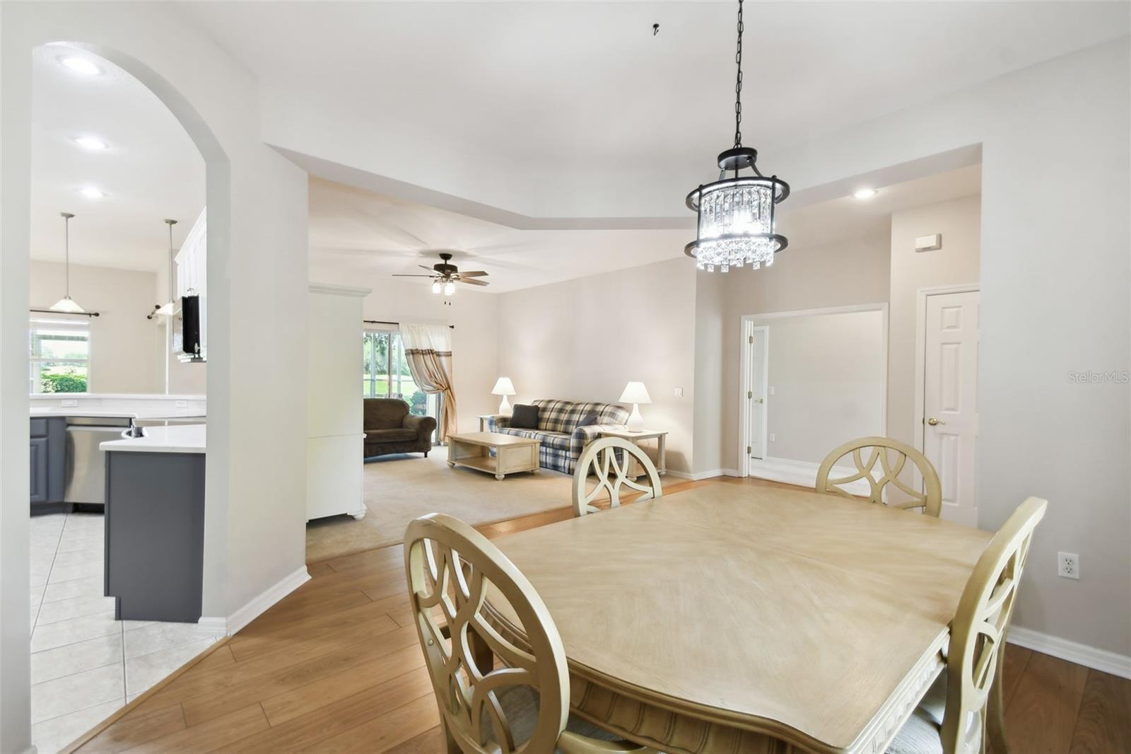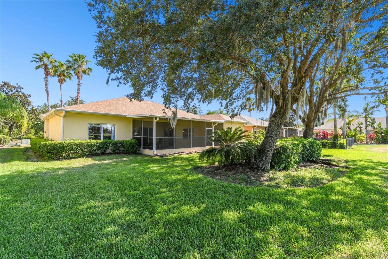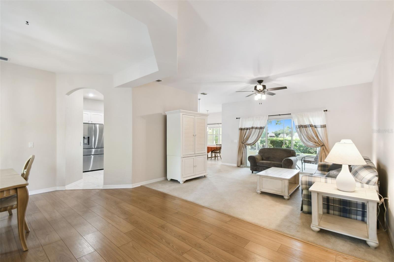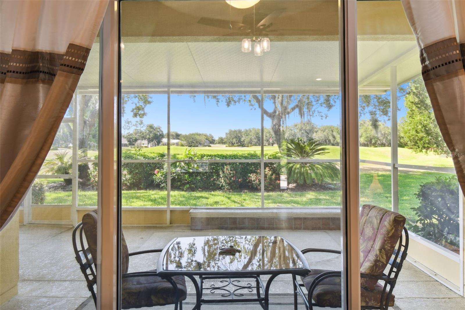 Welcome to this elegant Carnegie model home offering breathtaking views of the 15th hole of the prestigious Stonegate Oaks Golf Course. Located close to the South gate making entering and leaving the community a breeze. This home features a newer roof (2019) and HVAC system (2018), ensuring comfort and peace of mind. The highlight of this property is the extended, screened, and covered lanai with an insulated ceiling and drainage system, providing a perfect space to enjoy the stunning golf course vistas. Inside, the modern kitchen boasts stainless steel appliances (2019), Corian countertops, 37" upper cabinets with crown molding, pull-out drawers in the lower cabinets, and recessed and pendant lighting, offering ample counter space and functionality. The foyer and dining room are adorned with elegant laminate flooring, while the kitchen and bathrooms feature durable ceramic tile. The great room, Florida room, and bedrooms are carpeted for added comfort. THE CARPET AND EXISTING LAMINATE CAN BE REPLACED BY SELLER PRIOR TO CLOSING WITH A FULL PRICE OFFER AND A NON-REFUNDABLE ESCROW MONEY DEPOSIT. ASK THE AGENT FOR FULL DETAILS. The spacious Florida room opens directly to the lanai, making it an ideal spot for indoor-outdoor living. The generously sized primary suite includes two walk-in closets. The primary bathroom is a retreat with Corian counters, mirrored medicine cabinets, dual raised vanities, a makeup area, a garden tub, and a shower. Additional features include a large laundry room with a pantry and built-in cabinets, and an extended garage with 6' of additional space, epoxy-painted floors with confetti chips, a 40-gallon water heater (2020), a wash basin, and extra shelving. The whole house Pelican water softener and filtration system further enhance the quality of living. This beautifully maintained home, with its exterior painted in 2022, is located within a short distance of the neighborhood pool. The Community Development District (CDD) debt payment is fully paid. Don't miss the opportunity to own this stunning property that perfectly blends elegance, comfort, and modern amenities. Solivita is an award winning 55+ community featuring over 4200 acres of wetlands, parks and lakes, 150,000 sq ft of state of the art amenities and work out facilities, 3 restaurants, pharmacy with sundry store, 14 heated swimming pools, 5 heated spas, 2 dog parks, tennis courts, pickleball courts, shuffleboard, bocce ball, billiards room, art gallery, community garden, butterfly garden, 2 championship 18-hole golf courses. The large ball room hosts almost nightly events and the more than 200 clubs will ensure that you can find something fun to do! Join the travel club, the pizza club, the Disney club or do nothing at all while you sit peacefully in one of the many quiet park settings. Voted one of the top 6 communities in America, Solivita is close to the theme parks, beaches, and all the wonderful adventures that Central Florida has to offer. Solivita is a little piece of paradise. Call us today!