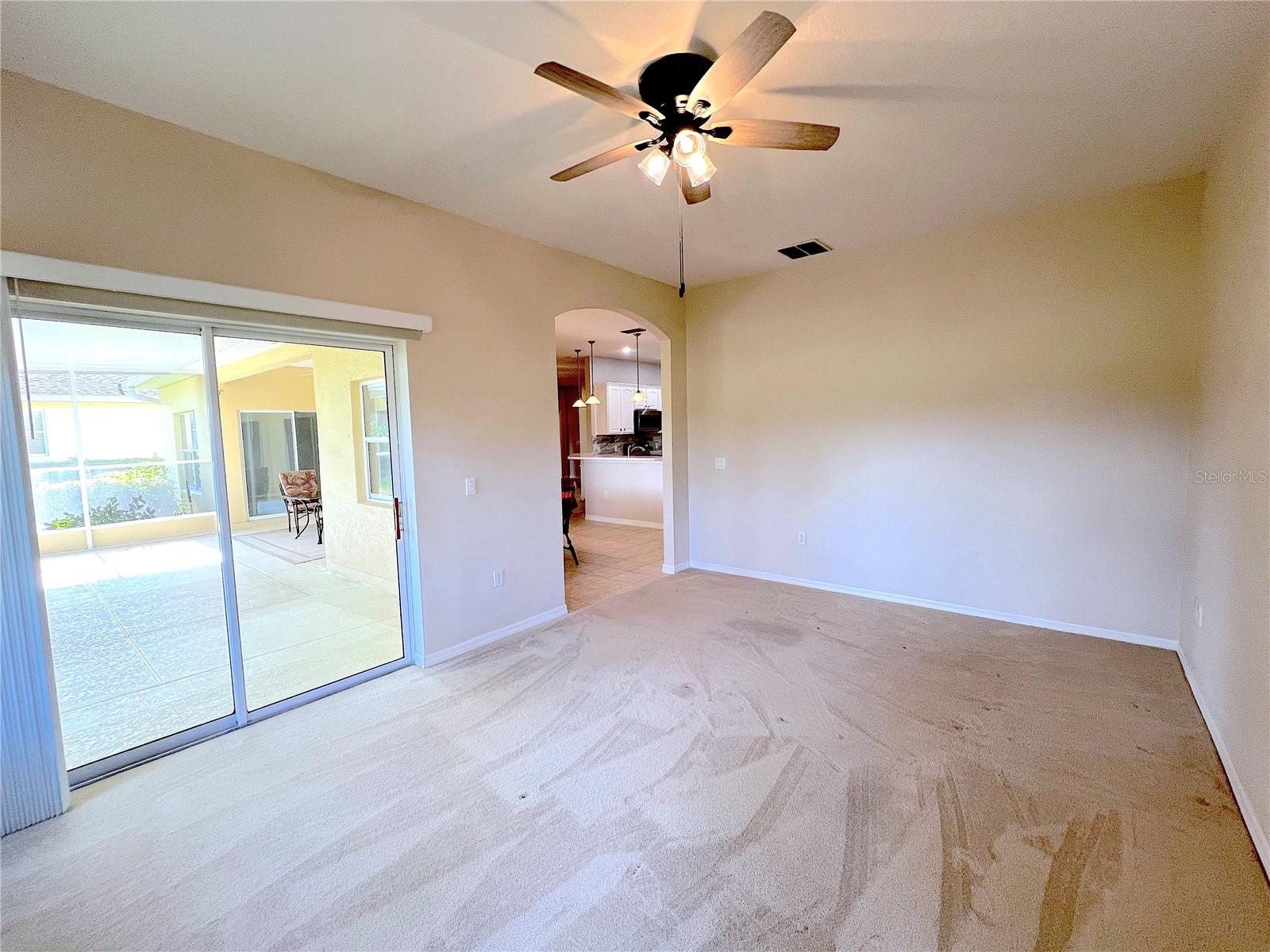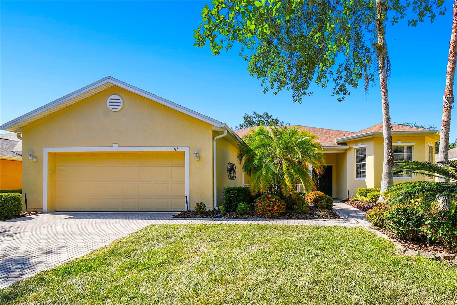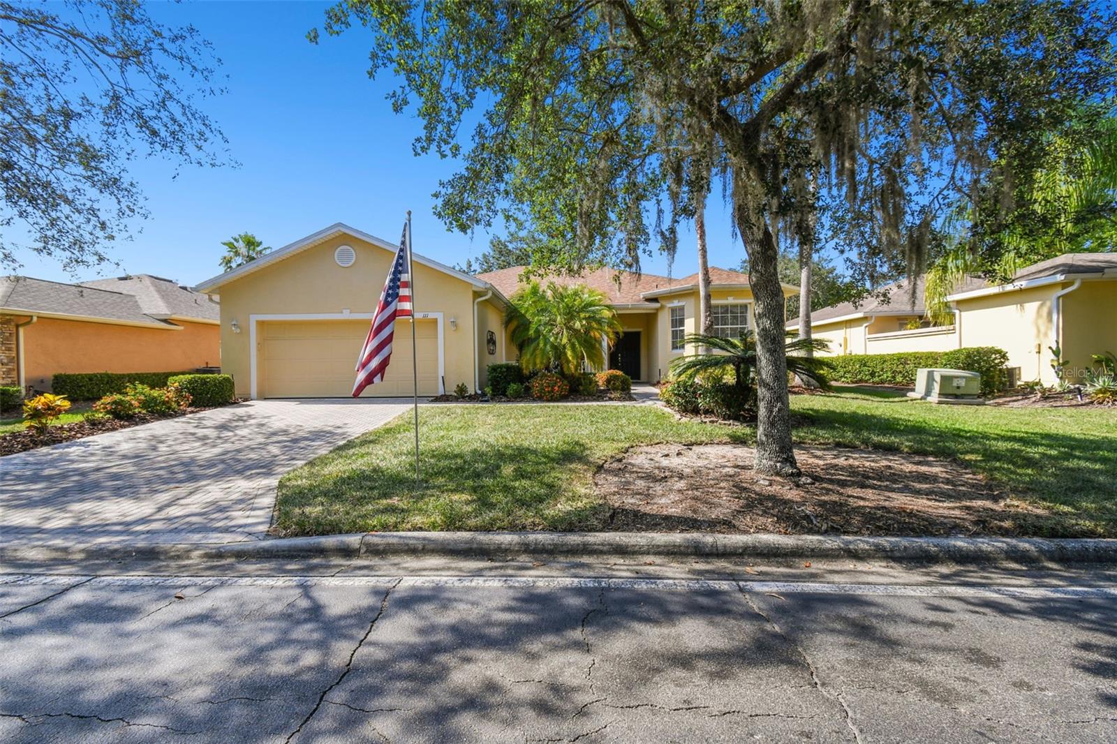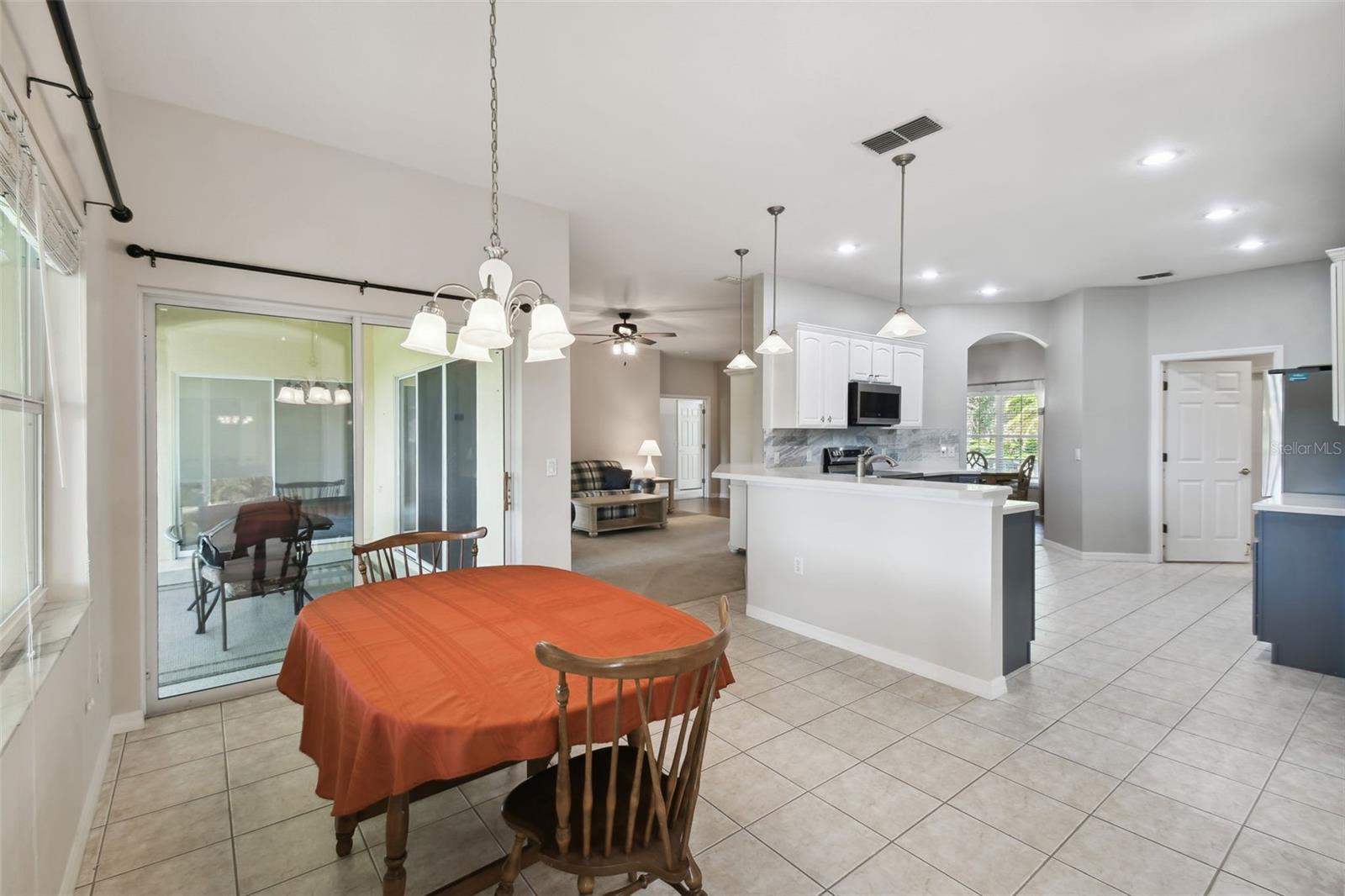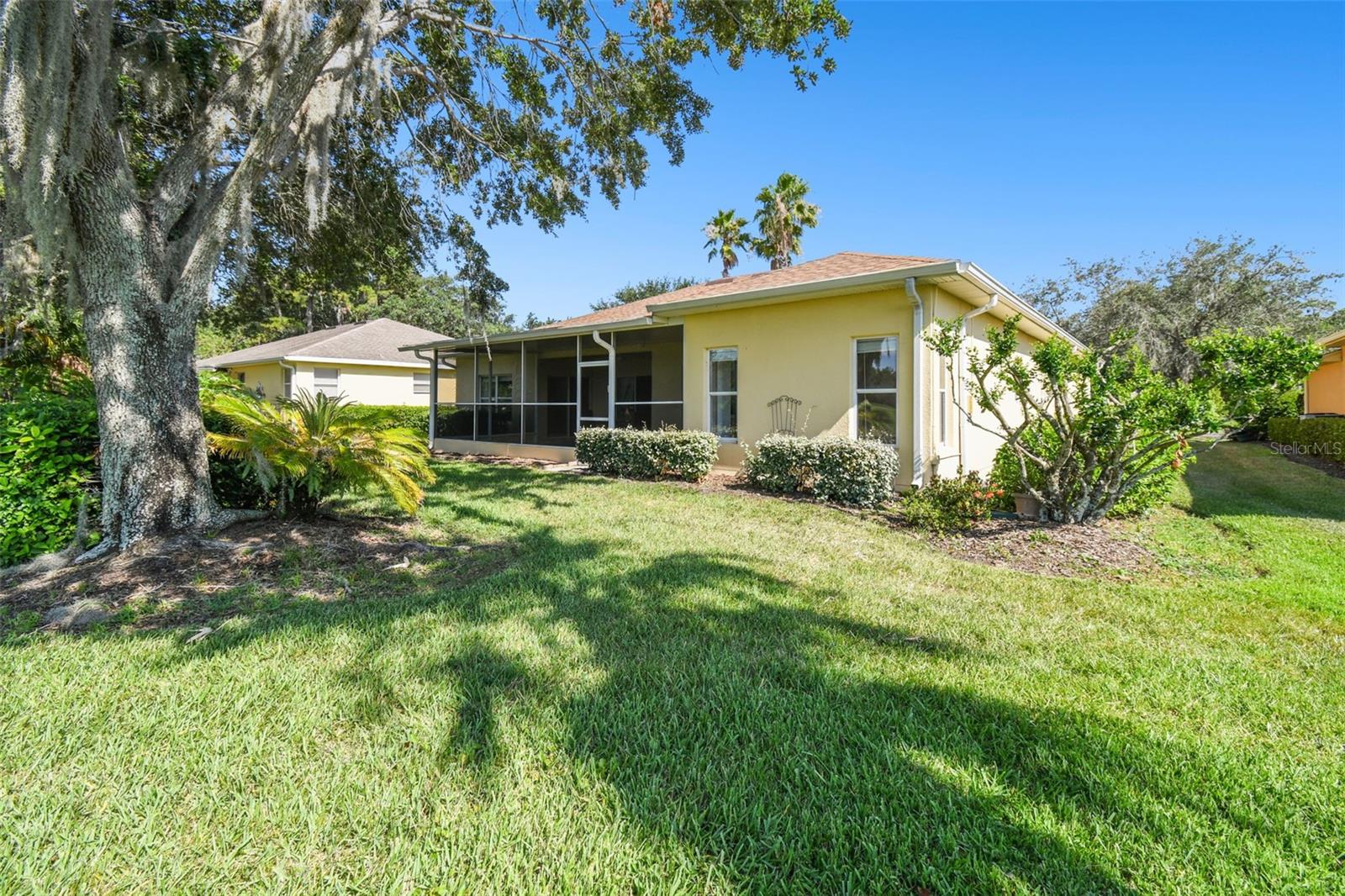 Welcome to this elegant Carnegie model home offering breathtaking views of the 15th hole of the prestigious Stonegate Oaks Golf Course. Located close to the South gate making entering and leaving the community a breeze. This home features a newer roof (2019) and HVAC system (2018), ensuring comfort and peace of mind. The highlight of this property is the extended, screened, and covered lanai with an insulated ceiling and drainage system, providing a perfect space to enjoy the stunning golf course vistas. Inside, the modern kitchen boasts stainless steel appliances (2019), Corian countertops, 37" upper cabinets with crown molding, pull-out drawers in the lower cabinets, and recessed and pendant lighting, offering ample counter space and functionality. The foyer and dining room are adorned with elegant laminate flooring, while the kitchen and bathrooms feature durable ceramic tile. The great room, Florida room, and bedrooms are carpeted for added comfort. THE CARPET AND EXISTING LAMINATE CAN BE REPLACED BY SELLER PRIOR TO CLOSING WITH A FULL PRICE OFFER AND A NON-REFUNDABLE ESCROW MONEY DEPOSIT. ASK THE AGENT FOR FULL DETAILS. The spacious Florida room opens directly to the lanai, making it an ideal spot for indoor-outdoor living. The generously sized primary suite includes two walk-in closets. The primary bathroom is a retreat with Corian counters, mirrored medicine cabinets, dual raised vanities, a makeup area, a garden tub, and a shower. Additional features include a large laundry room with a pantry and built-in cabinets, and an extended garage with 6' of additional space, epoxy-painted floors with confetti chips, a 40-gallon water heater (2020), a wash basin, and extra shelving. The whole house Pelican water softener and filtration system further enhance the quality of living. This beautifully maintained home, with its exterior painted in 2022, is located within a short distance of the neighborhood pool. The Community Development District (CDD) debt payment is fully paid. Don't miss the opportunity to own this stunning property that perfectly blends elegance, comfort, and modern amenities. Solivita is an award winning 55+ community featuring over 4200 acres of wetlands, parks and lakes, 150,000 sq ft of state of the art amenities and work out facilities, 3 restaurants, pharmacy with sundry store, 14 heated swimming pools, 5 heated spas, 2 dog parks, tennis courts, pickleball courts, shuffleboard, bocce ball, billiards room, art gallery, community garden, butterfly garden, 2 championship 18-hole golf courses. The large ball room hosts almost nightly events and the more than 200 clubs will ensure that you can find something fun to do! Join the travel club, the pizza club, the Disney club or do nothing at all while you sit peacefully in one of the many quiet park settings. Voted one of the top 6 communities in America, Solivita is close to the theme parks, beaches, and all the wonderful adventures that Central Florida has to offer. Solivita is a little piece of paradise. Call us today!