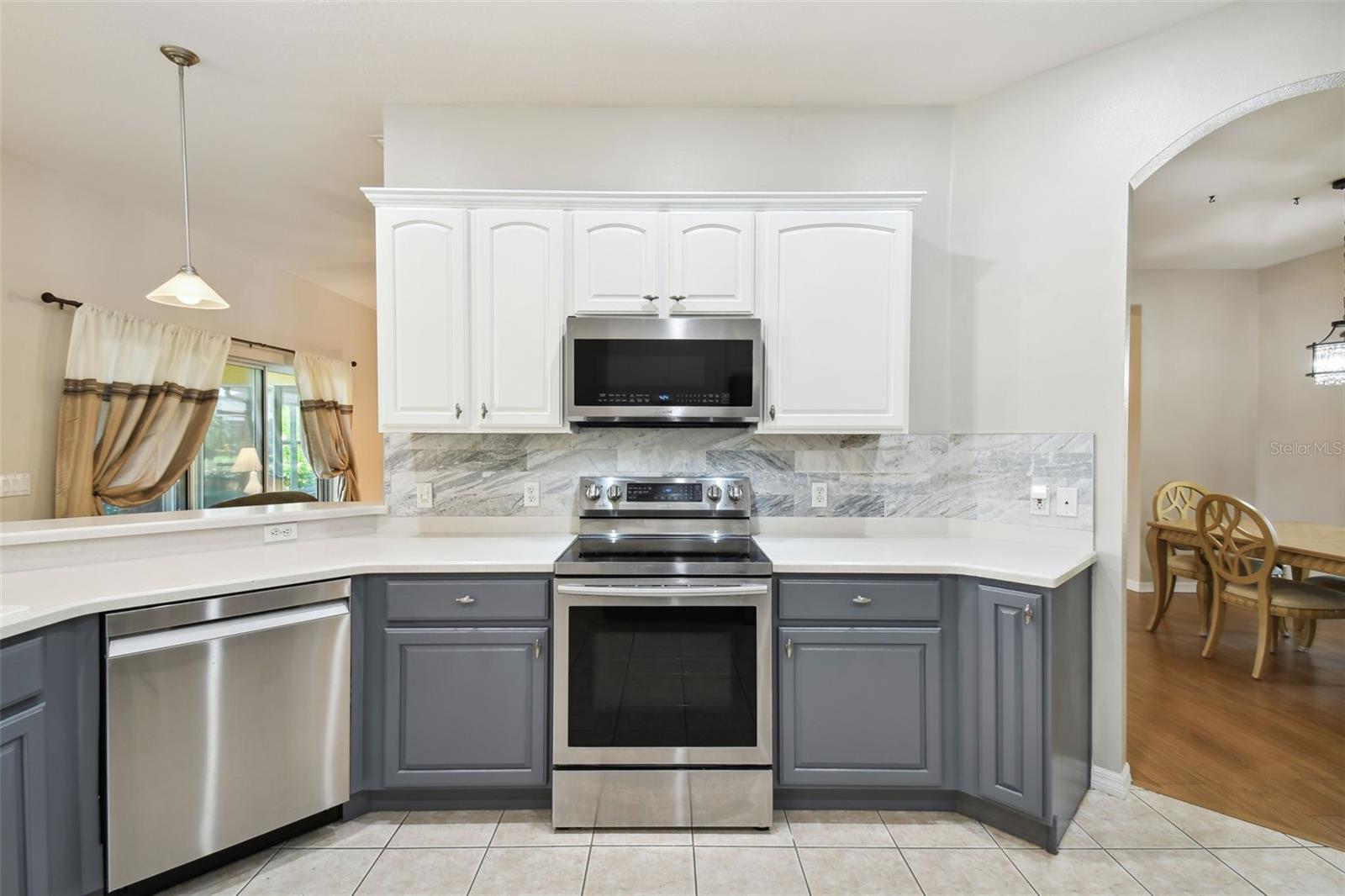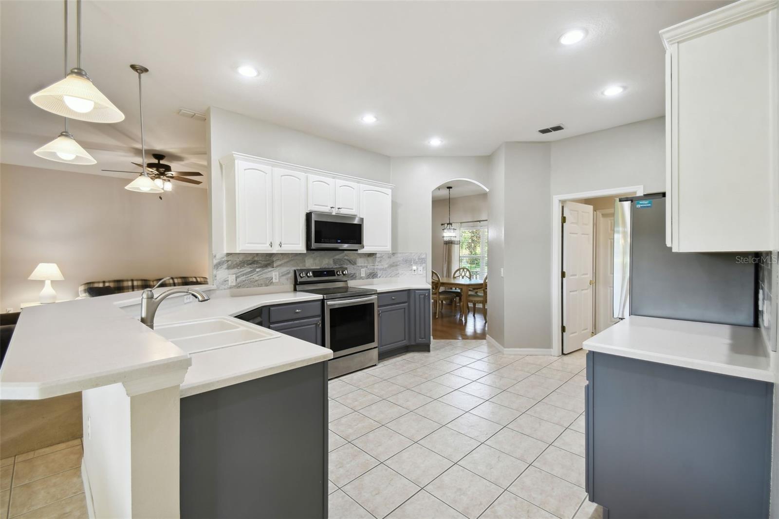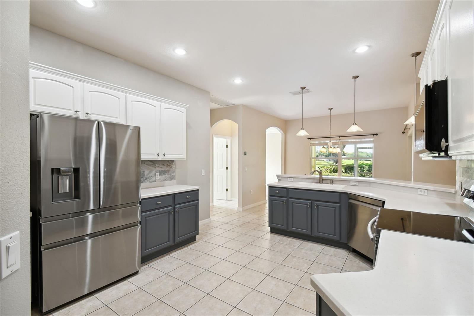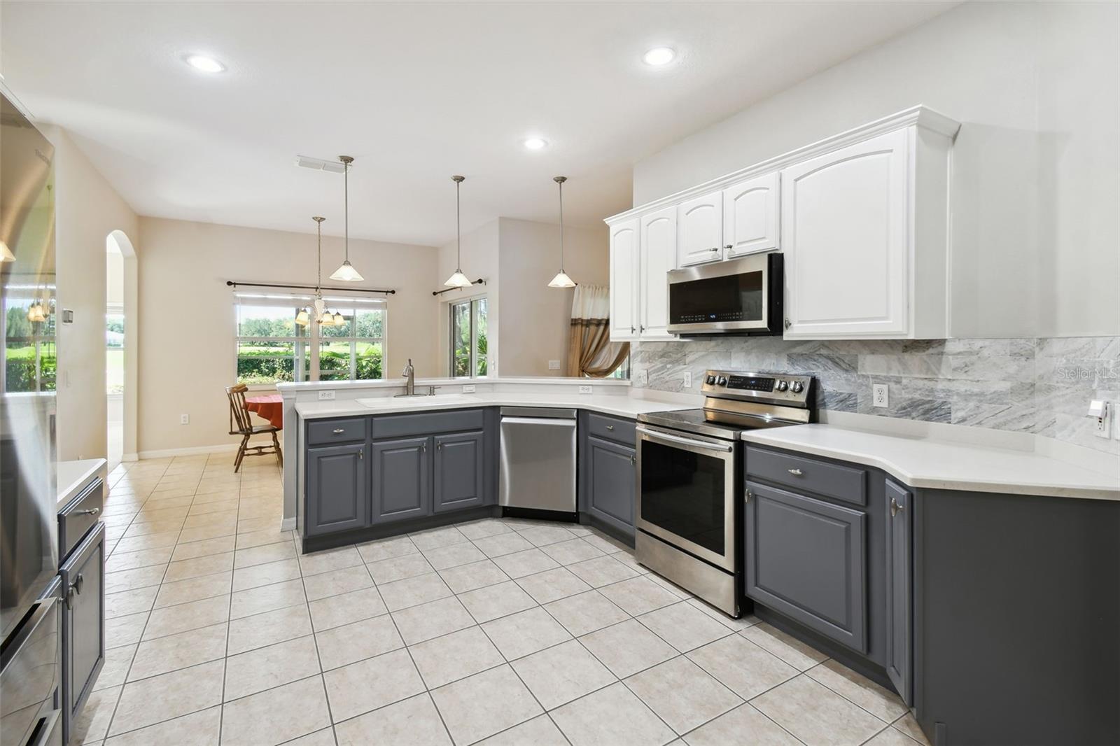 Welcome to this elegant Carnegie model home offering breathtaking views of the 15th hole of the prestigious Stonegate Oaks Golf Course. Located close to the South gate making entering and leaving the community a breeze. This home features a newer roof (2019) and HVAC system (2018), ensuring comfort and peace of mind. The highlight of this property is the extended, screened, and covered lanai with an insulated ceiling and drainage system, providing a perfect space to enjoy the stunning golf course vistas. Inside, the modern kitchen boasts stainless steel appliances (2019), Corian countertops, 37" upper cabinets with crown molding, pull-out drawers in the lower cabinets, and recessed and pendant lighting, offering ample counter space and functionality. The foyer and dining room are adorned with elegant laminate flooring, while the kitchen and bathrooms feature durable ceramic tile. The great room, Florida room, and bedrooms are carpeted for added comfort. THE CARPET AND EXISTING LAMINATE CAN BE REPLACED BY SELLER PRIOR TO CLOSING WITH A FULL PRICE OFFER AND A NON-REFUNDABLE ESCROW MONEY DEPOSIT. ASK THE AGENT FOR FULL DETAILS. The spacious Florida room opens directly to the lanai, making it an ideal spot for indoor-outdoor living. The generously sized primary suite includes two walk-in closets. The primary bathroom is a retreat with Corian counters, mirrored medicine cabinets, dual raised vanities, a makeup area, a garden tub, and a shower. Additional features include a large laundry room with a pantry and built-in cabinets, and an extended garage with 6' of additional space, epoxy-painted floors with confetti chips, a 40-gallon water heater (2020), a wash basin, and extra shelving. The whole house Pelican water softener and filtration system further enhance the quality of living. This beautifully maintained home, with its exterior painted in 2022, is located within a short distance of the neighborhood pool. The Community Development District (CDD) debt payment is fully paid. Don't miss the opportunity to own this stunning property that perfectly blends elegance, comfort, and modern amenities. Solivita is an award winning 55+ community featuring over 4200 acres of wetlands, parks and lakes, 150,000 sq ft of state of the art amenities and work out facilities, 3 restaurants, pharmacy with sundry store, 14 heated swimming pools, 5 heated spas, 2 dog parks, tennis courts, pickleball courts, shuffleboard, bocce ball, billiards room, art gallery, community garden, butterfly garden, 2 championship 18-hole golf courses. The large ball room hosts almost nightly events and the more than 200 clubs will ensure that you can find something fun to do! Join the travel club, the pizza club, the Disney club or do nothing at all while you sit peacefully in one of the many quiet park settings. Voted one of the top 6 communities in America, Solivita is close to the theme parks, beaches, and all the wonderful adventures that Central Florida has to offer. Solivita is a little piece of paradise. Call us today!