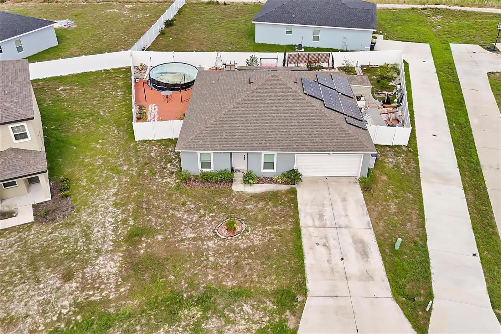 Welcome, Violet Ct – where modern comfort meets effortless elegance! This 2021 Royal Model by Holiday Builders is more than just a house; it's a place you’ll be proud to call home. And one major perk? The fully paid-off solar panel system brings you ongoing energy savings with zero added costs! Ideal Location: Set in the lively Poinciana community, this home is only 18 minutes from the brand-new outdoor mall. Imagine having top stores, restaurants, and even a new movie theater right at your fingertips—offering both convenience and a vibrant lifestyle! Your Private Backyard Retreat: Step outside to your large, enclosed backyard, where endless possibilities await. Whether it’s adding an above-ground pool, a cozy outdoor kitchen, or a lush garden, this backyard is designed to be your personal haven. With patio pavers and storage sheds, you have room to create your own oasis, whether it’s for play, relaxation, or gardening. Spacious and Versatile Interior: The home’s split yet open layout is crafted for both relaxation and functionality. Four generous bedrooms ensure space for everyone, and there’s a perfect spot for a home office if you work from home. The kitchen, the heart of the home, shines with rich wooden cabinetry, sleek stainless-steel appliances, and a design that makes daily living a breeze. Enhanced Comfort and Style: Say goodbye to laundry runs in the garage! This home features a dedicated indoor laundry room. The insulated garage with air vents and recessed lighting also provides a comfortable, well-lit workspace for hobbies or storage. This move-in-ready gem, priced right for today’s market, won’t last long. Don’t let this unique opportunity slip by—schedule your visit today and make this incredible home yours!