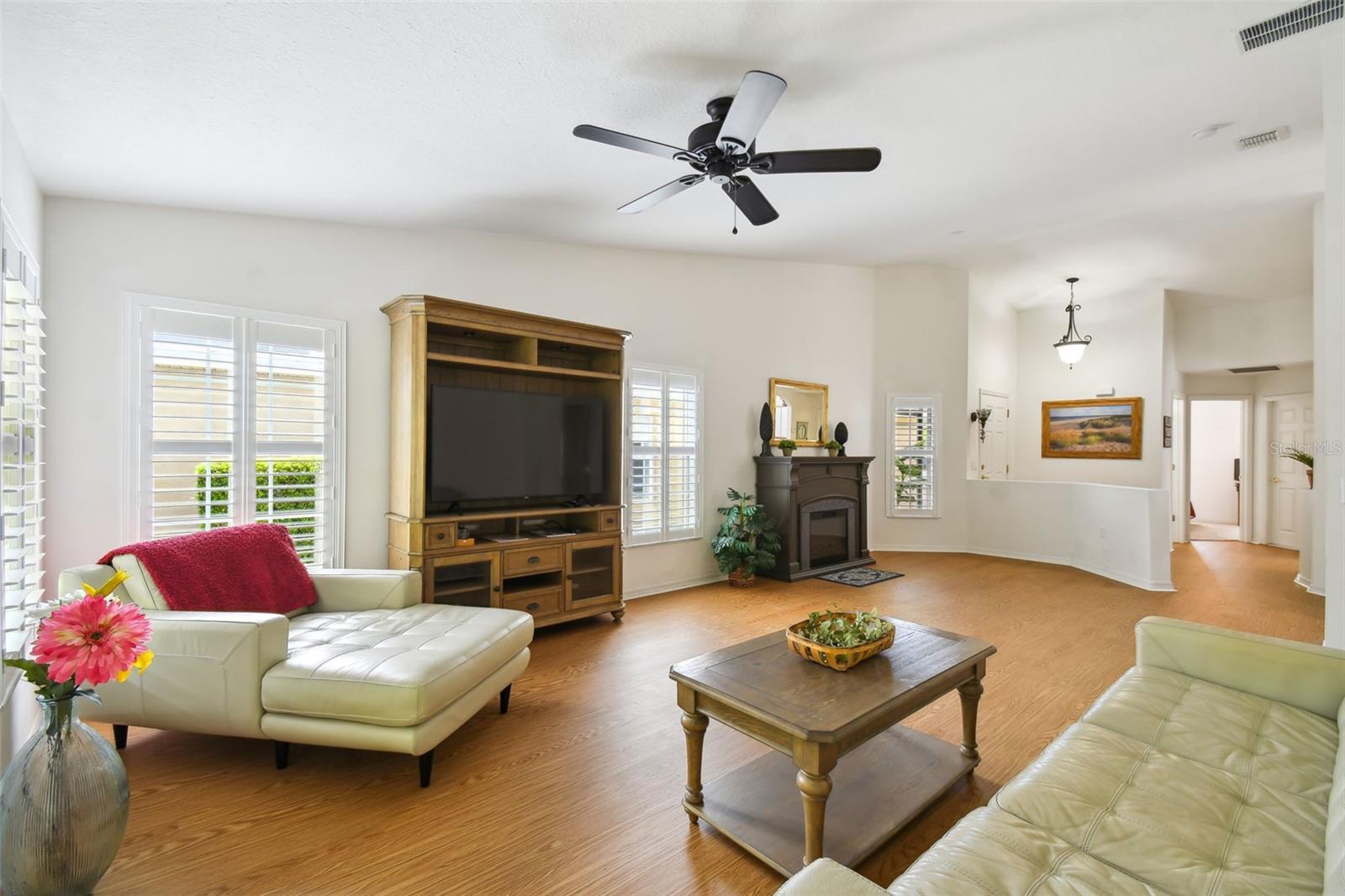 **See the FULL-LENGTH VIDEO on Tour Link 1** ***MARKET VALUE PRICE ADJUSTMENT on this ENERGY EFFICIENT ZINFANDEL with SOLAR PANELS PAID IN FULL; NEW ROOF 2023, NEW A/C 2021*** This IMMACULATE home with GREAT CONSERVATION VIEWS has been meticulously maintained and shows the pride of ownership. Just Steps away from the NEIGHBORHOOD POOL, there are many upgrades, starting with the NEWER ROOF W/PAID OFF SOLAR SYSTEM offering LOW ELECTRIC BILLS and a SCREENED IN FRONT PORCH, to let the breeze blow when you can turn off your NEWER A/C. The floors in this 2 Bedroom, 2 Bath OPEN CONCEPT Home have been recently updated throughout the living spaces with LUXURY VINYL PLANK and NEWER Carpet in the Bedrooms. The PLANTATION SHUTTERS throughout the home, not only look stylish but also help to keep your ELECTRIC BILLS LOW. The SOLAR-run electric FIREPLACE will help keep you warm and toasty in the winter. Enjoy the SERENE & PEACEFUL CONSERVATION VIEWS through the FRENCH DOORS to your FULLY SCREENED COVERED TILED LANAI or out your Bedroom window. This Home has too many ENERGY EFFICIENT Upgrades to pass up. Schedule a showing TODAY!***Solivita is an active adult 55+ community located in Kissimmee, Florida. It is approximately 50 minutes from Disney World & the Orlando International Airport. Over 5,300 homes have been built in Solivita since the community started in 2000, with less than 50 new homes left to be built in mid 2024. Approximately 8,000 residents live in Solivita full time. Enjoy your active years in this piece of paradise. Solivita's amenities include: - a manicured SOFTBALL diamond & field - 36 holes of CHAMPIONSHIP GOLF that can be played by joining the Stonegate Golf Club or paying as you go - 2 STATE of the Art AMENITY centers with updated exercise equipment, yoga studio & meeting rooms - 3 restaurants - 14 HEATED POOLS - 17 PICKLEBALL courts - 9 TENNIS courts - 4 BOCCE BALL courts - 4 SHUFFLEBOARD courts - 3 HORSESHOE pits - a BILLIARDS room - miles of bike paths - 2 DOG PARKS (Small & Large Dogs) - Corn Hole - Tot Lot PLAYGROUND - COMMUNITY GARDEN - over 250 resident clubs. The HOA: * maintains the LANDSCAPING & IRRIGATION systems in the common areas as well as at individual homesites - Maintains the roads throughout the community - PROVIDES SECURITY with gate guards and mobile patrols including the Polk County Sheriff - allows AUTOMATED GATE ACCESS for residents via license plate readers - provides residents with Fiber Optic Internet & TV service.*** Poinciana Lakes Plaza is a MAJOR NEW SHOPPING CENTER open directly across from the Solivita Main Gate. It will feature Sprouts Grocery, TJ MAXX, Ross, Burlington, Rack Room Shoes, 5 Below, Ulta, Outback, First Watch, 5 Guys, Urgent Care, Dentist, TD Bank, Petco, Hair Cuttery plus MORE.***