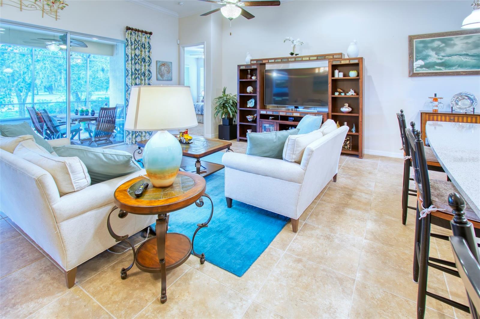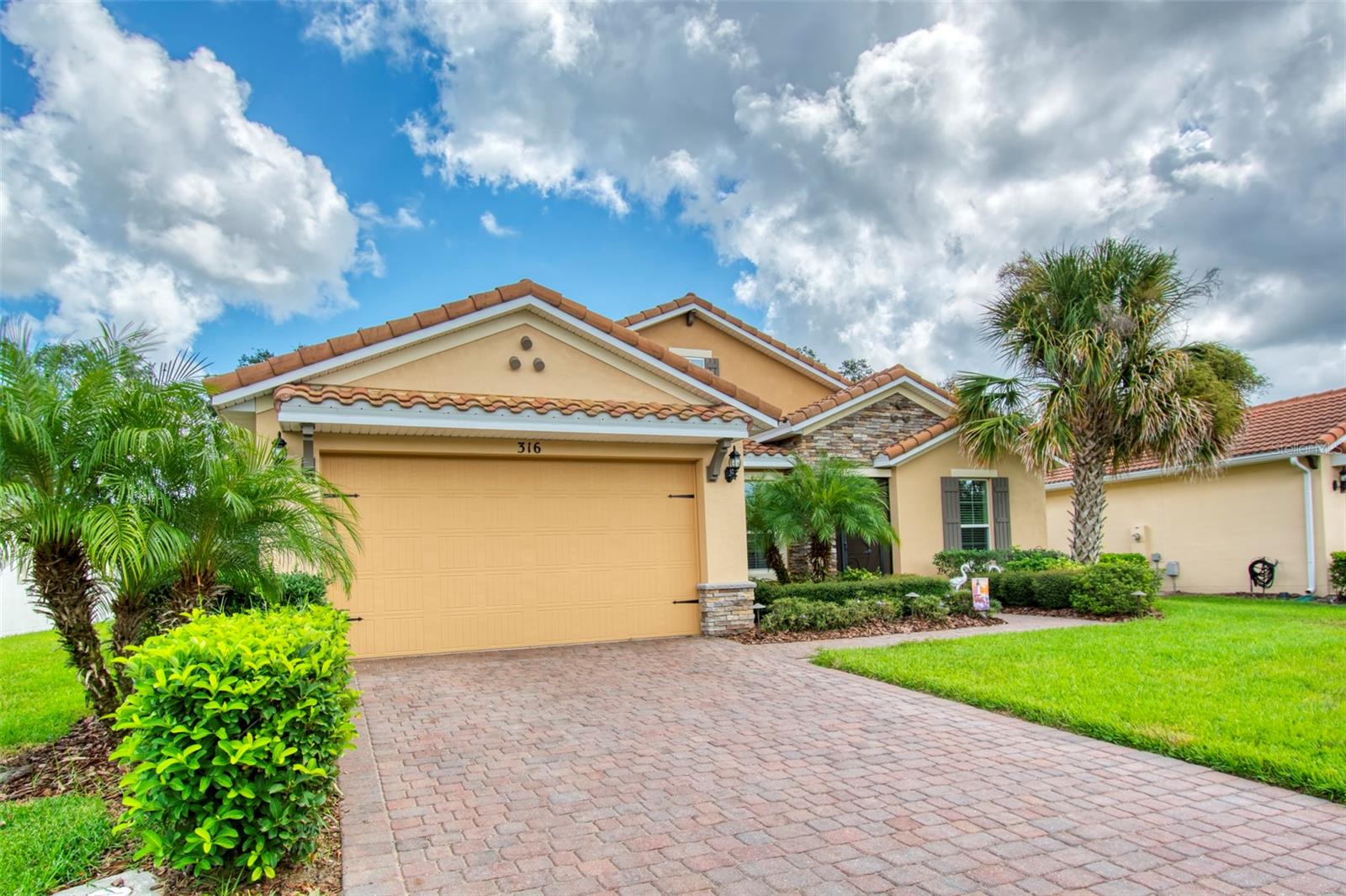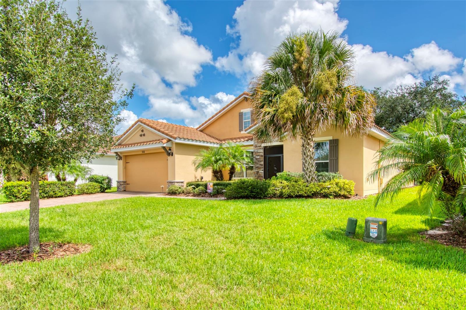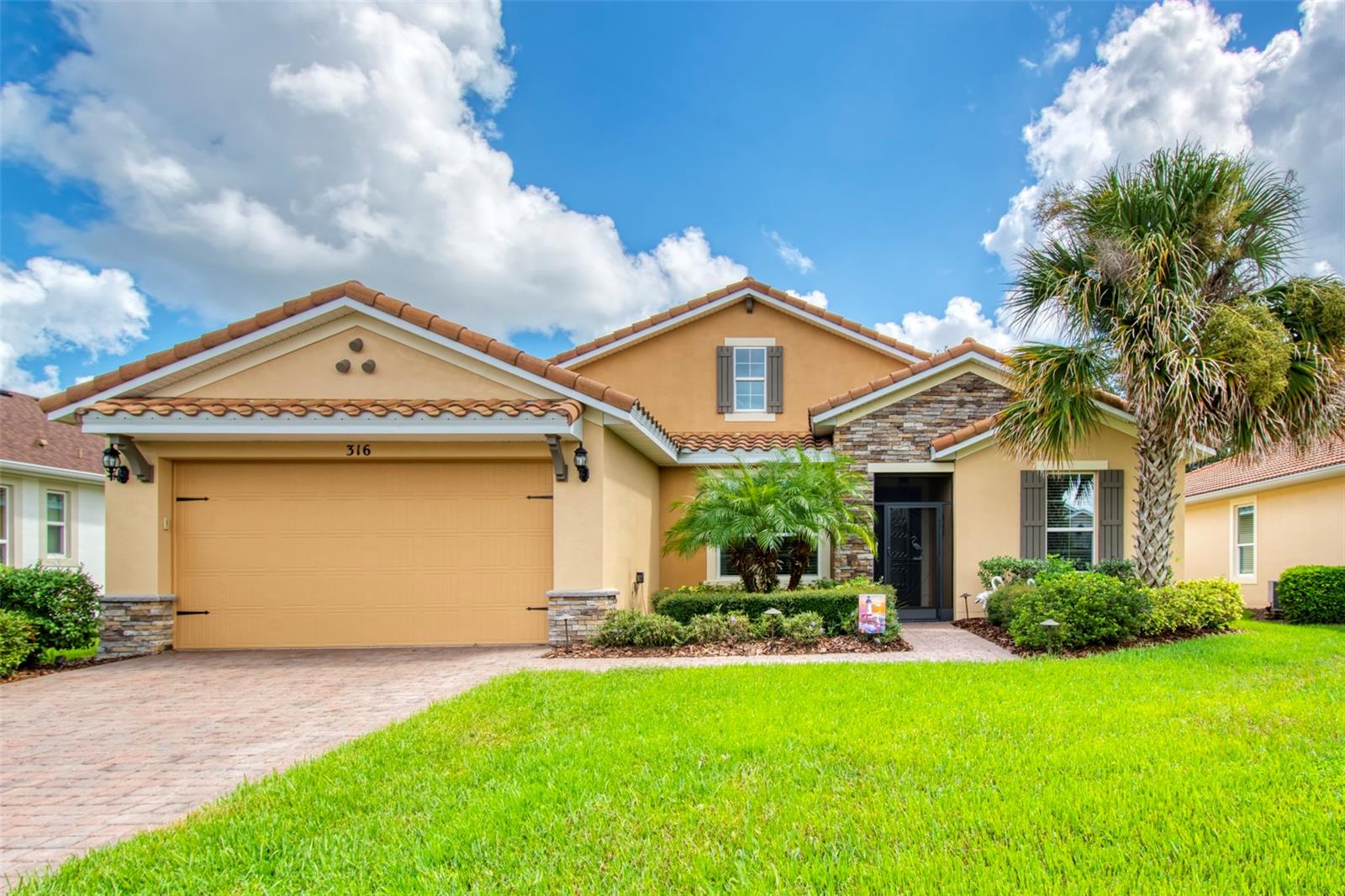 Tour this home, then make it YOURS! 316 Treviso Drive - a rare 18th fairway GOLF COURSE HOME in Central Florida’s award winning Solivita community. Come live the dream in this Tuscan-style Savona model with TWIN OWNERS SUITES and sweeping views of the 18th hole. A stacked STONE facade, barrel tile roof, and mature oaks create instant curb appeal, while the village and amenities are a short walk away. Step inside the screened portico and leaded-glass front door into a warm, OPEN LAYOUT and take command of your lifestyle. Upgraded TILE flooring in PUBLIC SPACES, 8' doors, soaring ceilings, and a double-door den/flex room is perfect for work or relaxation. Entertain effortlessly in the GOURMET KITCHEN featuring soft cream with copper glaze cabinetry, undercabinet lighting, QUARTZ countertops, and a stunning marble and glass backsplash. Serve guests at the oversized curved island and host unforgettable gatherings in the expansive great room with SURROUND SOUND. Open the 12’ Sliders and your lanai awaits: Relax or entertain on the full width screened, partially covered lanai, surrounded by glowing landscape lighting and private, unobstructed views across the fairway. Wake up to gentle sunrises and unwind in the evening shade — no rear neighbors, just serene beauty. The two luxurious owner’s suites are retreats, each with plush carpet, double-racked closets, and spa-like baths with rich cabinetry, gleaming tile, and designer accents. There’s a 3rd BEDROOM and FULL BATH when the whole gang visits! The thoughtful layout includes a DROP ZONE off the garage, plus a well-placed laundry room to keep things efficient and effortless. This home delivers COMFORT, ELEGANCE, and importantly, LIFESTYLE — and it’s ready for you now. Opportunities like this don’t come often! Make arrangements to secure YOUR showing of this ESTATE home in the vibrant active 55+ Community of Solivita. Featuring 14 Pools, 2 Championship 18 Hole Golf Courses, Tennis, Pickleball, Basketball, Softball, over 240 clubs, spa services, two state of the art exercise facilities and 4,200 acres of conservation. The HOA includes landscaping, irrigation AND high-speed fiber internet and TV. For added convenience, HCA Florida Poinciana Hospital & Medical Bldg. are directly across the street, alongside the new Poinciana Lakes Plaza with shopping, restaurants, banking and more!