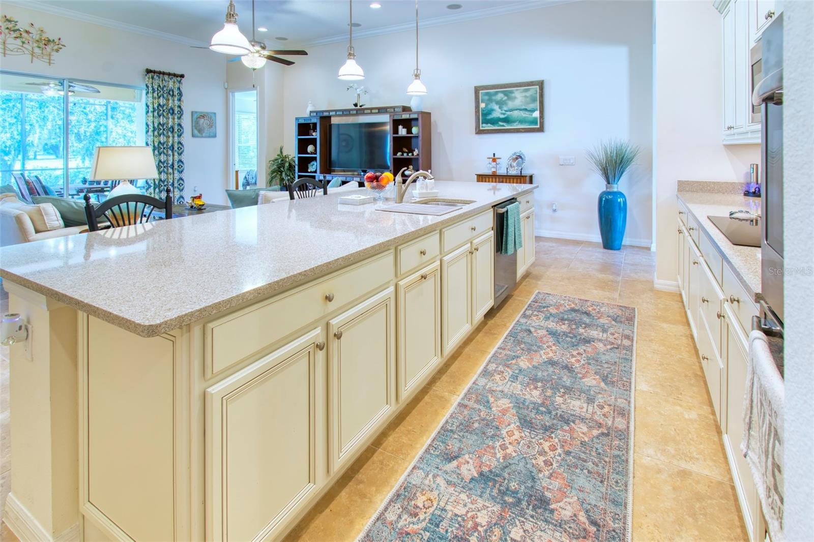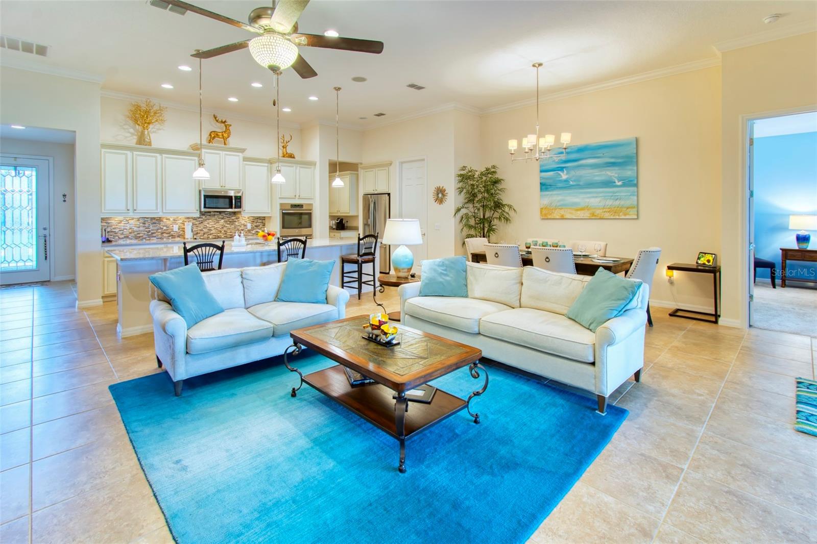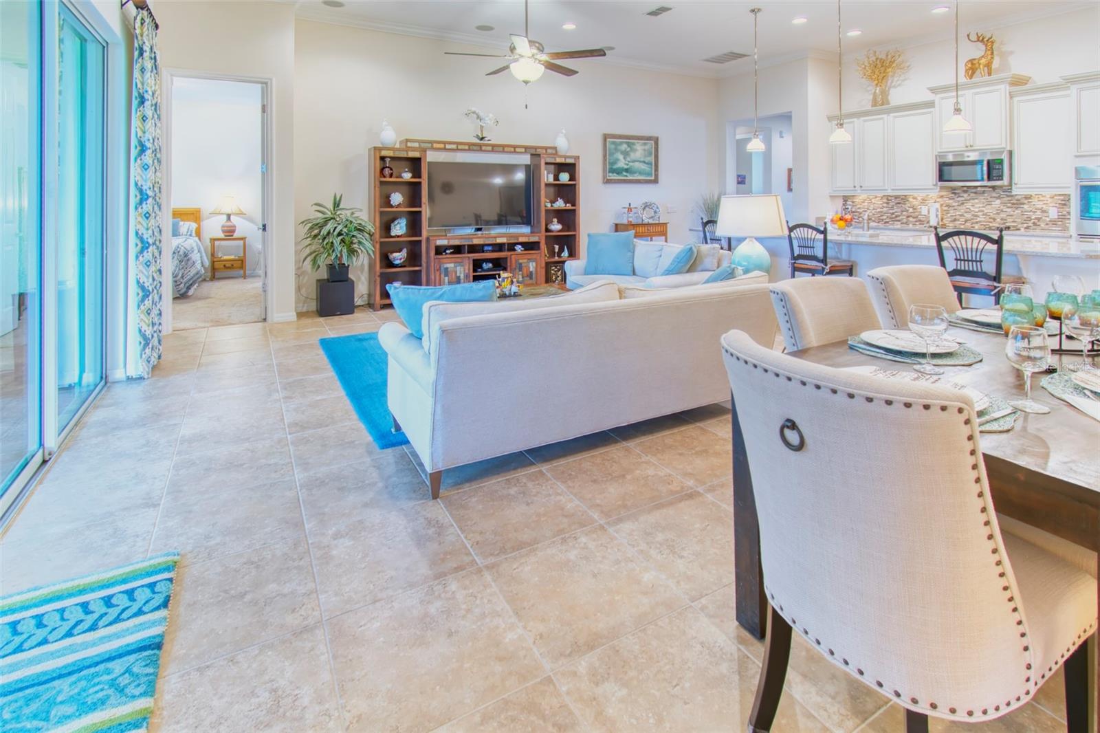 Tour this home, then make it YOURS! 316 Treviso Drive - a rare 18th fairway GOLF COURSE HOME in Central Florida’s award winning Solivita community. Come live the dream in this Tuscan-style Savona model with TWIN OWNERS SUITES and sweeping views of the 18th hole. A stacked STONE facade, barrel tile roof, and mature oaks create instant curb appeal, while the village and amenities are a short walk away. Step inside the screened portico and leaded-glass front door into a warm, OPEN LAYOUT and take command of your lifestyle. Upgraded TILE flooring in PUBLIC SPACES, 8' doors, soaring ceilings, and a double-door den/flex room is perfect for work or relaxation. Entertain effortlessly in the GOURMET KITCHEN featuring soft cream with copper glaze cabinetry, undercabinet lighting, QUARTZ countertops, and a stunning marble and glass backsplash. Serve guests at the oversized curved island and host unforgettable gatherings in the expansive great room with SURROUND SOUND. Open the 12’ Sliders and your lanai awaits: Relax or entertain on the full width screened, partially covered lanai, surrounded by glowing landscape lighting and private, unobstructed views across the fairway. Wake up to gentle sunrises and unwind in the evening shade — no rear neighbors, just serene beauty. The two luxurious owner’s suites are retreats, each with plush carpet, double-racked closets, and spa-like baths with rich cabinetry, gleaming tile, and designer accents. There’s a 3rd BEDROOM and FULL BATH when the whole gang visits! The thoughtful layout includes a DROP ZONE off the garage, plus a well-placed laundry room to keep things efficient and effortless. This home delivers COMFORT, ELEGANCE, and importantly, LIFESTYLE — and it’s ready for you now. Opportunities like this don’t come often! Make arrangements to secure YOUR showing of this ESTATE home in the vibrant active 55+ Community of Solivita. Featuring 14 Pools, 2 Championship 18 Hole Golf Courses, Tennis, Pickleball, Basketball, Softball, over 240 clubs, spa services, two state of the art exercise facilities and 4,200 acres of conservation. The HOA includes landscaping, irrigation AND high-speed fiber internet and TV. For added convenience, HCA Florida Poinciana Hospital & Medical Bldg. are directly across the street, alongside the new Poinciana Lakes Plaza with shopping, restaurants, banking and more!