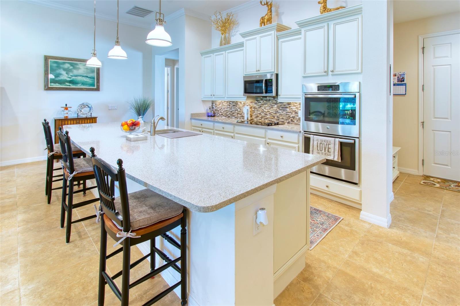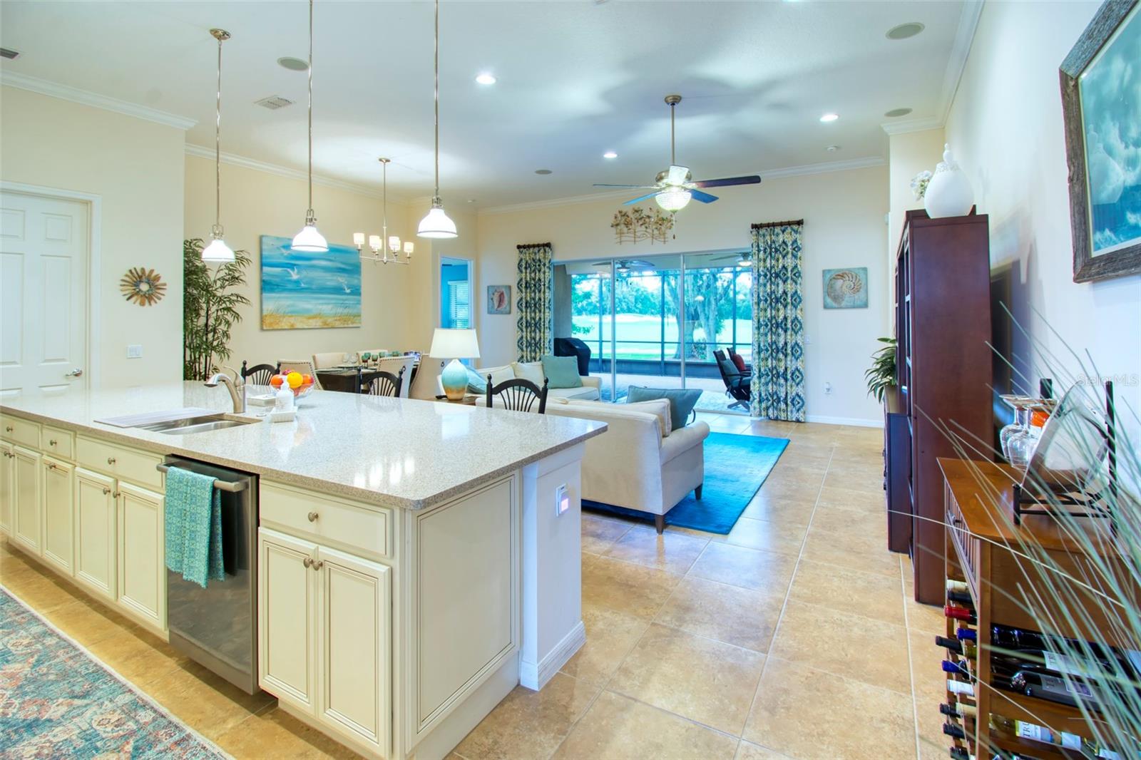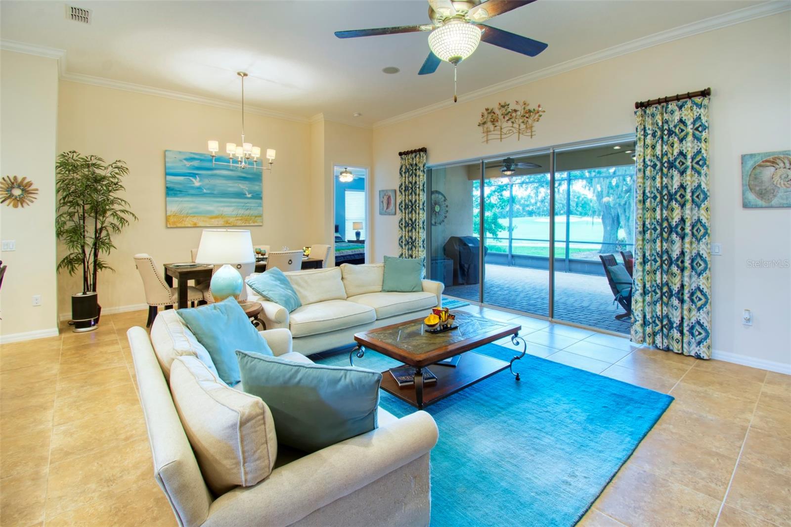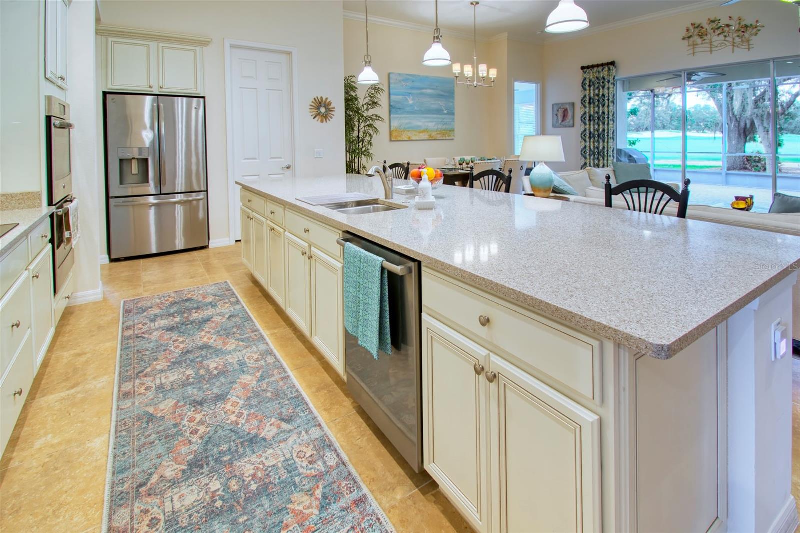 Tour this home, then make it YOURS! 316 Treviso Drive - a rare 18th fairway GOLF COURSE HOME in Central Florida’s award winning Solivita community. Come live the dream in this Tuscan-style Savona model with TWIN OWNERS SUITES and sweeping views of the 18th hole. A stacked STONE facade, barrel tile roof, and mature oaks create instant curb appeal, while the village and amenities are a short walk away. Step inside the screened portico and leaded-glass front door into a warm, OPEN LAYOUT and take command of your lifestyle. Upgraded TILE flooring in PUBLIC SPACES, 8' doors, soaring ceilings, and a double-door den/flex room is perfect for work or relaxation. Entertain effortlessly in the GOURMET KITCHEN featuring soft cream with copper glaze cabinetry, undercabinet lighting, QUARTZ countertops, and a stunning marble and glass backsplash. Serve guests at the oversized curved island and host unforgettable gatherings in the expansive great room with SURROUND SOUND. Open the 12’ Sliders and your lanai awaits: Relax or entertain on the full width screened, partially covered lanai, surrounded by glowing landscape lighting and private, unobstructed views across the fairway. Wake up to gentle sunrises and unwind in the evening shade — no rear neighbors, just serene beauty. The two luxurious owner’s suites are retreats, each with plush carpet, double-racked closets, and spa-like baths with rich cabinetry, gleaming tile, and designer accents. There’s a 3rd BEDROOM and FULL BATH when the whole gang visits! The thoughtful layout includes a DROP ZONE off the garage, plus a well-placed laundry room to keep things efficient and effortless. This home delivers COMFORT, ELEGANCE, and importantly, LIFESTYLE — and it’s ready for you now. Opportunities like this don’t come often! Make arrangements to secure YOUR showing of this ESTATE home in the vibrant active 55+ Community of Solivita. Featuring 14 Pools, 2 Championship 18 Hole Golf Courses, Tennis, Pickleball, Basketball, Softball, over 240 clubs, spa services, two state of the art exercise facilities and 4,200 acres of conservation. The HOA includes landscaping, irrigation AND high-speed fiber internet and TV. For added convenience, HCA Florida Poinciana Hospital & Medical Bldg. are directly across the street, alongside the new Poinciana Lakes Plaza with shopping, restaurants, banking and more!