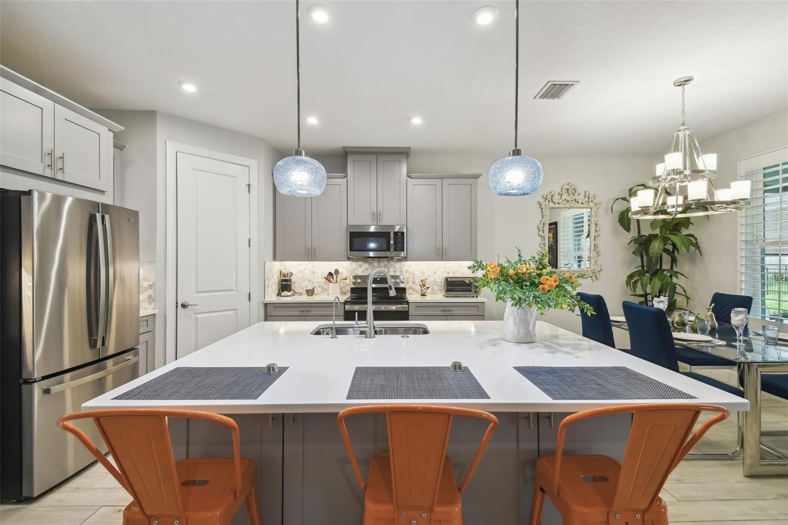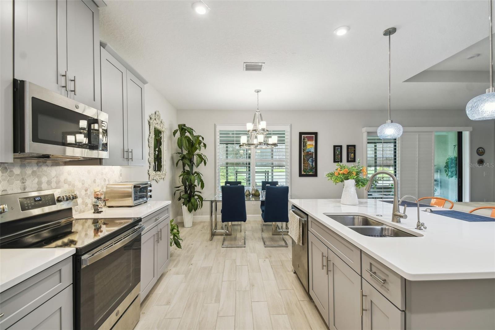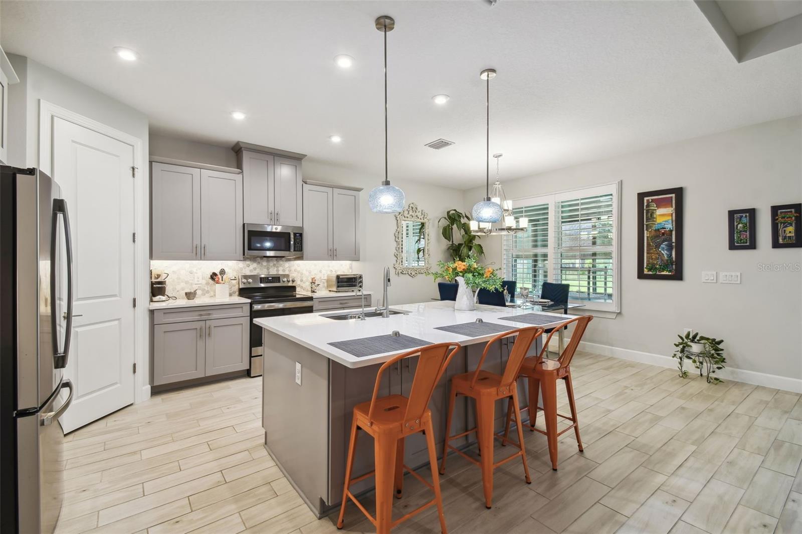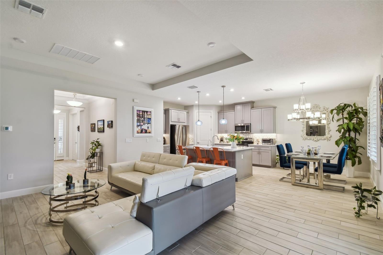 HUGE reduction on the List Price!! Welcome to this well-maintained BRAVA Model located in the subdivision of Vittoria of the FAMOUS 55+ community called Solivita. Spacious, stylish, and designed for a CAREFREE lifestyle, this home is all that and more. Even before entering this GORGEOUS home, notice the well-groomed and maintained LANDSCAPE. Come on in and observe the FOYER with tray ceilings. There is CERAMIC tile flooring throughout except for the two bedrooms (carpet). The GREAT ROOM is a delightful place to relax and entertain guests. A cook will enjoy the well-equipped KITCHEN with a central island, Quartz counters, large walk-in PANTRY, upgraded CABINETS, and a casual dining area. The Owner's Suite FEATURES Plantation Shutters, TRAY ceiling, California walk-in closet, and a luxurious bathroom. Your guests will enjoy their privacy in the SECOND bedroom. The DEN/STUDY could be converted to another bedroom with a large walk-in closet and Plantation Shutters. The laundry room consists of a WASHER and a DRYER which is included in the sale. Enjoy the outdoors with your glassed enclosed lanai including TWO ceiling fans and of course an amazing POND VIEW. Upgrades to this home includes GUTTERS, Koolaroo Shades in the lanai, CULLIGAN Water Softener, Plantation Shutters, California Closet Walk-In Closet in Primary Bedroom, and reverse osmosis sink in the kitchen. The GARAGE was extended by four feet. Solivita is an active adult 55+ community located in Kissimmee, Florida. It is approximately 50 minutes from Disney World & the Orlando International Airport. Over 5,300 homes have been built in Solivita since the community started in 2000, with less than 50 new homes left to be built in mid 2024. Approximately 8,000 residents live in Solivita full time. Enjoy your active years in this piece of paradise. Solivita's amenities include: - a manicured SOFTBALL diamond & field - 36 holes of CHAMPIONSHIP GOLF that can be played by joining the Stonegate Golf Club or paying as you go - 2 STATE of the Art AMENITY FITNESS centers with updated exercise equipment, yoga studio & meeting rooms - 3 restaurants - 14 HEATED POOLS - 17 PICKLEBALL courts - 9 TENNIS courts - 4 BOCCE BALL courts - 4 SHUFFLEBOARD courts - 3 HORSESHOE pits - a BILLIARDS room - miles of bike paths - 2 DOG PARKS (Small & Large Dogs) - Corn Hole - Tot Lot PLAYGROUND - COMMUNITY GARDEN - over 300 resident clubs. The HOA: * - maintains the LANDSCAPING & IRRIGATION systems in the common areas as well as at individual homesites - Maintains the roads throughout the community - PROVIDES SECURITY with gate guards and mobile patrols including the Polk County Sheriff - allows AUTOMATED GATE ACCESS for residents via license plate readers - provides residents with Fiber Optic Internet & TV service.*** Poinciana Lakes Plaza is a MAJOR NEW SHOPPING CENTER opening directly across from the Solivita Main Gate in Summer of 2024. It features Sprouts Grocery, TJ MAXX, Ross, Burlington, Rack Room Shoes, 5 Below, Ulta, Outback, First Watch, 5 Guys, Urgent Care, Dentist, TD Bank, Petco, Hair Cuttery plus MORE TO COME.***