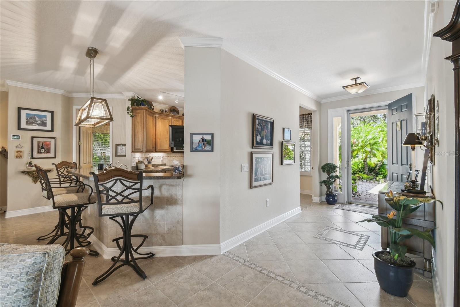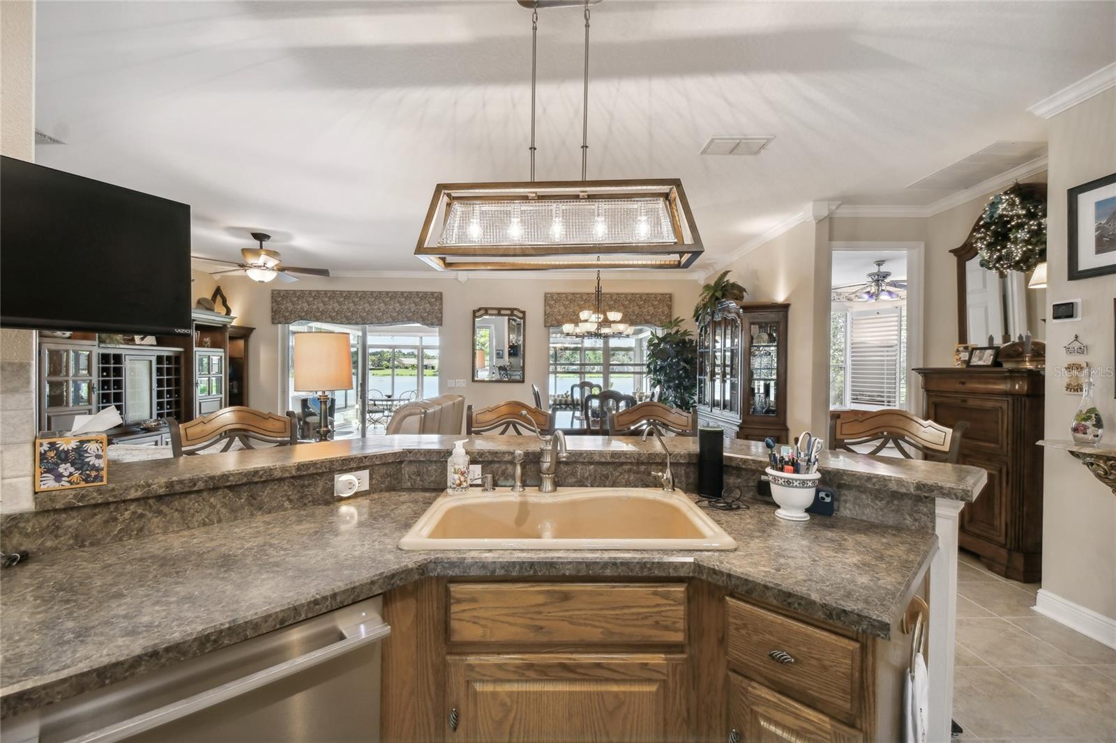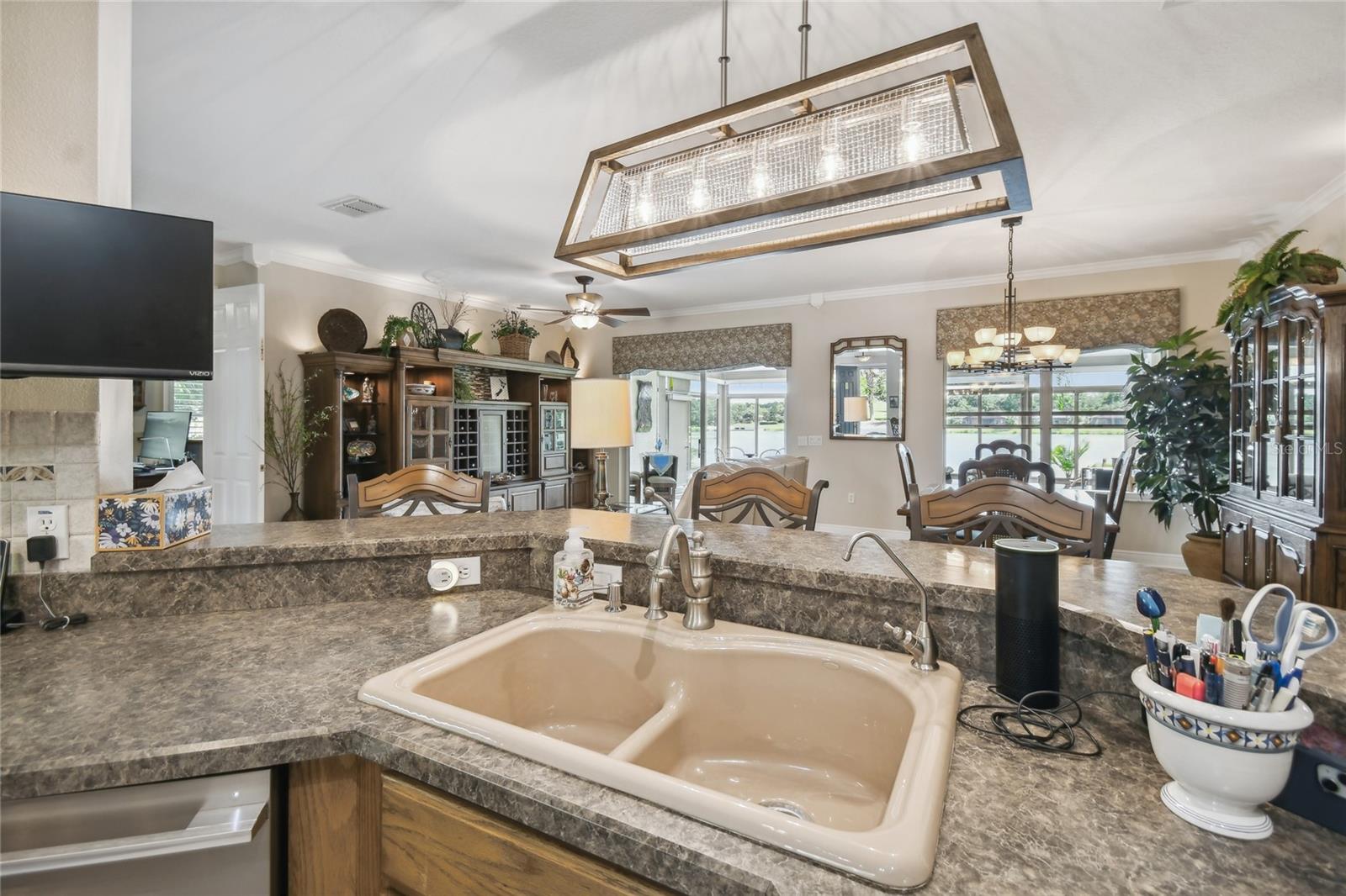 Stunning WATERFRONT Savoy model with breathtaking direct sight lines of the beautiful pond, featuring a 4 SEASON GLASS sunroom that adds an extra 500 square feet of cooled and heated living space. This serene extension is perfect for year-round enjoyment, blending nature with indoor comfort. This home has been meticulously maintained by the original owners, showcasing pride of ownership in every detail. NEW ROOF 2021,NEW HWH 2020 and NEW HVAC installed in 2018 with 10 year parts and labor warranty through 2028. MINI SPLIT in sunroom replaced 2022. Stepping through the front doors, you are immediately greeted by the beautiful water views, complemented by the bright and airy living room/dining room combination. Ceramic TILE FLOORS throughout main living space. LUXURY VINYL WIDE PLANK FLOORS in all bedrooms installed 2021. NO CARPETS in this home! Crown molding adds an elegant touch, and PLANTATION SHUTTERS on windows enhance the charm of this great home. The kitchen boasts 42-inch solid wood cabinets with both LOWER and UPPER pull-outs, newer STAINLESS STEEL APPLIANCES, over and under cabinet lighting, and a tumbled stone backsplash. Track lighting adds functionality to the space while a closet pantry provides ample storage for all your essentials. The oversized PRIMARY SUITE affords a SITTING AREA, perfect for use as an office space, with French doors providing direct access to the sunroom. The attached ENSUITE BATH includes a WALK IN SHOWER, a separate garden tub, DUAL SINKS, a vanity area, and TWO spacious walk-in closets. This split floor plan features two additional bedrooms with a Jack and Jill bathroom, offering convenience and ensuring privacy for both family and guests. The 4 season sunroom is an entertainer's delight, offering gorgeous views of the water. This warm and inviting space is perfect for family gatherings, wine nights with friends, or simply a tranquil spot to relax and enjoy nature in all its beauty. With the convenience of a MINI SPLIT HVAC system,(2022) it can be enjoyed year-round, ensuring comfort no matter the season. NEW RUBBER ROOF installed over sunroom addition in 2021. A separate laundry room includes an LG Wash Tower installed in 2021. Additional upgrades include two car garage with a 5' EXTENSION, LIFT MASTER GARAGE DOOR MOTOR( INSTALLED 2020) pull down attic stairs, utility sink and WHOLE HOUSE WATER SOFTENER. EXTERIOR PAINTED 2023. NEW MAILBOX 2024. Home features core foam fill insulation in exterior block walls and dual-pane windows. Situated across from a serene park setting with no neighbors in front!! ** Click on VIRTUAL TOUR link 1 to see MATTER PORT 3D VIDEO and virtually walk through this home. ** Solivita's amenities include: - a manicured SOFTBALL diamond & field - 36 holes of CHAMPIONSHIP GOLF that can be played by joining the Stonegate Golf Club or paying as you go - 2 STATE of the Art AMENITY centers with updated exercise equipment, yoga studio - 3 restaurants - 14 HEATED POOLS - 17 PICKLEBALL courts - 9 TENNIS courts -a BILLIARDS room - miles of bike paths - 2 DOG PARKS (Small & Large Dogs), Corn Hole ,Tot Lot PLAYGROUND - COMMUNITY GARDEN - over 250 resident clubs. *** Poinciana Lakes Plaza is a MAJOR NEW SHOPPING CENTER opening directly across from the Solivita Main Gate in Summer of 2024. It features Sprouts Grocery, TJ MAXX, Ross, Burlington, Rack Room Shoes, 5 Below, Ulta, Outback, First Watch, 5 Guys, Urgent Care, Dentist, TD Bank, Petco, Hair Cuttery plus MORE TO COME.***