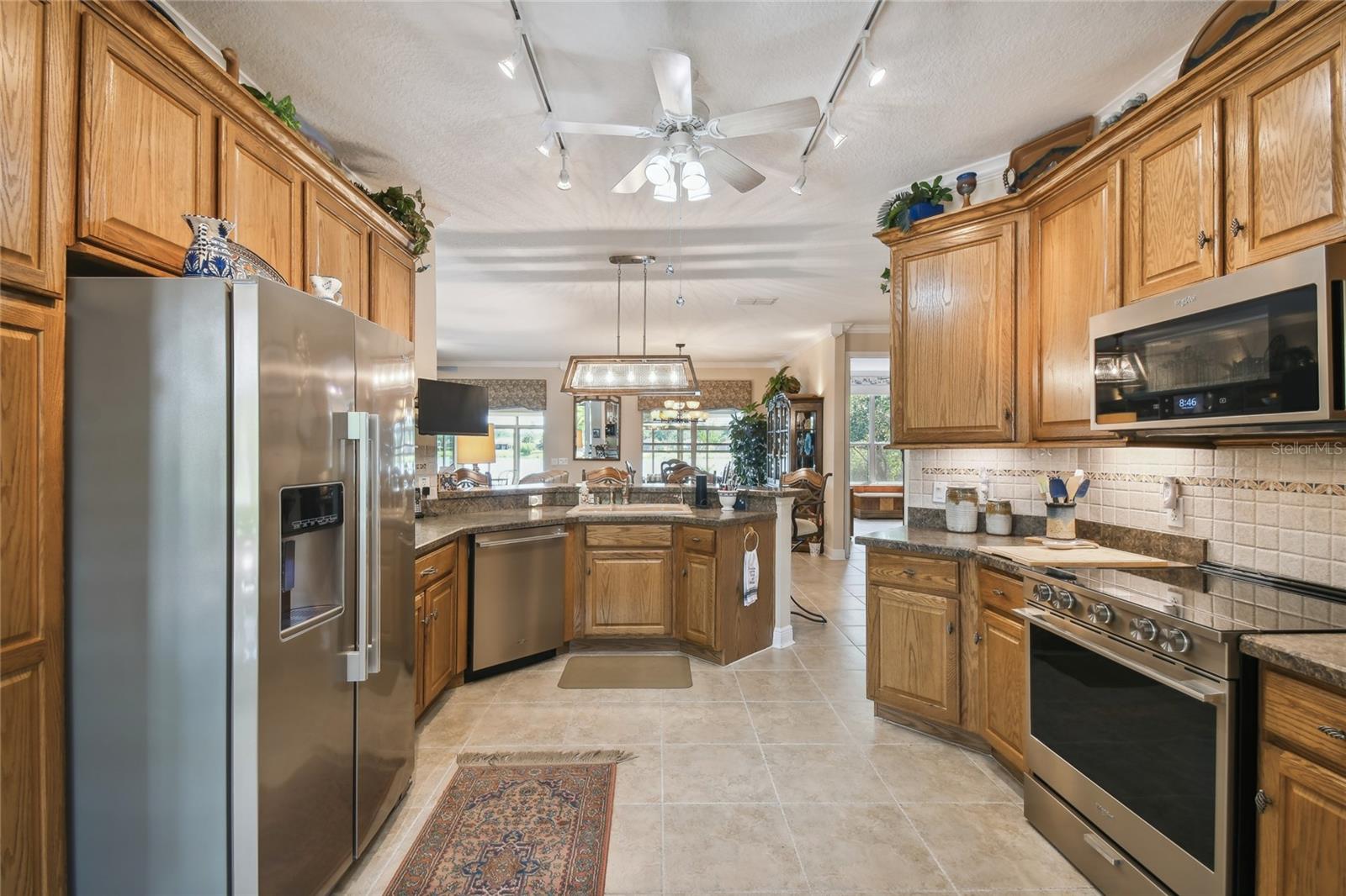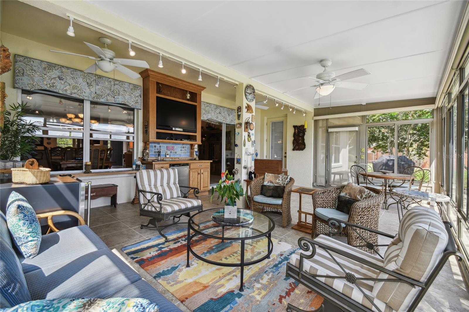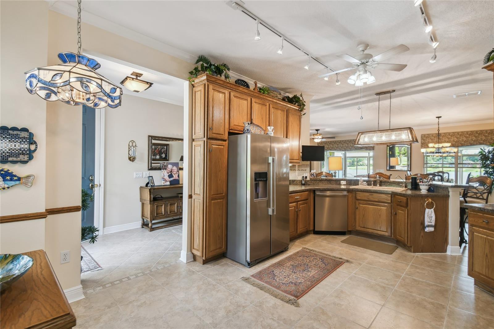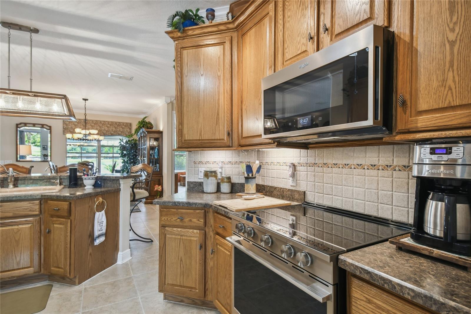Stunning WATERFRONT Savoy model with breathtaking direct sight lines of the beautiful pond, featuring a 4 SEASON GLASS sunroom that adds an extra 500 square feet of cooled and heated living space. This serene extension is perfect for year-round enjoyment, blending nature with indoor comfort. This home has been meticulously maintained by the original owners, showcasing pride of ownership in every detail. NEW ROOF 2021,NEW HWH 2020 and NEW HVAC installed in 2018 with 10 year parts and labor warranty through 2028. MINI SPLIT in sunroom replaced 2022. Stepping through the front doors, you are immediately greeted by the beautiful water views, complemented by the bright and airy living room/dining room combination. Ceramic TILE FLOORS throughout main living space. LUXURY VINYL WIDE PLANK FLOORS in all bedrooms installed 2021. NO CARPETS in this home! Crown molding adds an elegant touch, and PLANTATION SHUTTERS on windows enhance the charm of this great home. The kitchen boasts 42-inch solid wood cabinets with both LOWER and UPPER pull-outs, newer STAINLESS STEEL APPLIANCES, over and under cabinet lighting, and a tumbled stone backsplash. Track lighting adds functionality to the space while a closet pantry provides ample storage for all your essentials. The oversized PRIMARY SUITE affords a SITTING AREA, perfect for use as an office space, with French doors providing direct access to the sunroom. The attached ENSUITE BATH includes a WALK IN SHOWER, a separate garden tub, DUAL SINKS, a vanity area, and TWO spacious walk-in closets. This split floor plan features two additional bedrooms with a Jack and Jill bathroom, offering convenience and ensuring privacy for both family and guests. The 4 season sunroom is an entertainer's delight, offering gorgeous views of the water. This warm and inviting space is perfect for family gatherings, wine nights with friends, or simply a tranquil spot to relax and enjoy nature in all its beauty. With the convenience of a MINI SPLIT HVAC system,(2022) it can be enjoyed year-round, ensuring comfort no matter the season. NEW RUBBER ROOF installed over sunroom addition in 2021. A separate laundry room includes an LG Wash Tower installed in 2021. Additional upgrades include two car garage with a 5' EXTENSION, LIFT MASTER GARAGE DOOR MOTOR( INSTALLED 2020) pull down attic stairs, utility sink and WHOLE HOUSE WATER SOFTENER. EXTERIOR PAINTED 2023. NEW MAILBOX 2024. Home features core foam fill insulation in exterior block walls and dual-pane windows. Situated across from a serene park setting with no neighbors in front!! ** Click on VIRTUAL TOUR link 1 to see MATTER PORT 3D VIDEO and virtually walk through this home. ** Solivita's amenities include: - a manicured SOFTBALL diamond & field - 36 holes of CHAMPIONSHIP GOLF that can be played by joining the Stonegate Golf Club or paying as you go - 2 STATE of the Art AMENITY centers with updated exercise equipment, yoga studio - 3 restaurants - 14 HEATED POOLS - 17 PICKLEBALL courts - 9 TENNIS courts -a BILLIARDS room - miles of bike paths - 2 DOG PARKS (Small & Large Dogs), Corn Hole ,Tot Lot PLAYGROUND - COMMUNITY GARDEN - over 250 resident clubs. *** Poinciana Lakes Plaza is a MAJOR NEW SHOPPING CENTER opening directly across from the Solivita Main Gate in Summer of 2024. It features Sprouts Grocery, TJ MAXX, Ross, Burlington, Rack Room Shoes, 5 Below, Ulta, Outback, First Watch, 5 Guys, Urgent Care, Dentist, TD Bank, Petco, Hair Cuttery plus MORE TO COME.***