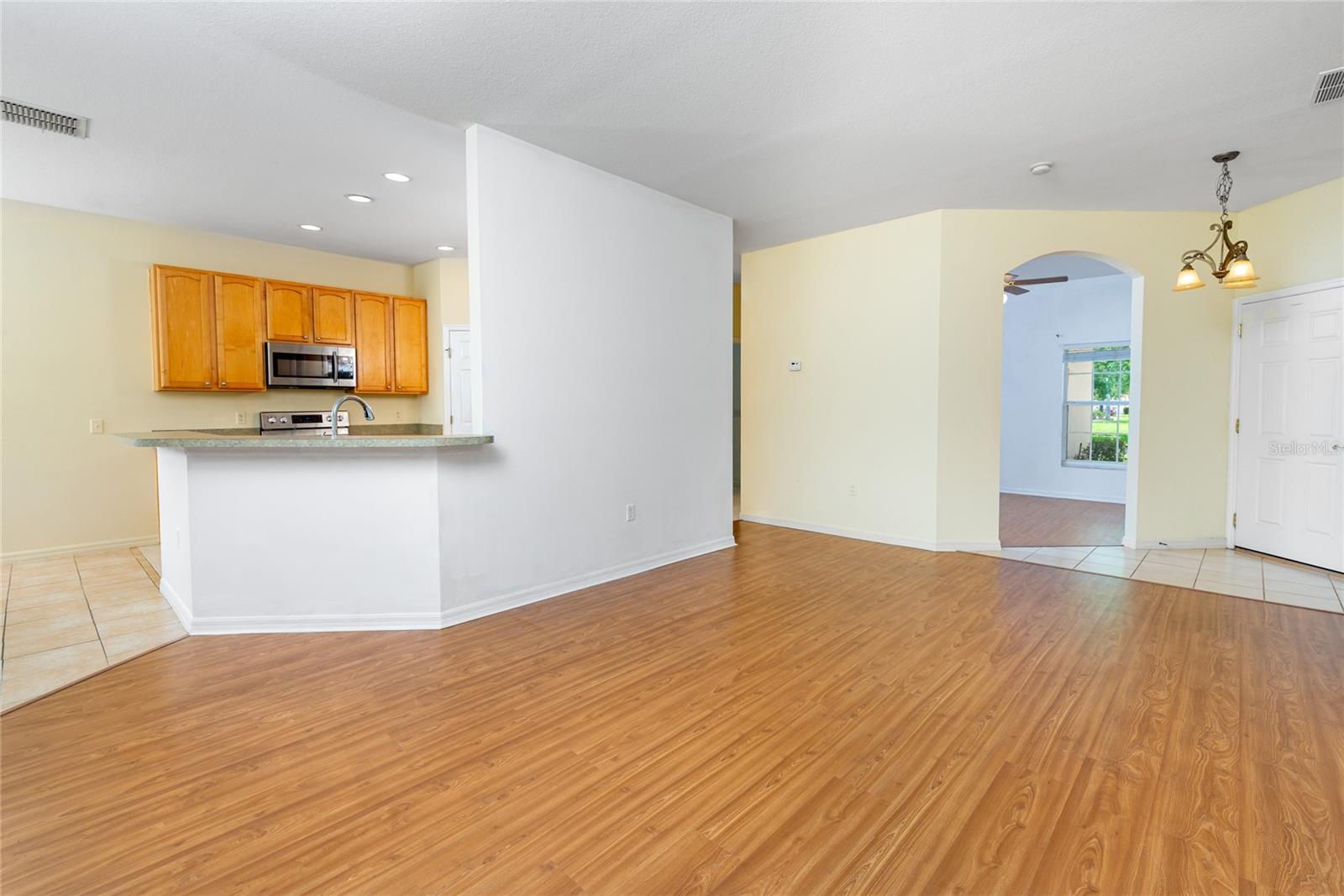 GREAT NEWS: KITCHEN UPDATE UNDERWAY! NEW PHOTOS OF THE RENOVATION TO FOLLOW SOON! Reduced for a quick sale! Live the Solivita lifestyle in this beautiful ALLEGRA floor plan home that sits on a beautiful corner lot across from a passive park -Solivita is an award winning over 55 golf course community only 45 minutes from OIA. The home is Walking distance to one of the 14 satellite pools. Enter the home through the covered front porch, the Great room with sliding glass doors straight ahead - To the left is the Primary bedroom with a private bath with garden tub and plenty of vanity space - The bedroom has one huge walk-in closet and another linen closet. The master bedroom is large and spacious with a beautiful bay window. The kitchen includes all appliances, plenty of cabinet space, 42" wood cabinets and a walk in pantry. The second bedroom also has a beautiful walk-in closet. Both the living room and Dining area have sliding glass doors to the outdoor covered porch. The laundry room is inside and the washer and dryer are also included. The Garage does have a utility sink as well as a special plug for a golf cart. Solivita boasts many amenities such as 2 state of the art fitness centers, pickleball, tennis, shuffleboard, baseball, town center with restaurants, convenience shopping, etc etc. Living at Solivita you can be as busy as you want with one or more of the 200 plus clubs or just enjoy living in this beautiful community.
