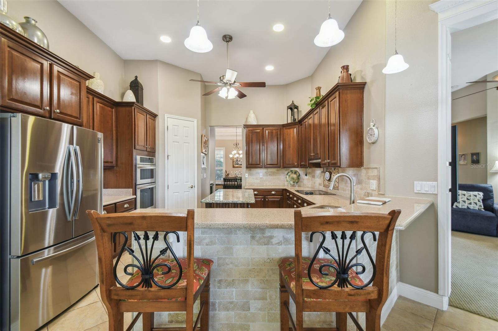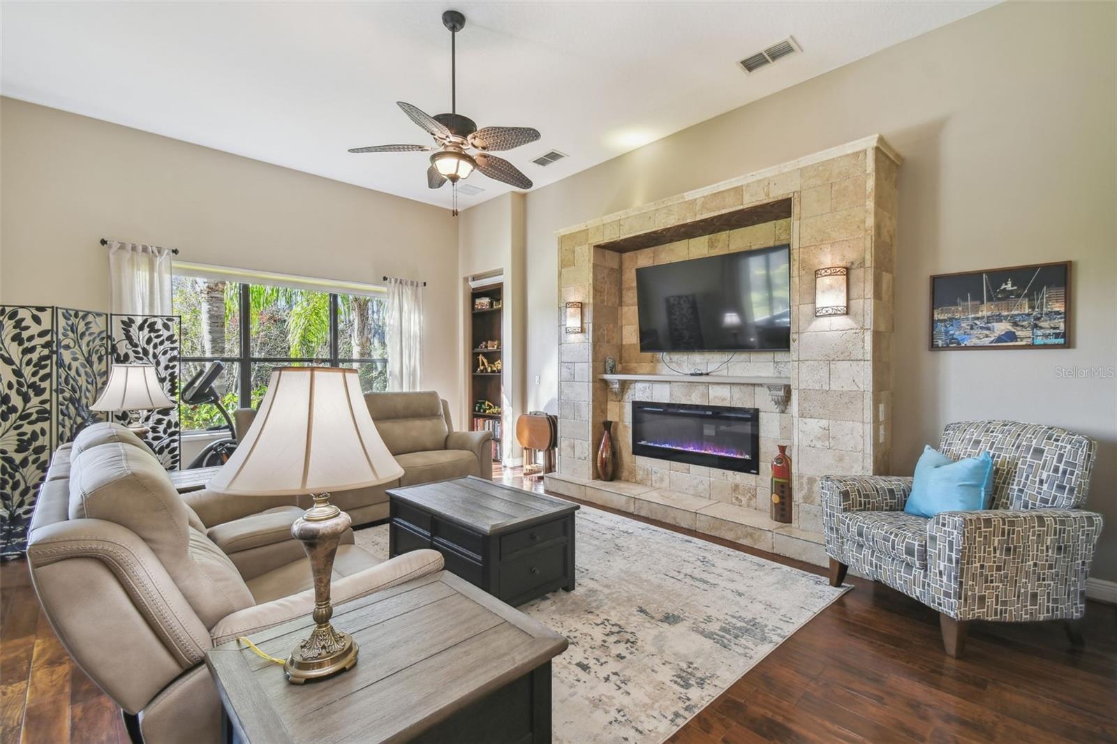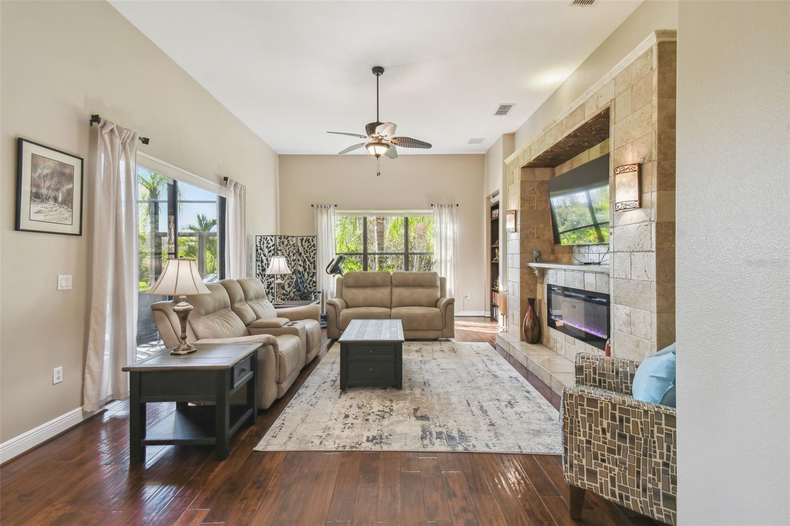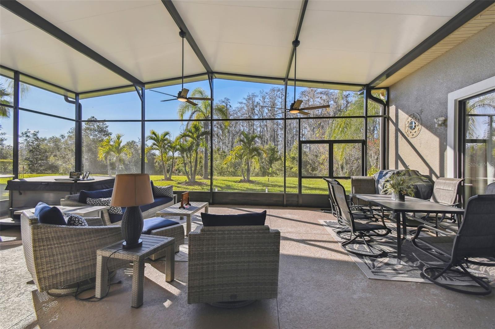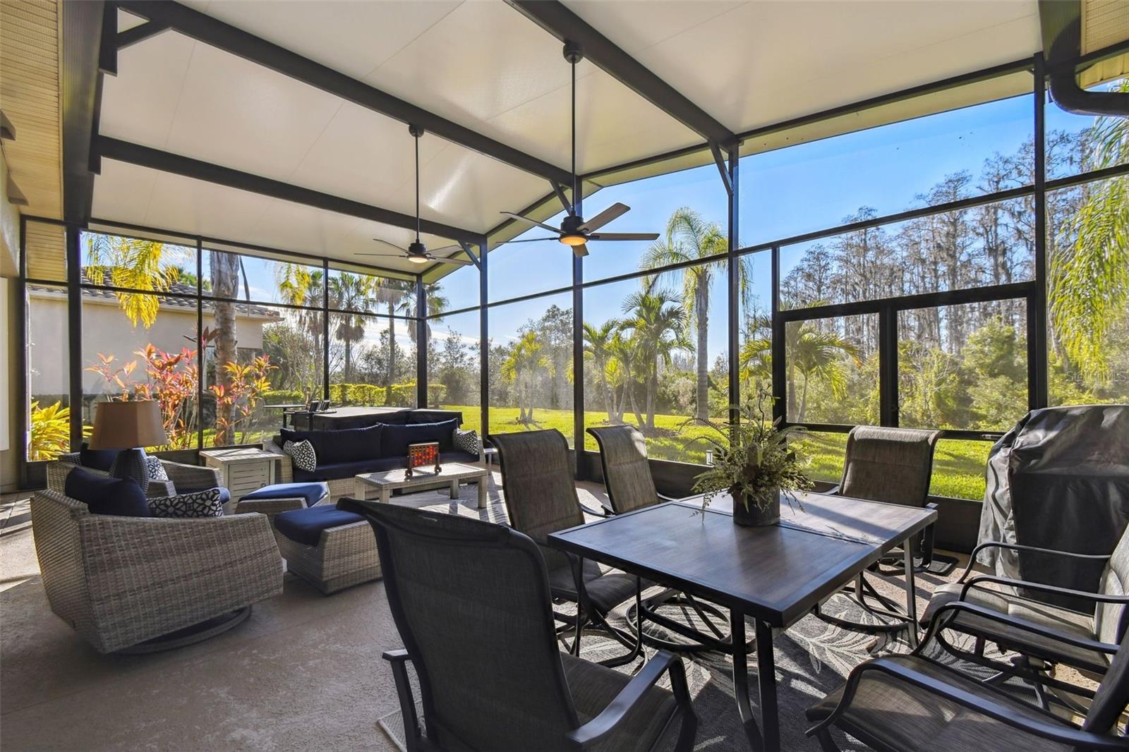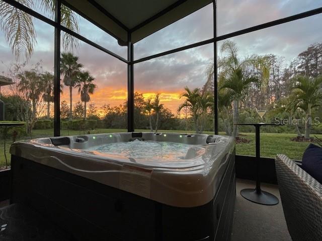 Price Reduction PLUS $10,000 Cash Credit at Closing! Discover this stunning 5-bedroom, 3-bathroom Biltmore Estate home offering 3,110 square feet of custom living space. Nestled on an oversized, deep conservation lot in a quiet cul-de-sac, this property is located near the sought-after Palms Resort Amenities Center, providing a perfect blend of privacy, luxury, and convenience. A gated front courtyard and screened entry lead to double leaded glass doors, welcoming you into this exceptional home. A chef’s dream, the gourmet kitchen features double ovens, a cooktop with pot filler, a tile backsplash, under-cabinet lighting, a breakfast bar, and a custom lighted butler’s pantry connecting to the dining room. The breakfast nook has great views of the conservation area. The living room and Florida room both feature sliders to the lanai. The Florida room is highlighted by a custom electric fireplace with stonework, creating a cozy and inviting atmosphere. Hidden behind a custom bookshelf door, the 5th bedroom doubles as a private office or den, offering unique functionality. The master bedroom includes a sitting area, tray ceiling with lighted crown molding, and two walk-in closets with custom shelving. The spa-inspired en-suite bathroom boasts a custom lighted soaking tub and a custom rain system shower. A fully equipped in-law suite features a custom built-in Murphy bed and an en-suite bathroom with a custom rain system shower, providing guests or family with comfort and privacy. Bedrooms 3 and 4 share a Jack and Jill bathroom with double sinks, perfect for family living. A new 600 sq. ft. covered and screened lanai (2023) offers breathtaking sunset views and includes an optional hot tub. The 2-car garage features custom storage racks and pull-down attic access for extra storage space.New upgrades include upgraded landscaping (2022), a new roof (2023), HVAC system (2021), alarm system (2022), and professional interior painting (2022). This meticulously maintained home offers timeless elegance, modern convenience, and breathtaking views. All this in one of the top 55+ communities in America. Solivita offers residents access to state of the art amenities and work out facilities, dance and aerobics studios, 14 heated swimming pools, 2 heated spas, tennis courts, pickleball courts, softball, shuffleboard, bocce ball, billiards room, art gallery, 3 restaurants and 2 championship 18-hole golf courses. Additionally, enjoy the convenience of having Poinciana Lakes Plaza, a major new shopping center, open directly across from the Solivita Main Gate. This vibrant plaza will feature a diverse selection of stores and services, including a Sprouts grocery store, TJ Maxx, Ross, Burlington, Rack Room Shoes, 5 Below, Ulta, Outback, First Watch, Petco, Five Guys, Popeyes, Urgent Care, a dentist, TD Bank, Wells Fargo Bank, Hair Cuttery, Walgreens, McDonalds and even more to come. Schedule your private tour today and see why this exquisite property is the perfect place to call home!