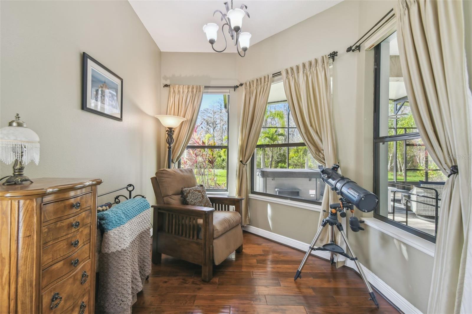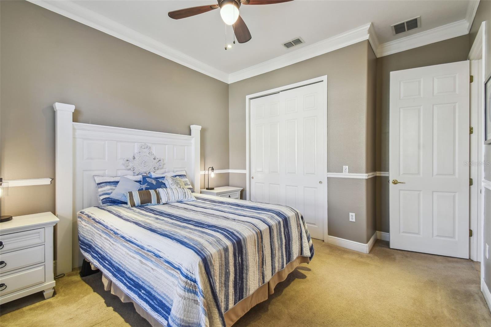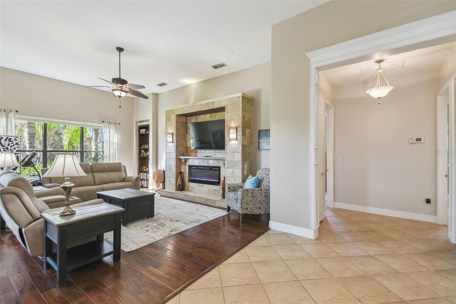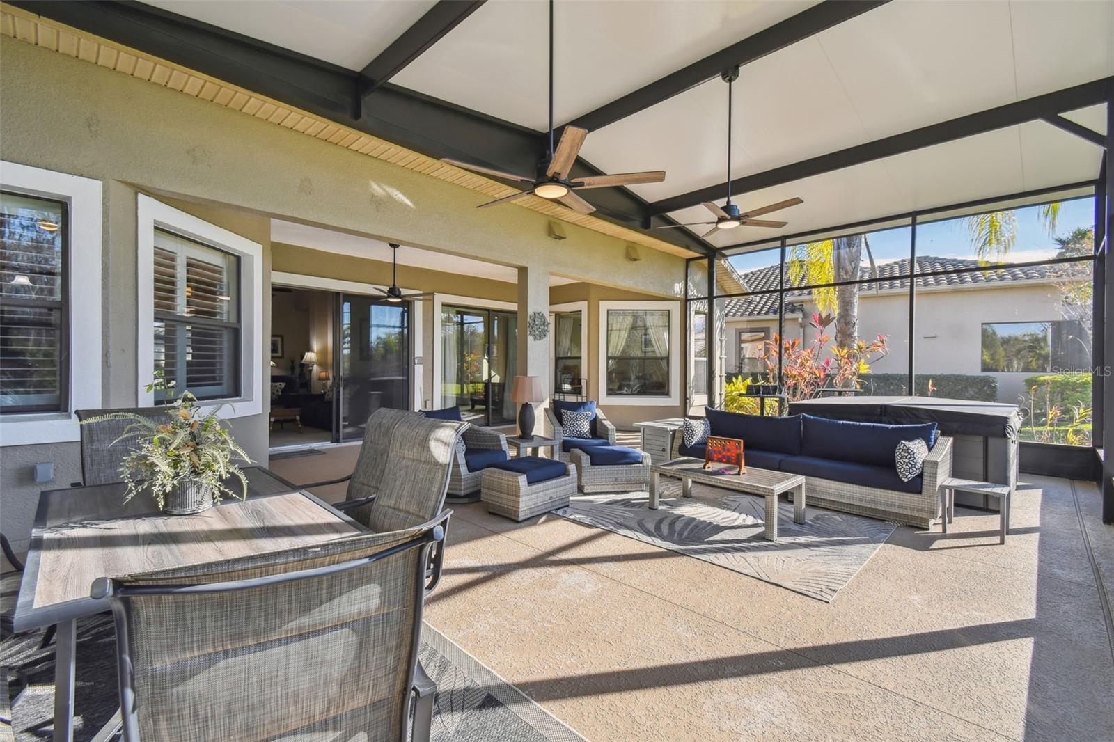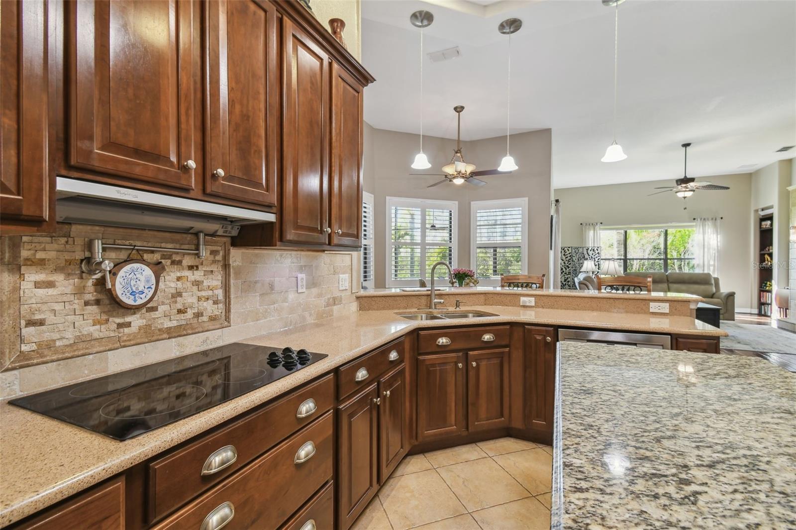 Price Reduction PLUS $10,000 Cash Credit at Closing! Discover this stunning 5-bedroom, 3-bathroom Biltmore Estate home offering 3,110 square feet of custom living space. Nestled on an oversized, deep conservation lot in a quiet cul-de-sac, this property is located near the sought-after Palms Resort Amenities Center, providing a perfect blend of privacy, luxury, and convenience. A gated front courtyard and screened entry lead to double leaded glass doors, welcoming you into this exceptional home. A chef’s dream, the gourmet kitchen features double ovens, a cooktop with pot filler, a tile backsplash, under-cabinet lighting, a breakfast bar, and a custom lighted butler’s pantry connecting to the dining room. The breakfast nook has great views of the conservation area. The living room and Florida room both feature sliders to the lanai. The Florida room is highlighted by a custom electric fireplace with stonework, creating a cozy and inviting atmosphere. Hidden behind a custom bookshelf door, the 5th bedroom doubles as a private office or den, offering unique functionality. The master bedroom includes a sitting area, tray ceiling with lighted crown molding, and two walk-in closets with custom shelving. The spa-inspired en-suite bathroom boasts a custom lighted soaking tub and a custom rain system shower. A fully equipped in-law suite features a custom built-in Murphy bed and an en-suite bathroom with a custom rain system shower, providing guests or family with comfort and privacy. Bedrooms 3 and 4 share a Jack and Jill bathroom with double sinks, perfect for family living. A new 600 sq. ft. covered and screened lanai (2023) offers breathtaking sunset views and includes an optional hot tub. The 2-car garage features custom storage racks and pull-down attic access for extra storage space.New upgrades include upgraded landscaping (2022), a new roof (2023), HVAC system (2021), alarm system (2022), and professional interior painting (2022). This meticulously maintained home offers timeless elegance, modern convenience, and breathtaking views. All this in one of the top 55+ communities in America. Solivita offers residents access to state of the art amenities and work out facilities, dance and aerobics studios, 14 heated swimming pools, 2 heated spas, tennis courts, pickleball courts, softball, shuffleboard, bocce ball, billiards room, art gallery, 3 restaurants and 2 championship 18-hole golf courses. Additionally, enjoy the convenience of having Poinciana Lakes Plaza, a major new shopping center, open directly across from the Solivita Main Gate. This vibrant plaza will feature a diverse selection of stores and services, including a Sprouts grocery store, TJ Maxx, Ross, Burlington, Rack Room Shoes, 5 Below, Ulta, Outback, First Watch, Petco, Five Guys, Popeyes, Urgent Care, a dentist, TD Bank, Wells Fargo Bank, Hair Cuttery, Walgreens, McDonalds and even more to come. Schedule your private tour today and see why this exquisite property is the perfect place to call home!